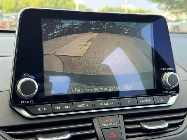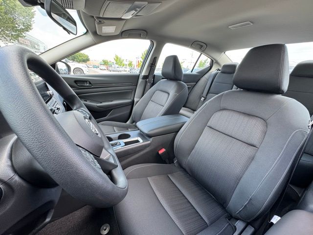 4-Wheel Disc Brakes, 6 Speakers, ABS brakes, Air Conditioning, AM/FM radio: SiriusXM, Auto High-beam Headlights, Blind Spot Warning, Body-Colored Splash Guards, Brake assist, Bumpers: body-color, Cloth Seat Trim, Delay-off headlights, Driver door bin, Driver vanity mirror, Dual front impact airbags, Dual front side impact airbags, Electronic Stability Control, Floor Mats/Trunk Mat/Hideaway Net, Four wheel independent suspension, Front anti-roll bar, Front Bucket Seats, Front Center Armrest, Front reading lights, Fully automatic headlights, Illuminated entry, Knee airbag, Low tire pressure warning, NissanConnect featuring Apple CarPlay and Android Auto, Occupant sensing airbag, Outside temperature display, Overhead airbag, Overhead console, Panic alarm, Passenger door bin, Passenger vanity mirror, Power door mirrors, Power steering, Power windows, Radio data system, Radio: AM/FM Audio System, Rear anti-roll bar, Rear Parking Sensors, Rear reading lights, Rear seat center armrest, Rear side impact airbag, Rear window defroster, Remote keyless entry, Security system, Speed control, Speed-sensing steering, Speed-Sensitive Wipers, Split folding rear seat, Steering wheel mounted audio controls, Tachometer, Telescoping steering wheel, Tilt steering wheel, Traction control, Trip computer, Variably intermittent wipers, and Wheels: 16" x 7" Steel w/Full Wheel Covers. Price includes dealer added accessories.