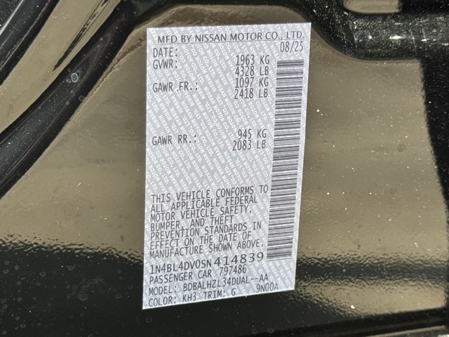 SV Special Edition Package (Body-Color Outside Mirrors, Carbon Fiber Look Center Console Finisher, Dual Zone Automatic HVAC, NissanConnect, Rear Spoiler (Accessory Part), Remote Engine Start w/Intelligent Climate Control, Single Panel Moonroof, Visible Rear Exhaust w/Finisher, and Wheels: 17" Gloss Black Alloy), 17" Machined Alloy Wheels, 4-Wheel Disc Brakes, 6 Speakers, ABS brakes, Air Conditioning, Alloy wheels, AM/FM radio: SiriusXM, Auto High-beam Headlights, Blind Spot Warning, Body-Colored Splash Guards, Brake assist, Bumpers: body-color, Clear Bumper Protector, Cloth Seat Trim, Delay-off headlights, Driver door bin, Driver vanity mirror, Dual front impact airbags, Dual front side impact airbags, Electronic Stability Control, Floor Mats/Trunk Mat/Hideaway Net, Four wheel independent suspension, Front anti-roll bar, Front Bucket Seats, Front Center Armrest, Front reading lights, Fully automatic headlights, Illuminated entry, Knee airbag, Low tire pressure warning, NissanConnect featuring Apple CarPlay and Android Auto, Occupant sensing airbag, Outside temperature display, Overhead airbag, Overhead console, Panic alarm, Passenger door bin, Passenger vanity mirror, Power door mirrors, Power driver seat, Power steering, Power windows, Radio data system, Radio: AM/FM Audio System, Rear anti-roll bar, Rear Parking Sensors, Rear reading lights, Rear seat center armrest, Rear side impact airbag, Rear window defroster, Remote keyless entry, Security system, Speed control, Speed-sensing steering, Speed-Sensitive Wipers, Split folding rear seat, Steering wheel mounted audio controls, Tachometer, Telescoping steering wheel, Tilt steering wheel, Traction control, Trip computer, Trunk Organizer Tray, USB Charging Cable Set - Nissan, and Variably intermittent wipers. Price includes dealer added accessories.