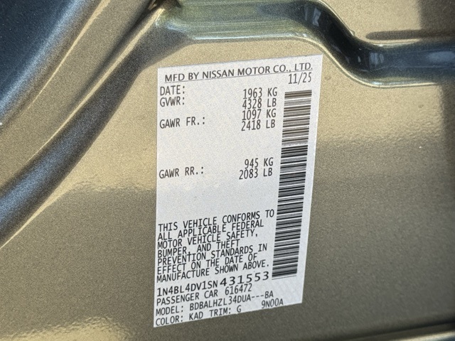 Gun Metallic 2025 Nissan Altima 2.5 SV FWD CVT with Xtronic 2.5L 4-Cylinder DOHC 16V 27/39 City/Highway MPG This Vehicle qualifies for Complimentary 10 YEARS or 250,000 MILE LIMITED POWER TRAIN WARRANTY. HUGE VALUE! Visit dealer for complete details.