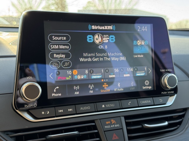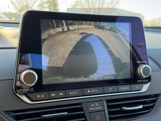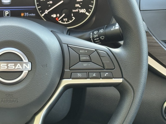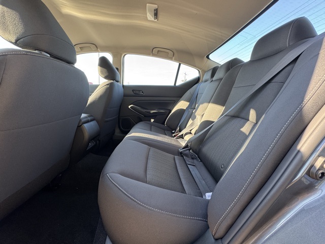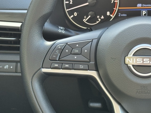 17" Machined Alloy Wheels, 4-Wheel Disc Brakes, 6 Speakers, ABS brakes, Air Conditioning, Alloy wheels, AM/FM radio: SiriusXM, Auto High-beam Headlights, Blind Spot Warning, Body-Colored Splash Guards, Brake assist, Bumpers: body-color, Clear Bumper Protector, Cloth Seat Trim, Delay-off headlights, Driver door bin, Driver vanity mirror, Dual front impact airbags, Dual front side impact airbags, Electronic Stability Control, Floor Mats/Trunk Mat/Hideaway Net, Four wheel independent suspension, Front anti-roll bar, Front Bucket Seats, Front Center Armrest, Front reading lights, Fully automatic headlights, Illuminated entry, Illuminated Kick Plates, Knee airbag, Low tire pressure warning, NissanConnect featuring Apple CarPlay and Android Auto, Occupant sensing airbag, Outside temperature display, Overhead airbag, Overhead console, Panic alarm, Passenger door bin, Passenger vanity mirror, Power door mirrors, Power driver seat, Power steering, Power windows, Radio data system, Radio: AM/FM Audio System, Rear anti-roll bar, Rear Parking Sensors, Rear reading lights, Rear seat center armrest, Rear side impact airbag, Rear window defroster, Remote keyless entry, Security system, Speed control, Speed-sensing steering, Speed-Sensitive Wipers, Split folding rear seat, Steering wheel mounted audio controls, Tachometer, Telescoping steering wheel, Tilt steering wheel, Traction control, Trip computer, Trunk Organizer Tray, and Variably intermittent wipers.
