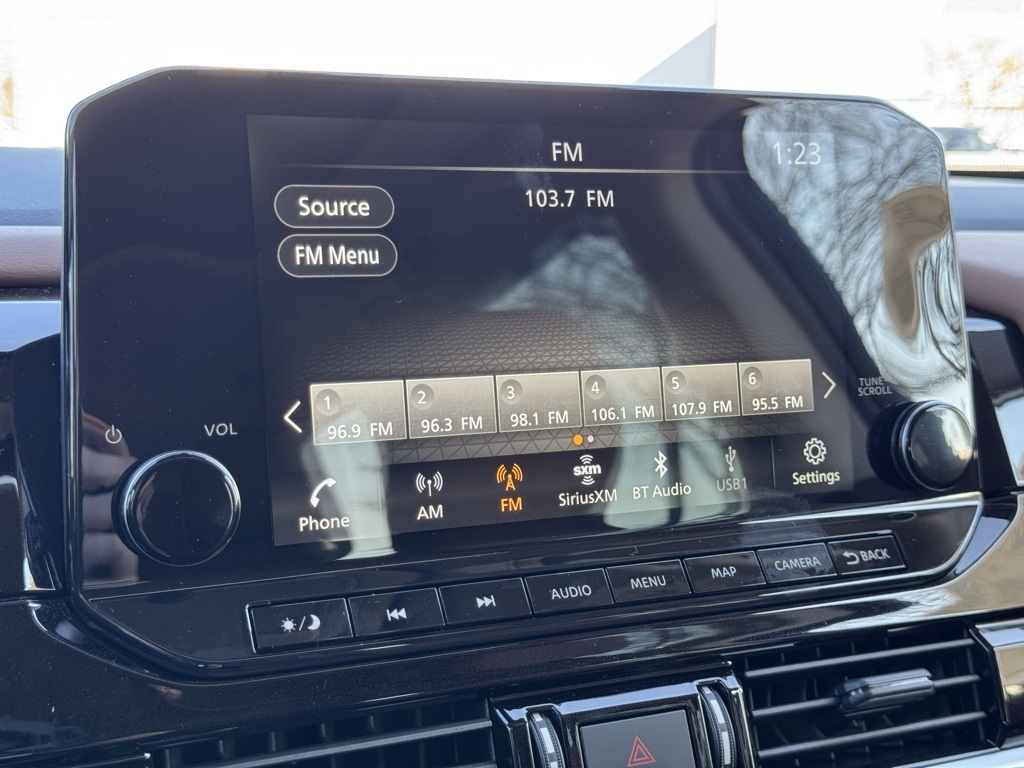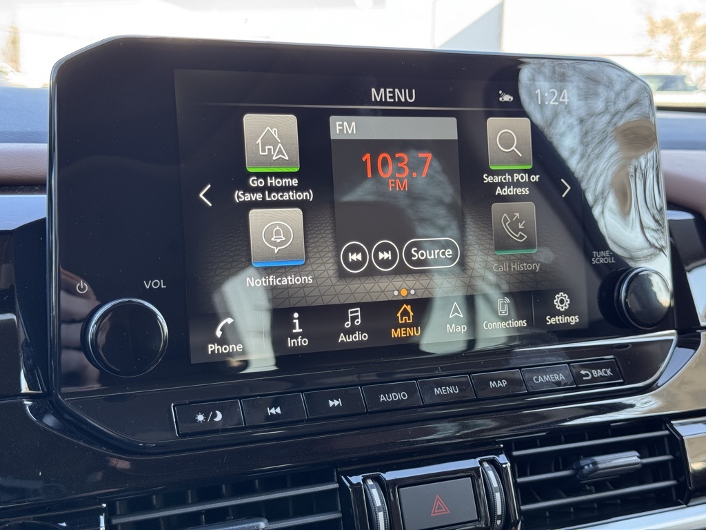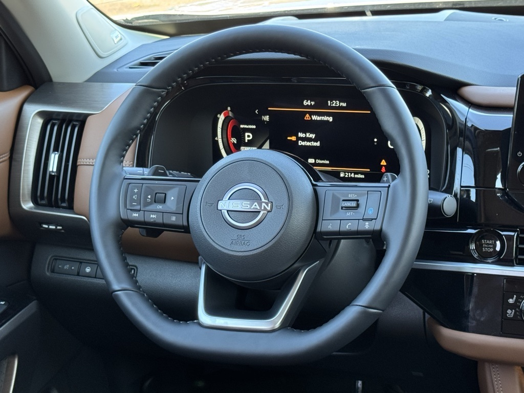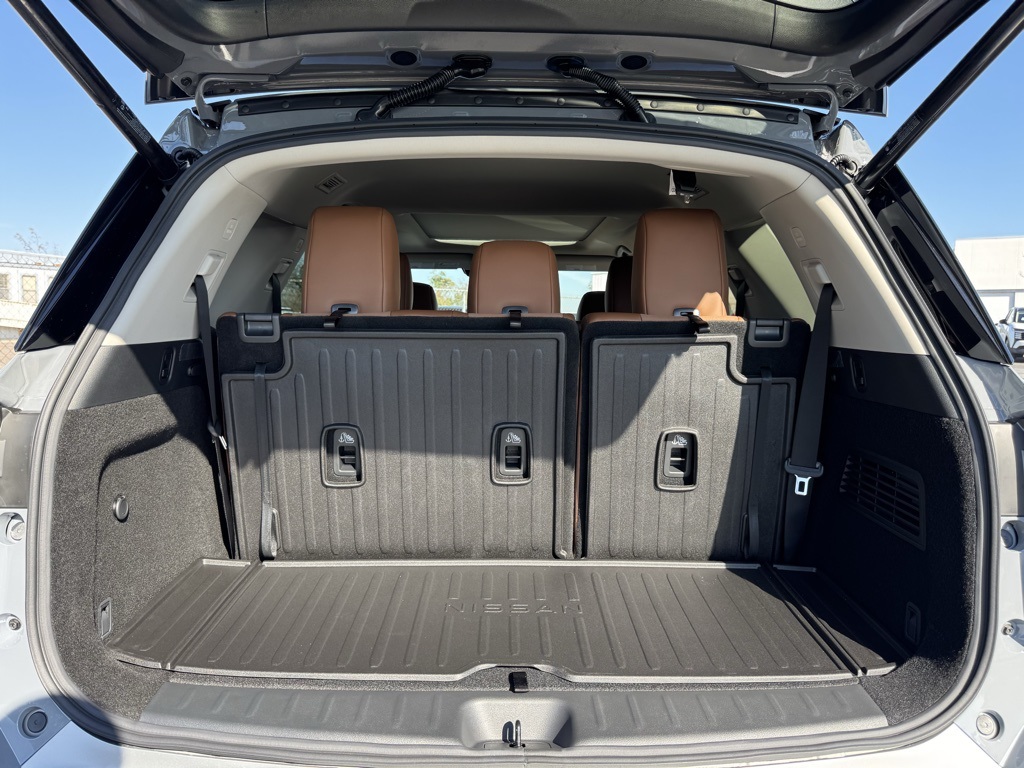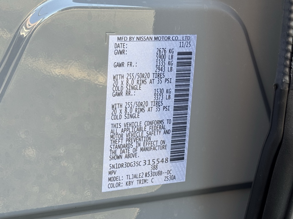 Black Appearance Package (Black Grille and Black Liftgate Emblems), Cargo Package (Cargo Area Protector, Cargo Net, and First Aid), 13 Speakers, 3rd row seats: bench, 4-Wheel Disc Brakes, ABS brakes, Air Conditioning, Alloy wheels, AM/FM radio: SiriusXM, Auto High-beam Headlights, Auto tilt-away steering wheel, Auto-dimming Rear-View mirror, Automatic temperature control, Bench Seat Carpeted Floor Mats (set of 4), Bodyside moldings, Bose Premium Audio System, Brake assist, Bumpers: body-color, Climate Controlled Front Bucket Seats, Cross Bars, Delay-off headlights, Driver door bin, Driver vanity mirror, Dual front impact airbags, Dual front side impact airbags, Electronic Stability Control, Emergency communication system, Exterior Parking Camera Rear, Four wheel independent suspension, Front anti-roll bar, Front Bucket Seats, Front Center Armrest, Front dual zone A/C, Front reading lights, Fully automatic headlights, Garage door transmitter: HomeLink, Heads-Up Display, Heated door mirrors, Heated front seats, Heated rear seats, Heated steering wheel, Illuminated entry, Knee airbag, Leather steering wheel, LED Fog Lamps, Low tire pressure warning, Memory seat, Navigation system: NissanConnect with Navigation and Services, NissanConnect featuring Apple CarPlay and Android Auto, NissanConnect with Navigation and Services, Occupant sensing airbag, Outside temperature display, Overhead airbag, Overhead console, Panic alarm, Passenger door bin, Passenger vanity mirror, Power door mirrors, Power driver seat, Power Liftgate, Power moonroof, Power passenger seat, Power steering, Power windows, Premium Paint, Radio data system, Radio: AM/FM Audio System, Rain sensing wipers, Rear air conditioning, Rear anti-roll bar, Rear reading lights, Rear seat center armrest, Rear side impact airbag, Rear window defroster, Rear window wiper, Reclining 3rd row seat, Remote keyless entry, Security system, Semi-Aniline Leather-Appointed Seating Surfaces, Speed control, Speed-sensing steering, Speed-Sensitive Wipers, Split folding rear seat, Spoiler, Steering wheel memory, Steering wheel mounted audio controls, Tachometer, Telescoping steering wheel, Tilt steering wheel, Traction control, Trip computer, Turn signal indicator mirrors, Variably intermittent wipers, Ventilated front seats, and Wheels: 20" x 8J Machined Alloy. Price includes all rebates: $5000 - Nissan Customer Cash. Exp. 01/05/2026