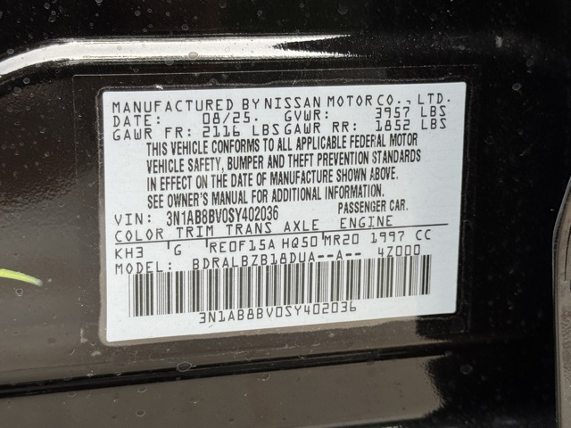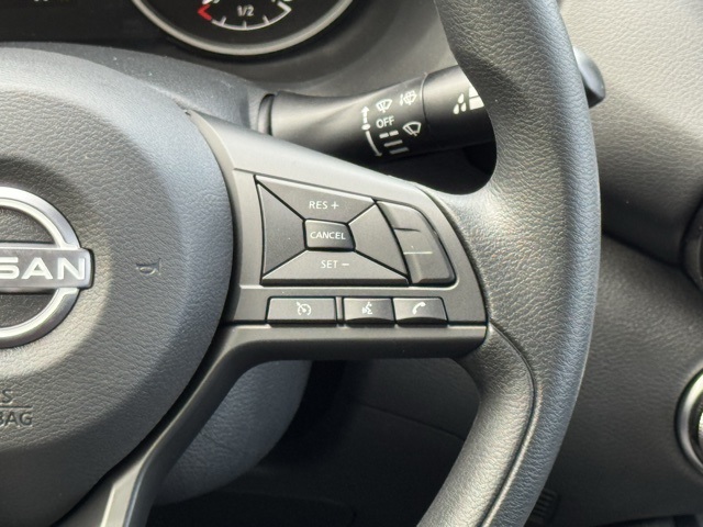 4 Speakers, ABS brakes, Air Conditioning, AM/FM radio, Auto High-beam Headlights, Blind Spot Warning, Body Colored Splash Guards (4-Piece), Brake assist, Bumpers: body-color, Carpeted Floor Mats with Trunk Mat, Clear Rear Bumper Protector, Cloth Seat Trim, Delay-off headlights, Driver door bin, Driver vanity mirror, Dual front impact airbags, Dual front side impact airbags, Electronic Stability Control, Four wheel independent suspension, Front anti-roll bar, Front Bucket Seats, Front Center Armrest, Front reading lights, Fully automatic headlights, Illuminated entry, Knee airbag, Low tire pressure warning, NissanConnect featuring Apple CarPlay and Android Auto, Occupant sensing airbag, Outside temperature display, Overhead airbag, Overhead console, Panic alarm, Passenger door bin, Passenger vanity mirror, Power door mirrors, Power steering, Power windows, Radio data system, Radio: AM/FM with RDS/MP3/Aux-in, Rear anti-roll bar, Rear Parking Sensors, Rear side impact airbag, Rear window defroster, Remote keyless entry, Speed control, Speed-sensing steering, Split folding rear seat, Steering wheel mounted audio controls, Tachometer, Telescoping steering wheel, Tilt steering wheel, Traction control, Trip computer, Variably intermittent wipers, and Wheels: 16" Steel with Full Covers. Price includes dealer added accessories.