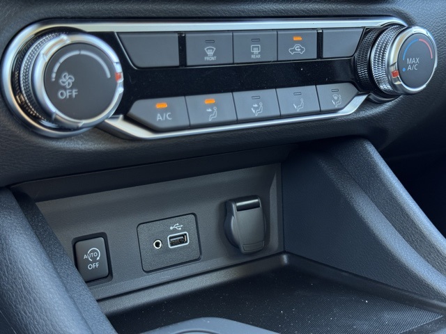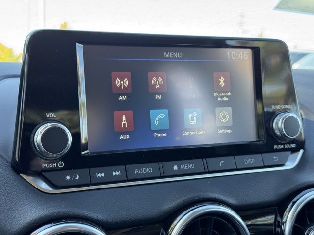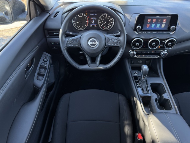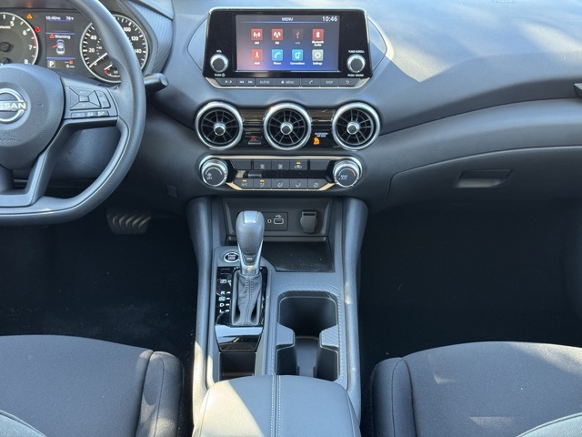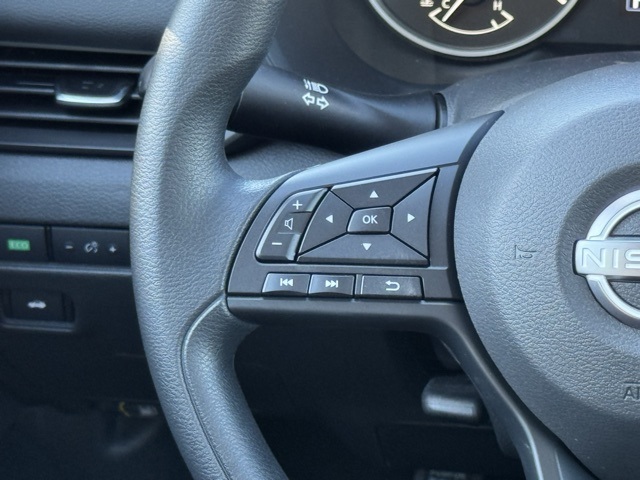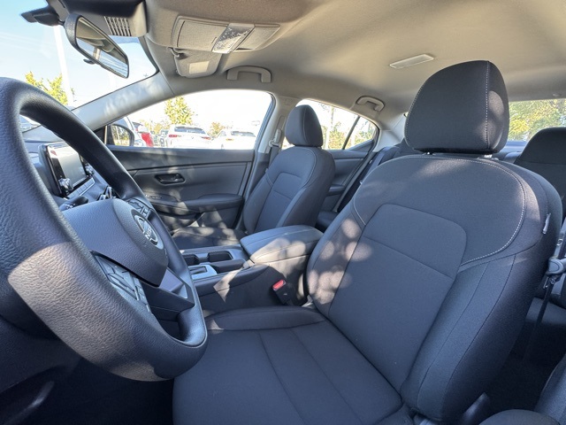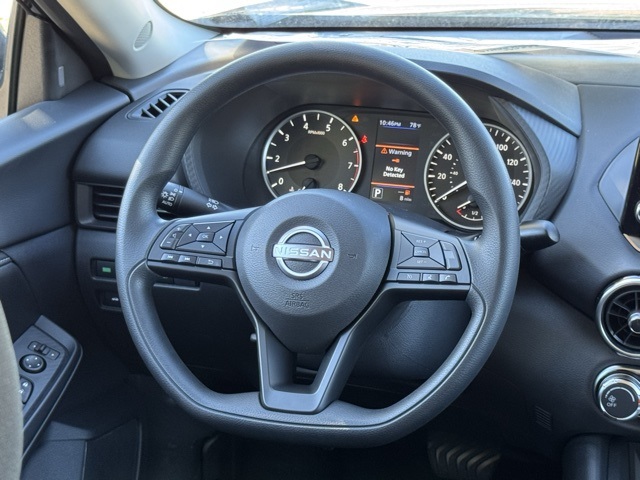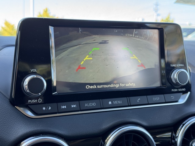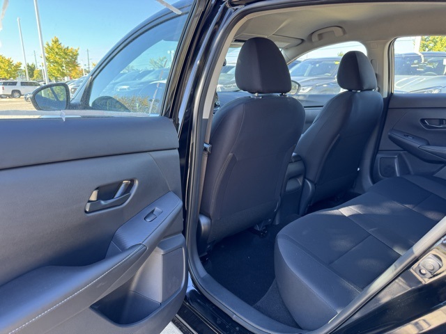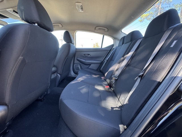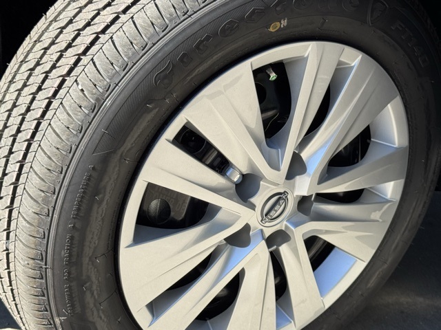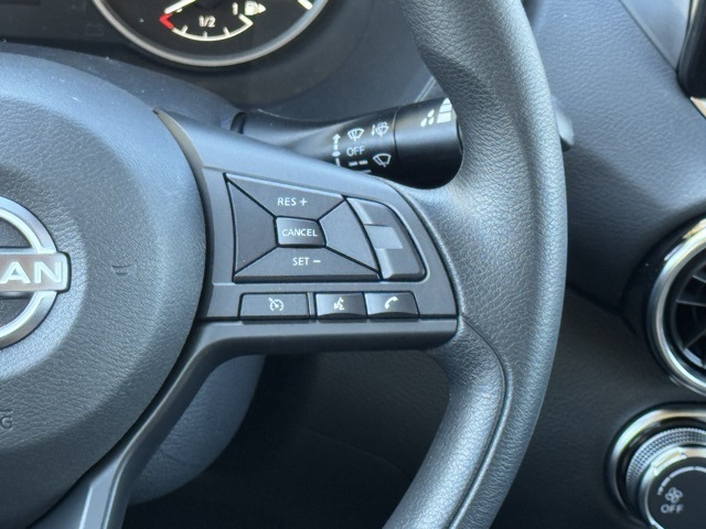 16" Steel Wheels w/Full Wheel Covers, 4 Speakers, ABS brakes, Air Conditioning, AM/FM radio, Auto High-beam Headlights, Blind Spot Warning, Body Colored Splash Guards (4-Piece), Brake assist, Bumpers: body-color, Carpeted Floor Mats w/Trunk Mat, Cloth Seat Trim, Delay-off headlights, Driver door bin, Driver vanity mirror, Dual front impact airbags, Dual front side impact airbags, Electronic Stability Control, Four wheel independent suspension, Front anti-roll bar, Front Bucket Seats, Front Center Armrest, Front reading lights, Fully automatic headlights, Illuminated entry, Knee airbag, Low tire pressure warning, NissanConnect featuring Apple CarPlay and Android Auto, Occupant sensing airbag, Outside temperature display, Overhead airbag, Overhead console, Panic alarm, Passenger door bin, Passenger vanity mirror, Power door mirrors, Power steering, Power windows, Radio data system, Radio: AM/FM w/RDS/MP3/Aux-In, Rear anti-roll bar, Rear Parking Sensors, Rear side impact airbag, Rear window defroster, Remote keyless entry, Speed control, Speed-sensing steering, Split folding rear seat, Steering wheel mounted audio controls, Tachometer, Telescoping steering wheel, Tilt steering wheel, Traction control, Trip computer, and Variably intermittent wipers.