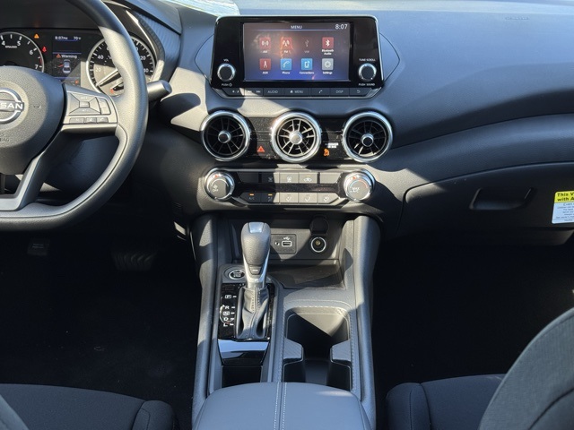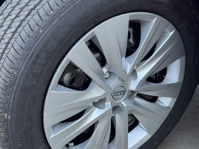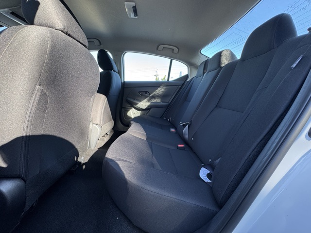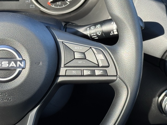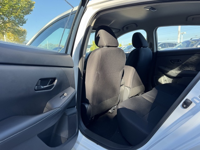 4 Speakers, ABS brakes, Air Conditioning, AM/FM radio, Auto High-beam Headlights, Blind Spot Warning, Body Colored Splash Guards (4-Piece), Brake assist, Bumpers: body-color, Carpeted Floor Mats with Trunk Mat, Cloth Seat Trim, Delay-off headlights, Driver door bin, Driver vanity mirror, Dual front impact airbags, Dual front side impact airbags, Electronic Stability Control, Four wheel independent suspension, Front anti-roll bar, Front Bucket Seats, Front Center Armrest, Front reading lights, Fully automatic headlights, Illuminated entry, Knee airbag, Low tire pressure warning, NissanConnect featuring Apple CarPlay and Android Auto, Occupant sensing airbag, Outside temperature display, Overhead airbag, Overhead console, Panic alarm, Passenger door bin, Passenger vanity mirror, Power door mirrors, Power steering, Power windows, Radio data system, Radio: AM/FM with RDS/MP3/Aux-in, Rear anti-roll bar, Rear Parking Sensors, Rear side impact airbag, Rear window defroster, Remote keyless entry, Speed control, Speed-sensing steering, Split folding rear seat, Steering wheel mounted audio controls, Tachometer, Telescoping steering wheel, Tilt steering wheel, Traction control, Trip computer, Variably intermittent wipers, and Wheels: 16" Steel with Full Covers.