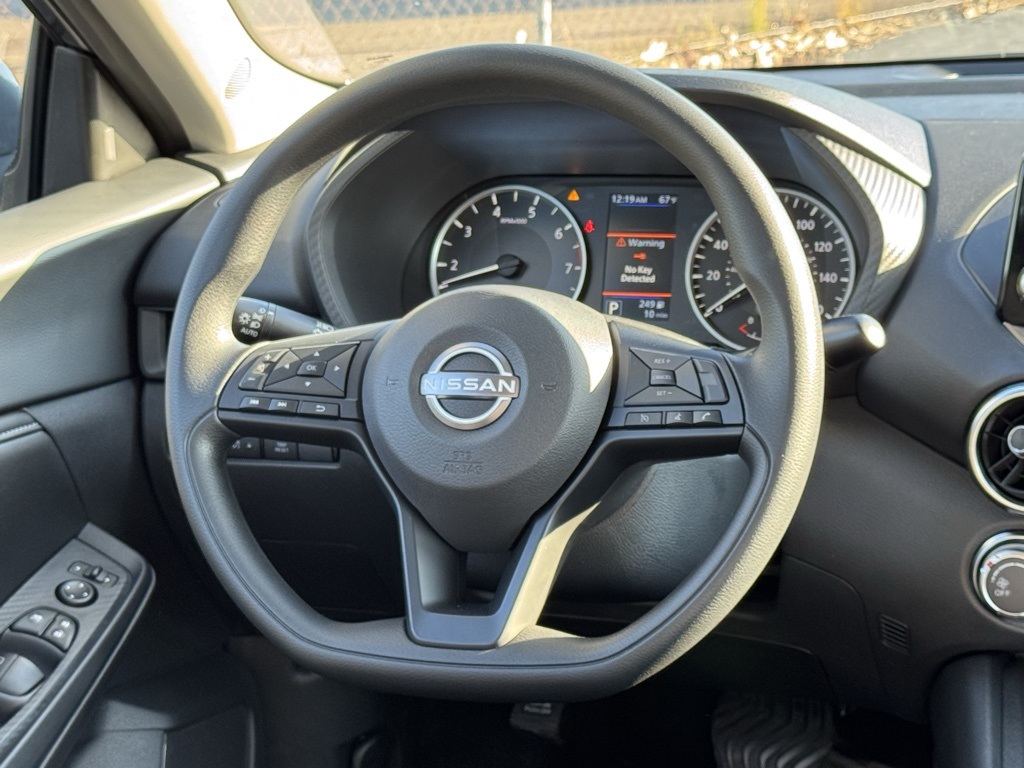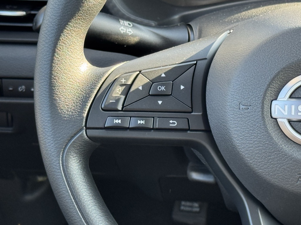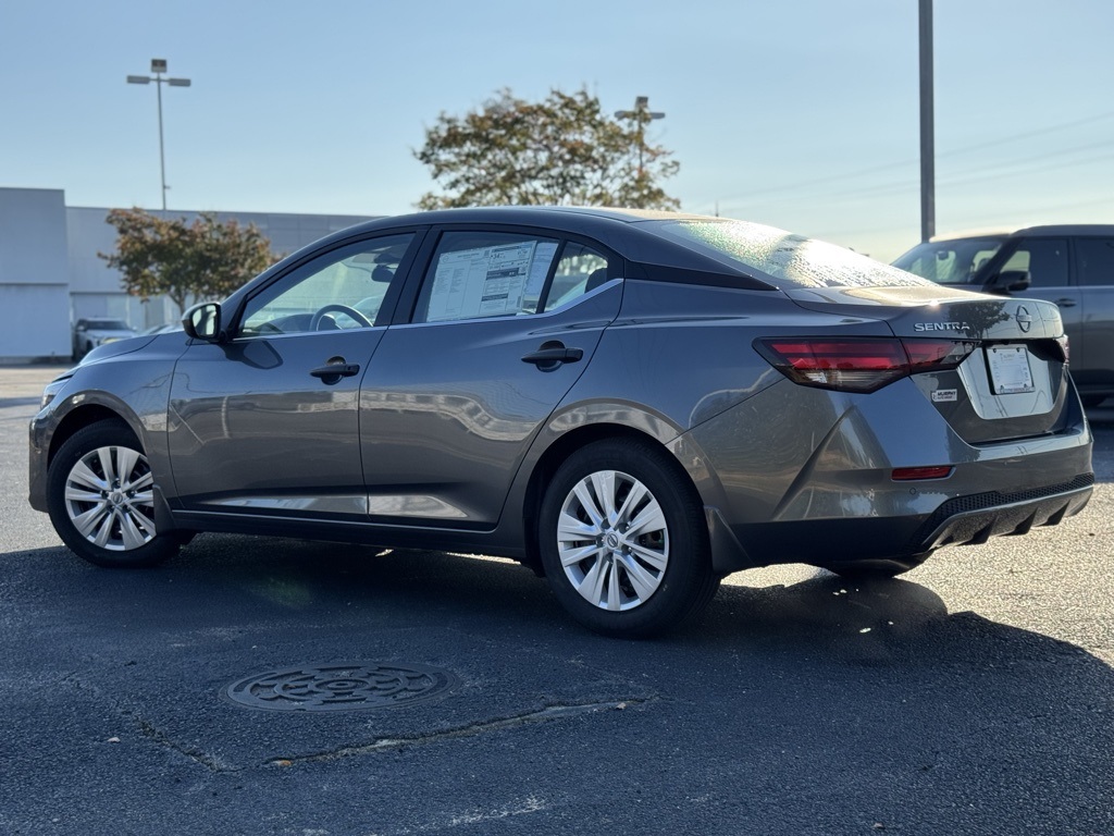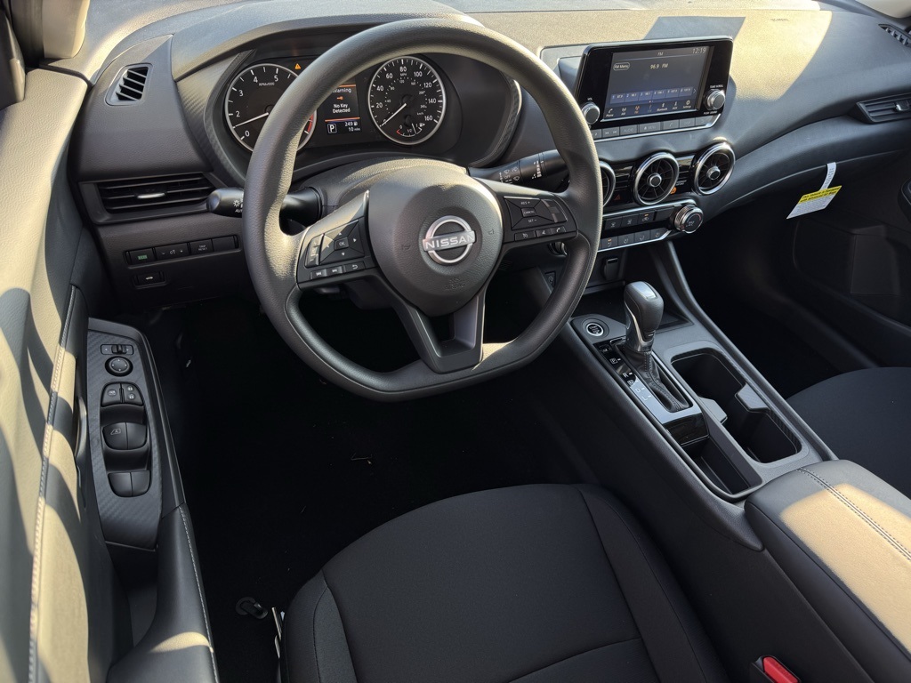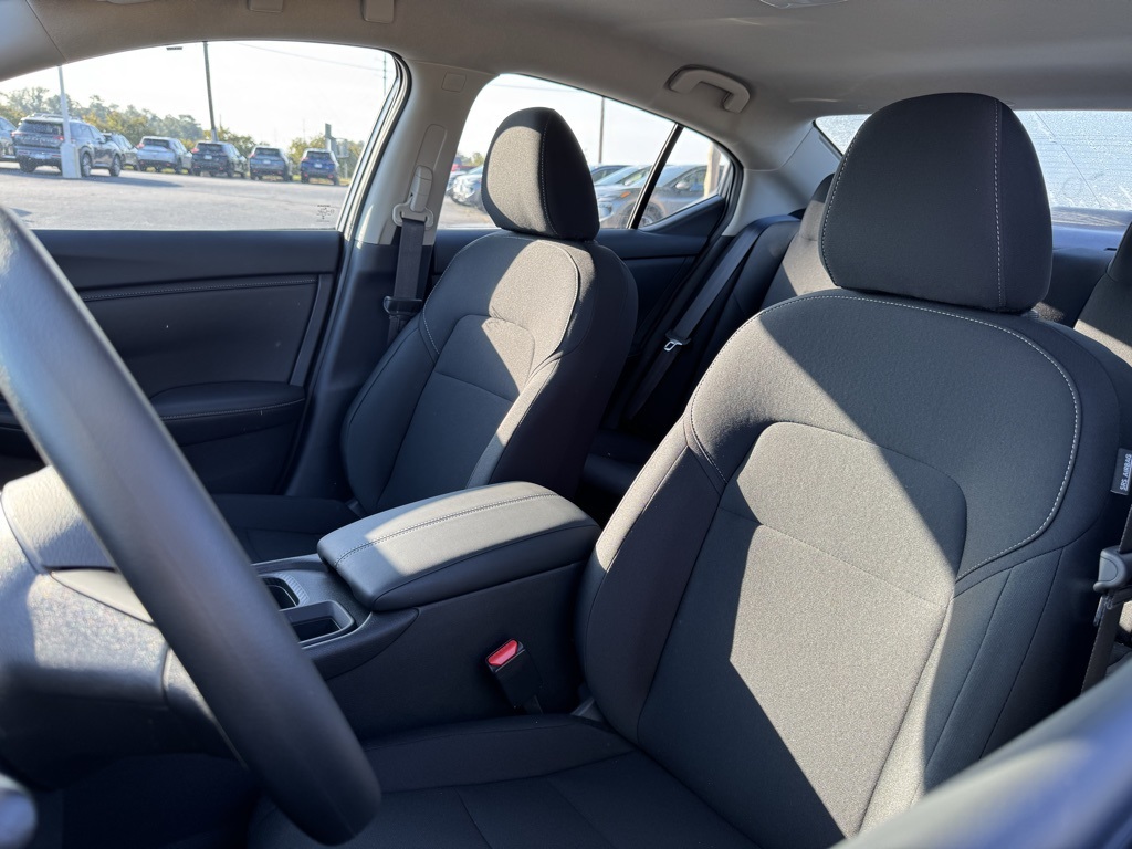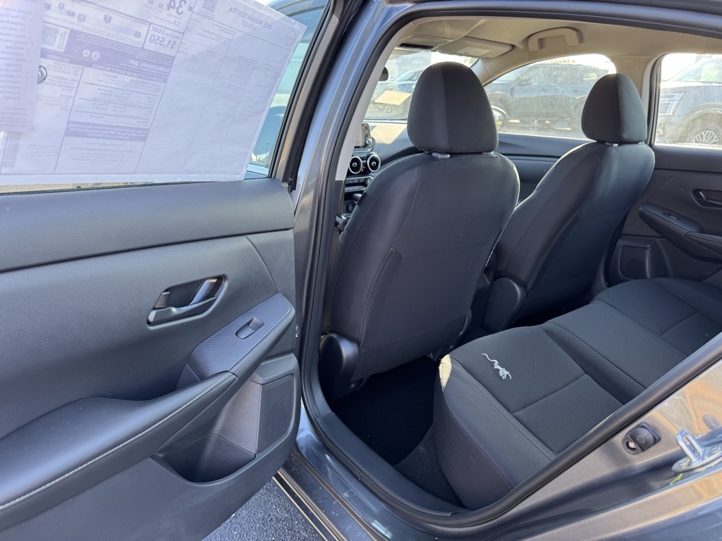 CVT with Xtronic, Charcoal Cloth, 16" Steel Wheels w/Full Wheel Covers, 4 Speakers, ABS brakes, Air Conditioning, AM/FM radio, Auto High-beam Headlights, Blind Spot Warning, Body Colored Splash Guards (4-Piece), Brake assist, Bumpers: body-color, Carpeted Floor Mats w/Trunk Mat, Cloth Seat Trim, Delay-off headlights, Driver door bin, Driver vanity mirror, Dual front impact airbags, Dual front side impact airbags, Electronic Stability Control, Four wheel independent suspension, Front anti-roll bar, Front Bucket Seats, Front Center Armrest, Front reading lights, Fully automatic headlights, Illuminated entry, Knee airbag, Low tire pressure warning, NissanConnect featuring Apple CarPlay and Android Auto, Occupant sensing airbag, Outside temperature display, Overhead airbag, Overhead console, Panic alarm, Passenger door bin, Passenger vanity mirror, Power door mirrors, Power steering, Power windows, Radio data system, Radio: AM/FM w/RDS/MP3/Aux-In, Rear anti-roll bar, Rear Parking Sensors, Rear side impact airbag, Rear window defroster, Remote keyless entry, Speed control, Speed-sensing steering, Split folding rear seat, Steering wheel mounted audio controls, Tachometer, Telescoping steering wheel, Tilt steering wheel, Traction control, Trip computer, and Variably intermittent wipers. Price includes all rebates: $500 - Nissan MY25 Sentra Bonus Cash. Exp. 12/01/2025