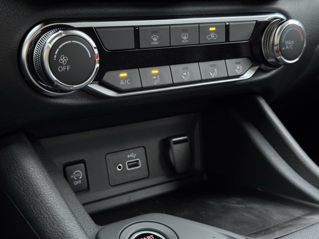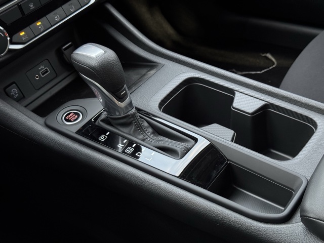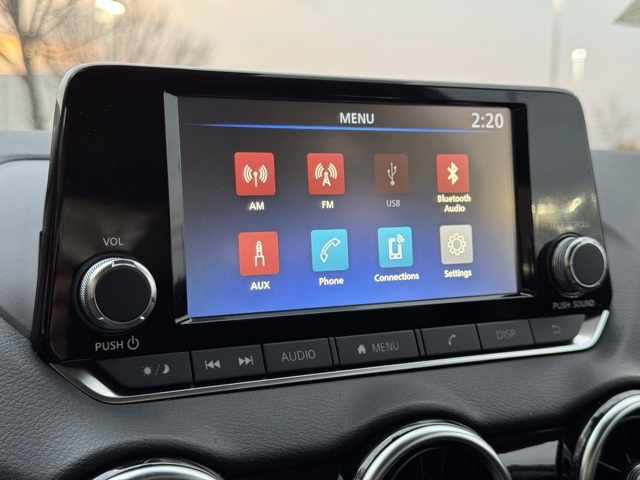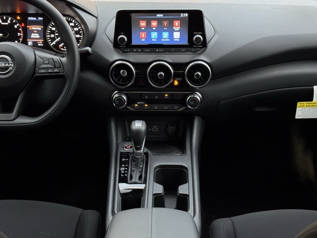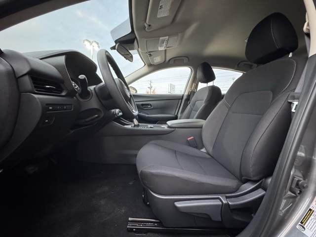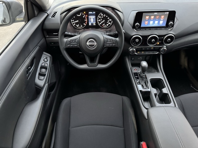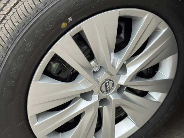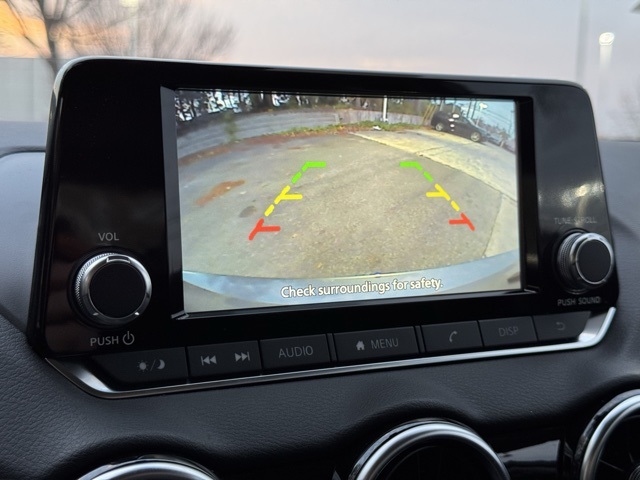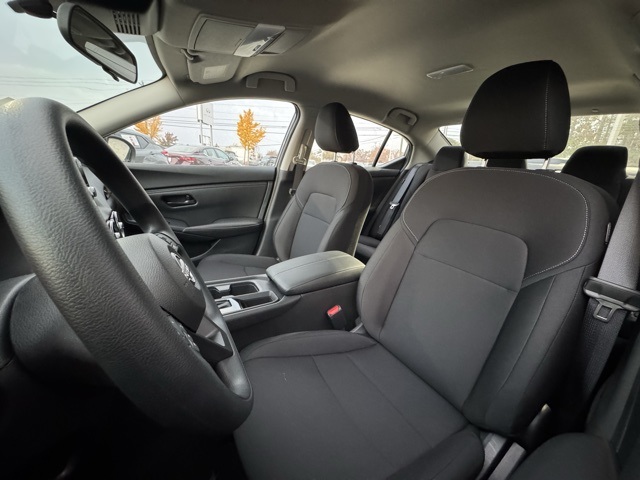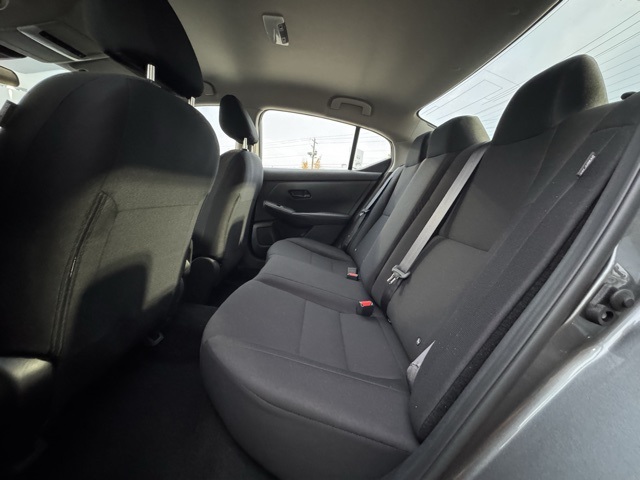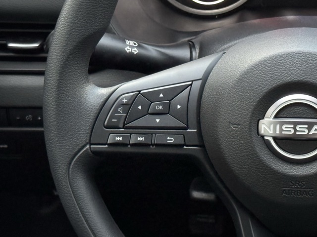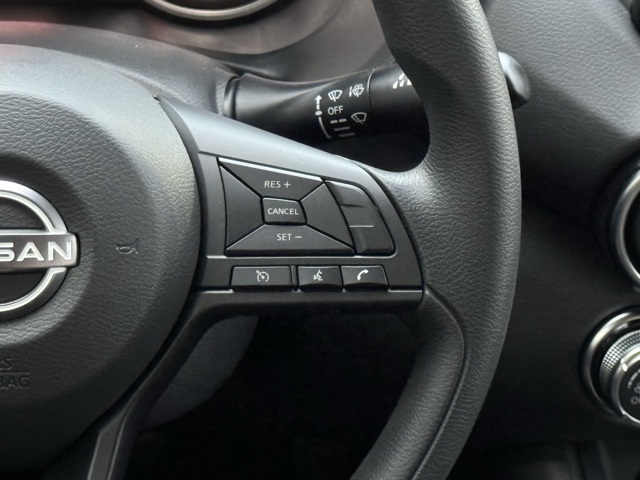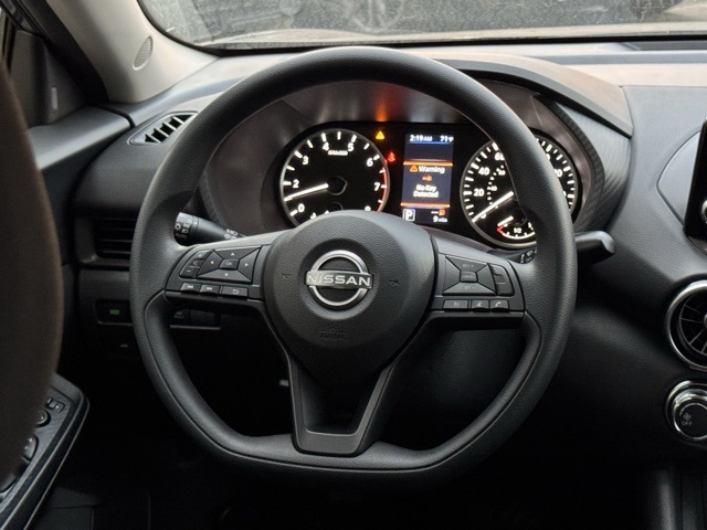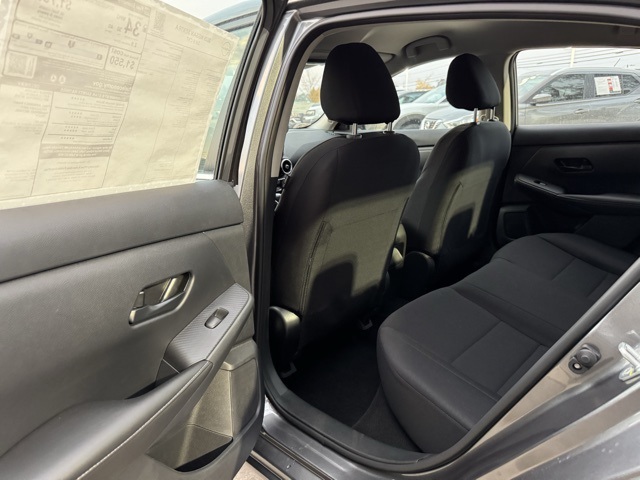4 Speakers, ABS brakes, Air Conditioning, AM/FM radio, Auto High-beam Headlights, Blind Spot Warning, Body Colored Splash Guards (4-Piece), Brake assist, Bumpers: body-color, Carpeted Floor Mats with Trunk Mat, Cloth Seat Trim, Delay-off headlights, Driver door bin, Driver vanity mirror, Dual front impact airbags, Dual front side impact airbags, Electronic Stability Control, Four wheel independent suspension, Front anti-roll bar, Front Bucket Seats, Front Center Armrest, Front reading lights, Fully automatic headlights, Illuminated entry, Knee airbag, Low tire pressure warning, NissanConnect featuring Apple CarPlay and Android Auto, Occupant sensing airbag, Outside temperature display, Overhead airbag, Overhead console, Panic alarm, Passenger door bin, Passenger vanity mirror, Power door mirrors, Power steering, Power windows, Radio data system, Radio: AM/FM with RDS/MP3/Aux-in, Rear anti-roll bar, Rear Parking Sensors, Rear side impact airbag, Rear window defroster, Remote keyless entry, Speed control, Speed-sensing steering, Split folding rear seat, Steering wheel mounted audio controls, Tachometer, Telescoping steering wheel, Tilt steering wheel, Traction control, Trip computer, Variably intermittent wipers, and Wheels: 16" Steel with Full Covers.