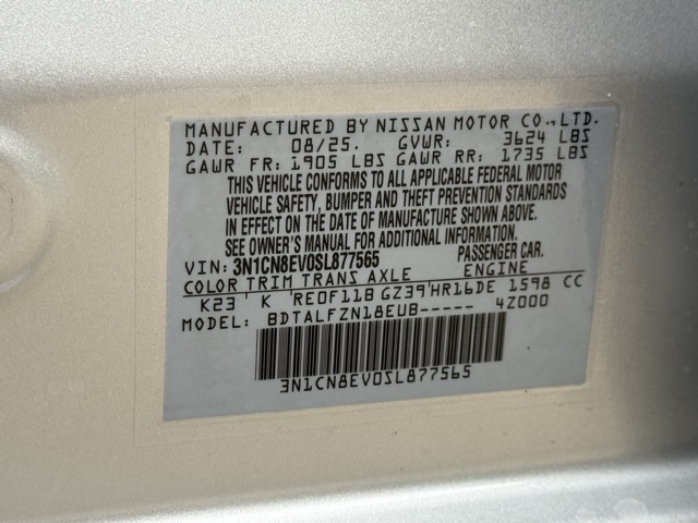 VIN 3N1CN8EV0SL877565