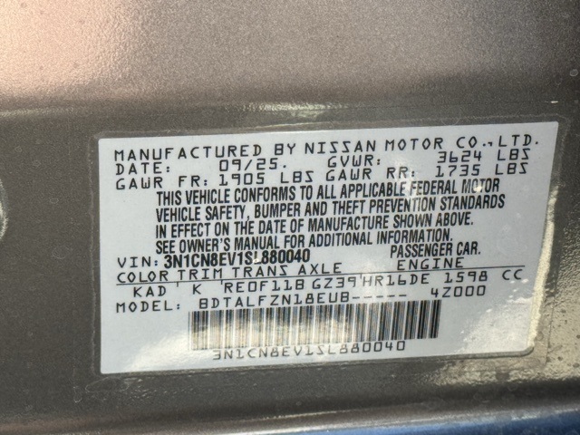 Gun Metallic 2025 Nissan Versa 1.6 SV FWD CVT 1.6L I4 DOHC 16V 32/40 City/Highway MPG This Vehicle qualifies for Complimentary 10 YEARS or 250,000 MILE LIMITED POWER TRAIN WARRANTY. HUGE VALUE! ALSO Factory recommended maintenance is included on all new vehicle purchases at Miracle Nissan Of Augusta. We’ll cover these costs for two (2) years or 20,000 miles – whichever comes first. Visit dealer for complete details.