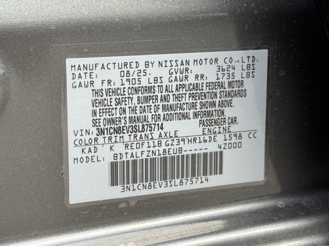 Gun Metallic 2025 Nissan Versa 1.6 SV FWD CVT 1.6L I4 DOHC 16V 32/40 City/Highway MPG This Vehicle qualifies for Complimentary 10 YEARS or 250,000 MILE LIMITED POWER TRAIN WARRANTY. HUGE VALUE! Visit dealer for complete details.
