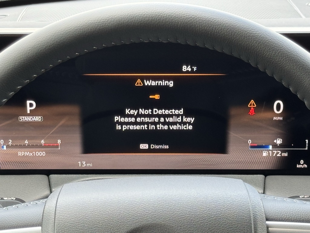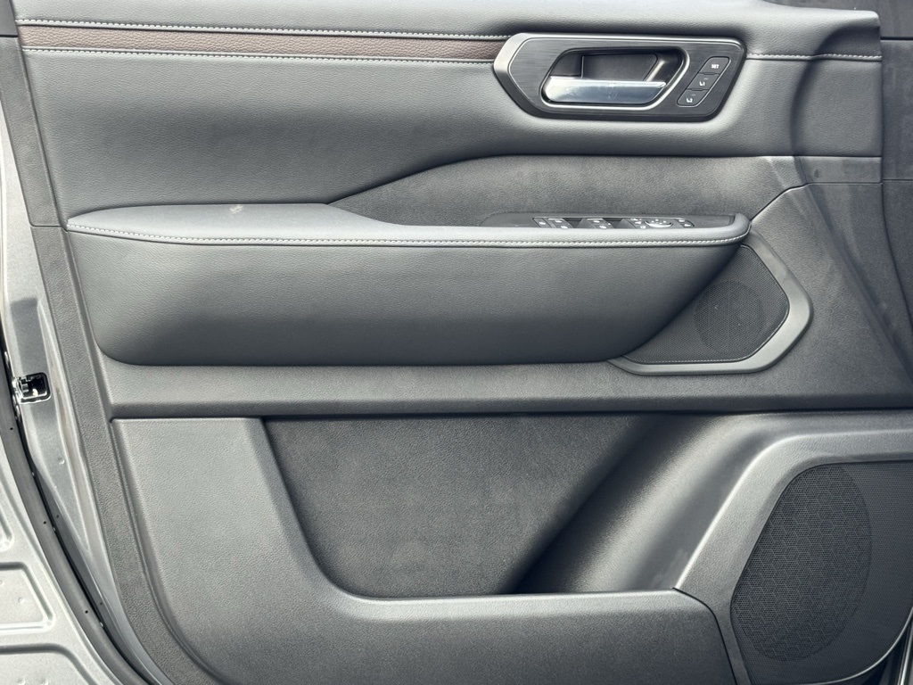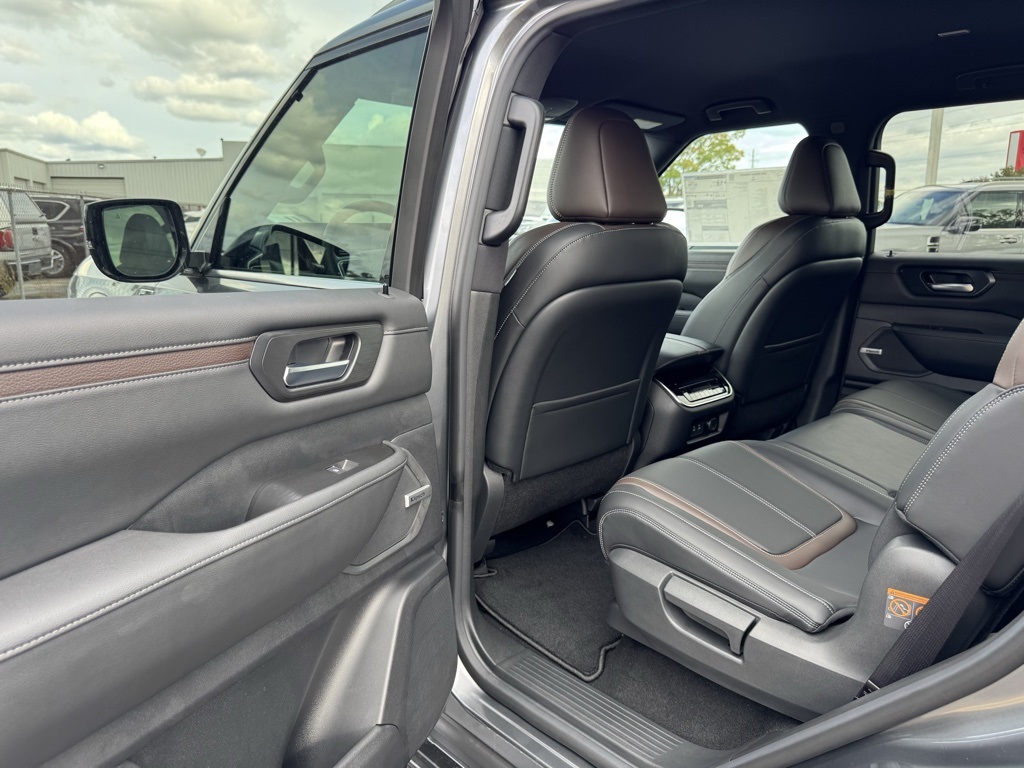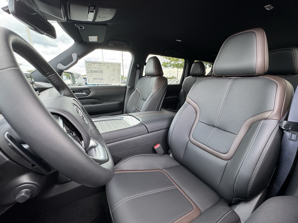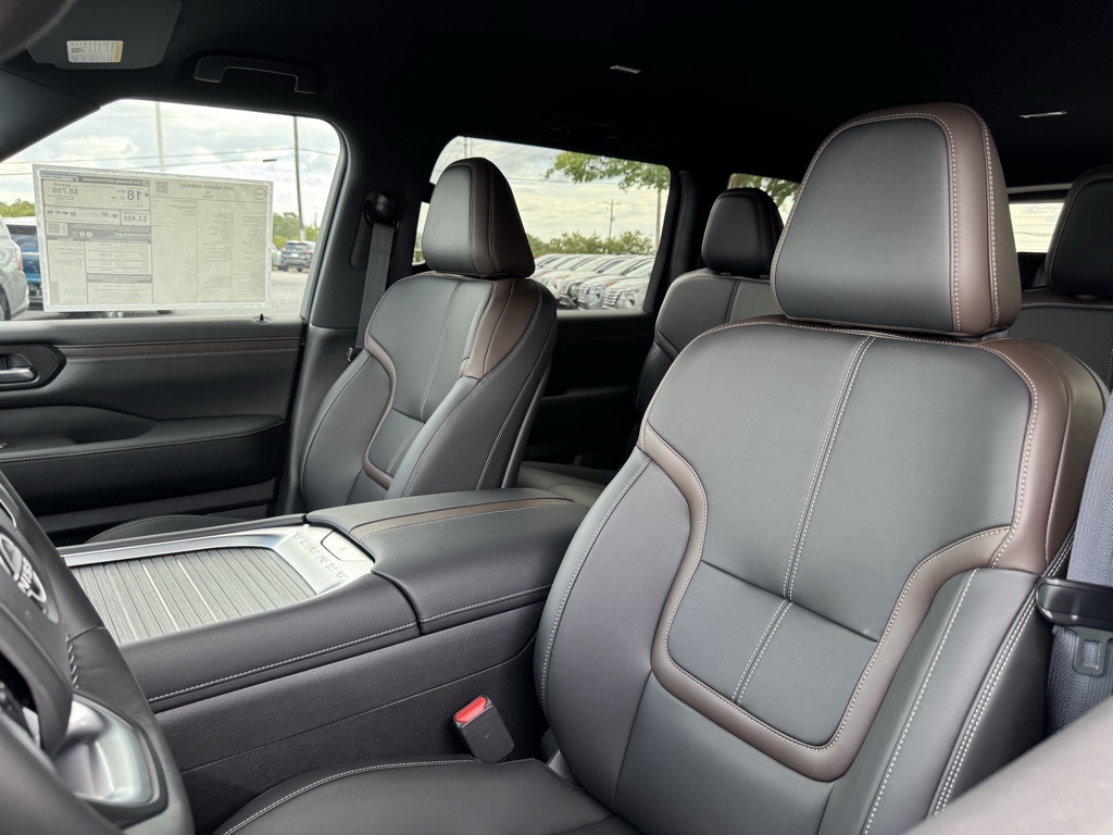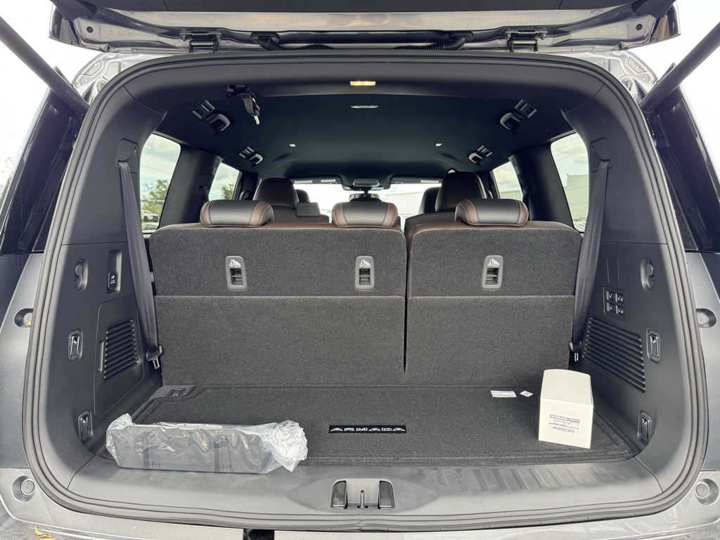 12 Speakers, 3rd row seats: split-bench, 4-Wheel Disc Brakes, ABS brakes, Air Conditioning, Alloy wheels, AM/FM radio: SiriusXM w/360L, Anti-whiplash front head restraints, Apple CarPlay/Android Auto, Auto High-beam Headlights, Auto tilt-away steering wheel, Auto-dimming door mirrors, Auto-dimming Rear-View mirror, Auto-leveling suspension, Automatic temperature control, Brake assist, Bumpers: body-color, Carpeted Floor Mats with Bench Seat, Compass, Delay-off headlights, Driver door bin, Driver vanity mirror, Dual front impact airbags, Dual front side impact airbags, Electronic Stability Control, Emergency communication system: NissanConnect Services, Four wheel independent suspension, Front anti-roll bar, Front Bucket Seats, Front Center Armrest, Front dual zone A/C, Front reading lights, Fully automatic headlights, Garage door transmitter: myQ Connected Garage, Genuine wood dashboard insert, Heated door mirrors, Heated Front Bucket Seats, Heated front seats, Heated steering wheel, HVAC memory, Illuminated entry, Knee airbag, Leather steering wheel, Low tire pressure warning, Memory seat, Navigation system: Google Maps, Occupant sensing airbag, Outside temperature display, Overhead airbag, Overhead console, Panic alarm, Passenger door bin, Passenger vanity mirror, Power door mirrors, Power driver seat, Power Liftgate, Power passenger seat, Power steering, Power windows, Radio: NissanConnect with SiriusXM 360L, Rain sensing wipers, Rear air conditioning, Rear anti-roll bar, Rear reading lights, Rear seat center armrest, Rear window defroster, Rear window wiper, Reclining 3rd row seat, Remote keyless entry, Security system, Speed control, Speed-sensing steering, Speed-Sensitive Wipers, Splash Guards, Split folding rear seat, Spoiler, Steering wheel memory, Steering wheel mounted audio controls, Tachometer, TailorFit Seat Trim, Telescoping steering wheel, Tilt steering wheel, Traction control, Trip computer, Turn signal indicator mirrors, Variably intermittent wipers, Voltmeter, and Wheels: 20" x 8.5J Machined and Painted Alloy.
