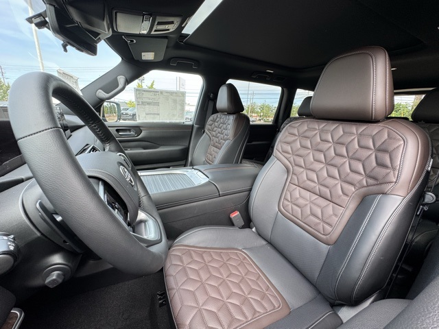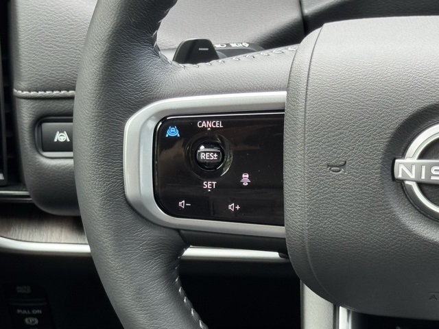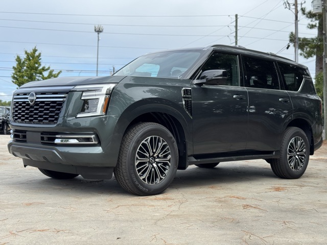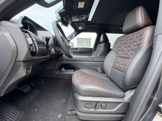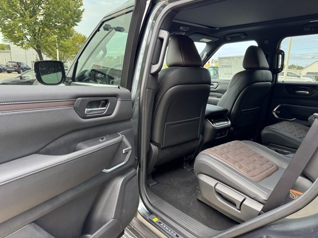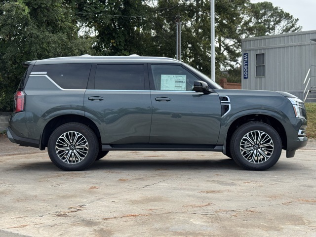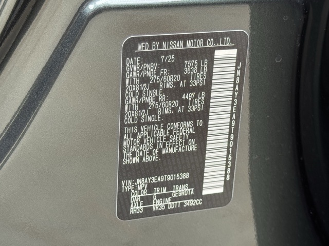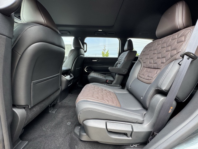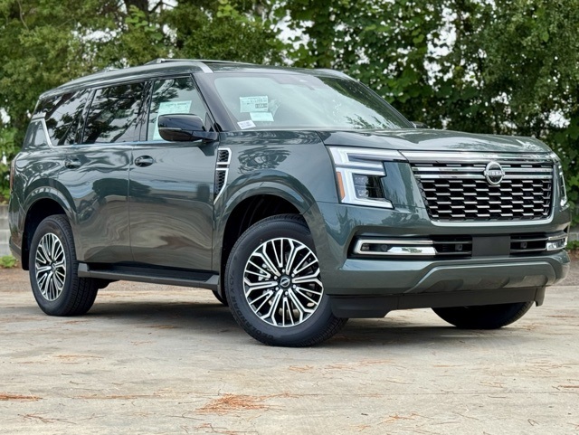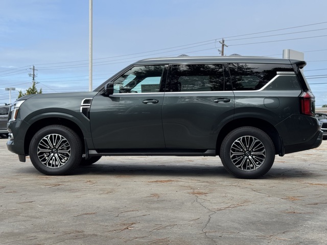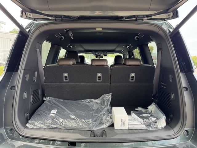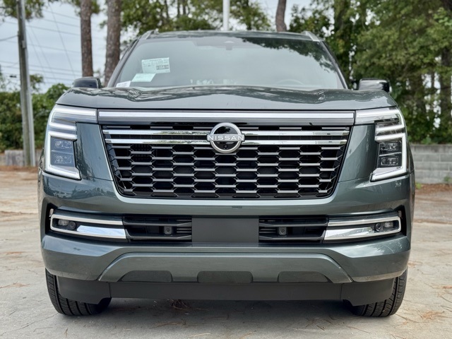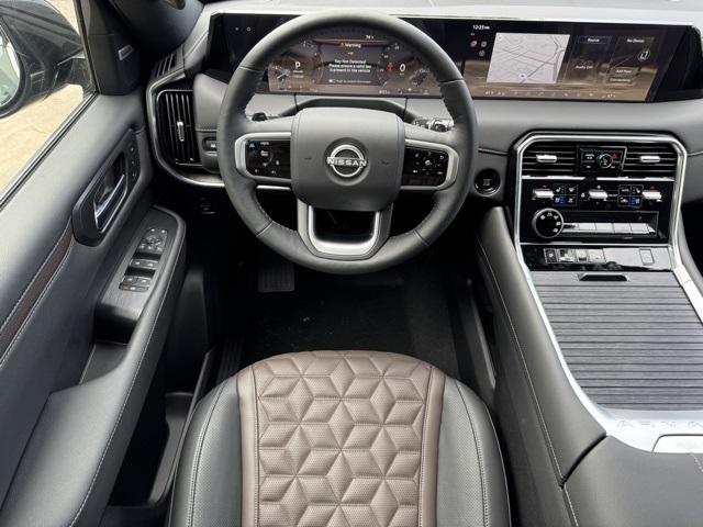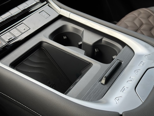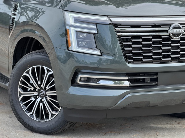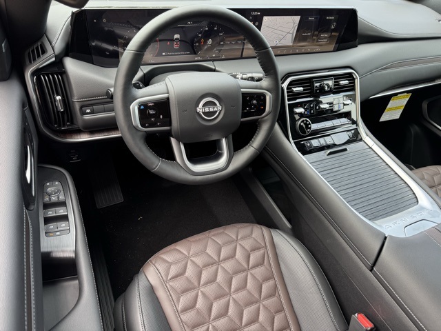 12 Speakers, 3rd row seats: split-bench, 4-Wheel Disc Brakes, ABS brakes, Air Conditioning, Alloy wheels, AM/FM radio: SiriusXM w/360L, Anti-whiplash front head restraints, Apple CarPlay/Android Auto, Auto High-beam Headlights, Auto tilt-away steering wheel, Auto-dimming door mirrors, Auto-dimming Rear-View mirror, Auto-leveling suspension, Automatic temperature control, Brake assist, Bumpers: body-color, Carpeted Floor Mats with Captain Chairs, Climate Controlled Heated and Ventilated Front Seats, Compass, Cross Bars, Delay-off headlights, Driver door bin, Driver vanity mirror, Dual front impact airbags, Dual front side impact airbags, Electronic Stability Control, Emergency communication system: NissanConnect Services, Four wheel independent suspension, Front anti-roll bar, Front Bucket Seats, Front Center Armrest, Front dual zone A/C, Front fog lights, Front reading lights, Fully automatic headlights, Garage door transmitter: HomeLink, Genuine wood dashboard insert, Heated door mirrors, Heated front seats, Heated rear seats, Heated steering wheel, HVAC memory, Illuminated entry, Illuminated Kick Plates, Knee airbag, Leather steering wheel, Low tire pressure warning, Memory seat, Navigation system: Google Maps, Occupant sensing airbag, Outside temperature display, Overhead airbag, Overhead console, Panic alarm, Passenger door bin, Passenger vanity mirror, Power door mirrors, Power driver seat, Power Liftgate, Power moonroof, Power passenger seat, Power steering, Power windows, Premium Paint, Quilted Leather Seat Trim, Radio: NissanConnect with SiriusXM 360L, Rain sensing wipers, Rear air conditioning, Rear anti-roll bar, Rear Bumper Protector, Rear reading lights, Rear window defroster, Rear window wiper, Reclining 3rd row seat, Remote keyless entry, Security system, Speed control, Speed-sensing steering, Speed-Sensitive Wipers, Splash Guards, Split folding rear seat, Spoiler, Steering wheel memory, Steering wheel mounted audio controls, Tachometer, Telescoping steering wheel, Tilt steering wheel, Traction control, Trip computer, Turn signal indicator mirrors, Variably intermittent wipers, Ventilated front seats, Voltmeter, and Wheels: 20" x 8.5J Machined and Painted Alloy.