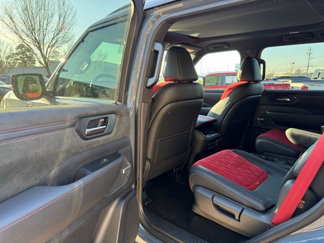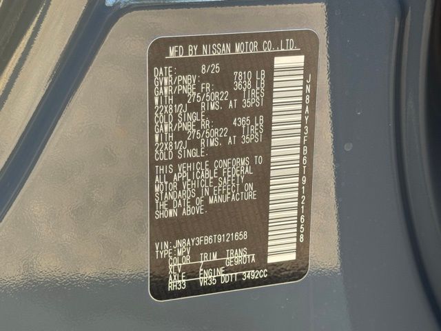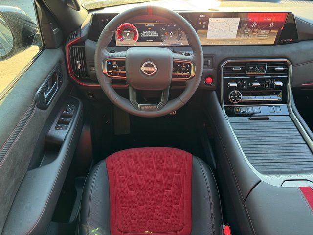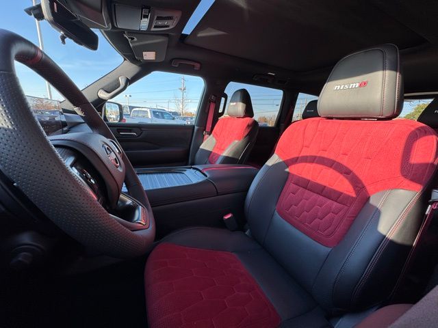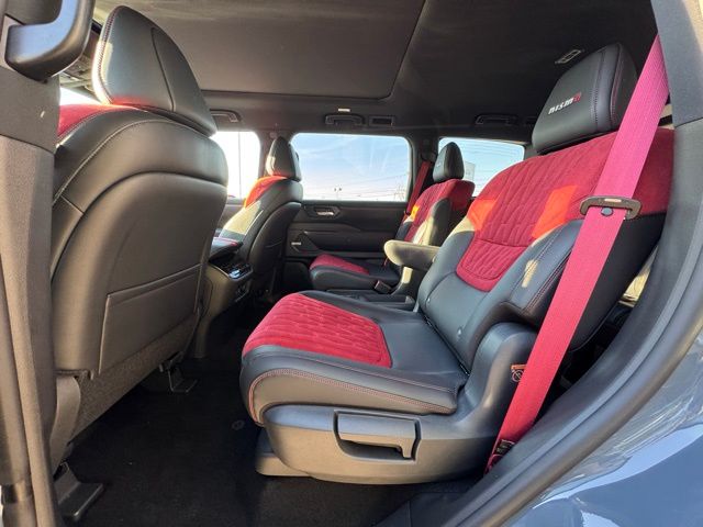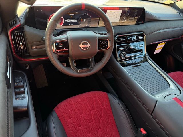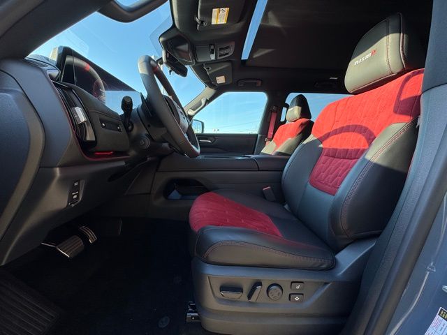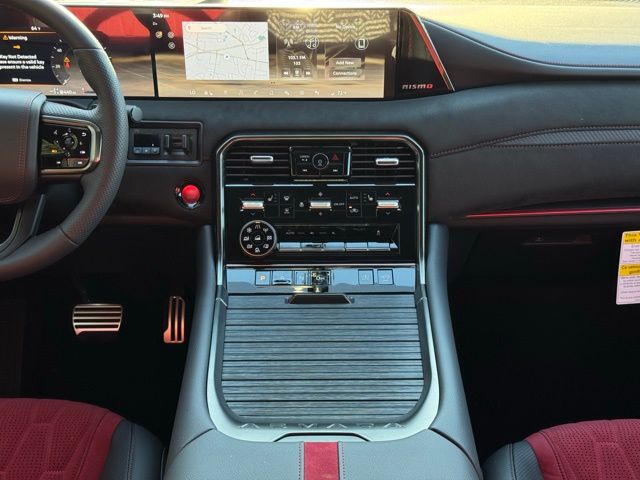 12 Speakers, 3rd row seats: split-bench, 4-Wheel Disc Brakes, ABS brakes, Adaptive suspension, Air Conditioning, Alloy wheels, AM/FM radio: SiriusXM w/360L, Anti-whiplash front head restraints, Apple CarPlay/Android Auto, Auto High-beam Headlights, Auto tilt-away steering wheel, Auto-dimming door mirrors, Auto-dimming Rear-View mirror, Auto-leveling suspension, Automatic temperature control, Brake assist, Bumpers: body-color, Compass, Delay-off headlights, Driver door bin, Driver vanity mirror, Dual front impact airbags, Dual front side impact airbags, Electronic Stability Control, Emergency communication system: NissanConnect Services, Four wheel independent suspension, Front anti-roll bar, Front Bucket Seats, Front Center Armrest, Front dual zone A/C, Front fog lights, Front reading lights, Fully automatic headlights, Garage door transmitter: HomeLink, Genuine wood dashboard insert, Heated door mirrors, Heated Front Bucket Seats, Heated front seats, Heated steering wheel, HVAC memory, Illuminated entry, Knee airbag, Leather steering wheel, Low tire pressure warning, Memory seat, Navigation system: Google Maps, NISMO Carpeted Floor Mats, Nismo Suede Seat Trim, Occupant sensing airbag, Outside temperature display, Overhead airbag, Overhead console, Panic alarm, Passenger door bin, Passenger vanity mirror, Power door mirrors, Power driver seat, Power Liftgate, Power moonroof, Power passenger seat, Power steering, Power windows, Premium Paint and 2-Tone Roof, Radio: NissanConnect with SiriusXM 360L, Rain sensing wipers, Rear air conditioning, Rear anti-roll bar, Rear reading lights, Rear window defroster, Rear window wiper, Reclining 3rd row seat, Remote keyless entry, Security system, Speed control, Speed-sensing steering, Speed-Sensitive Wipers, Split folding rear seat, Spoiler, Steering wheel memory, Steering wheel mounted audio controls, Tachometer, Telescoping steering wheel, Tilt steering wheel, Traction control, Trip computer, Turn signal indicator mirrors, Variably intermittent wipers, Voltmeter, and Wheels: 22" Forged and Machined Alloy. Price includes dealer added accessories.