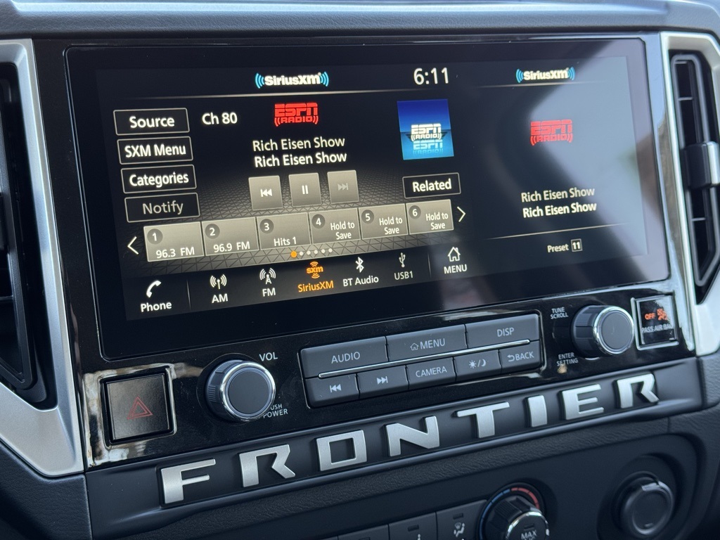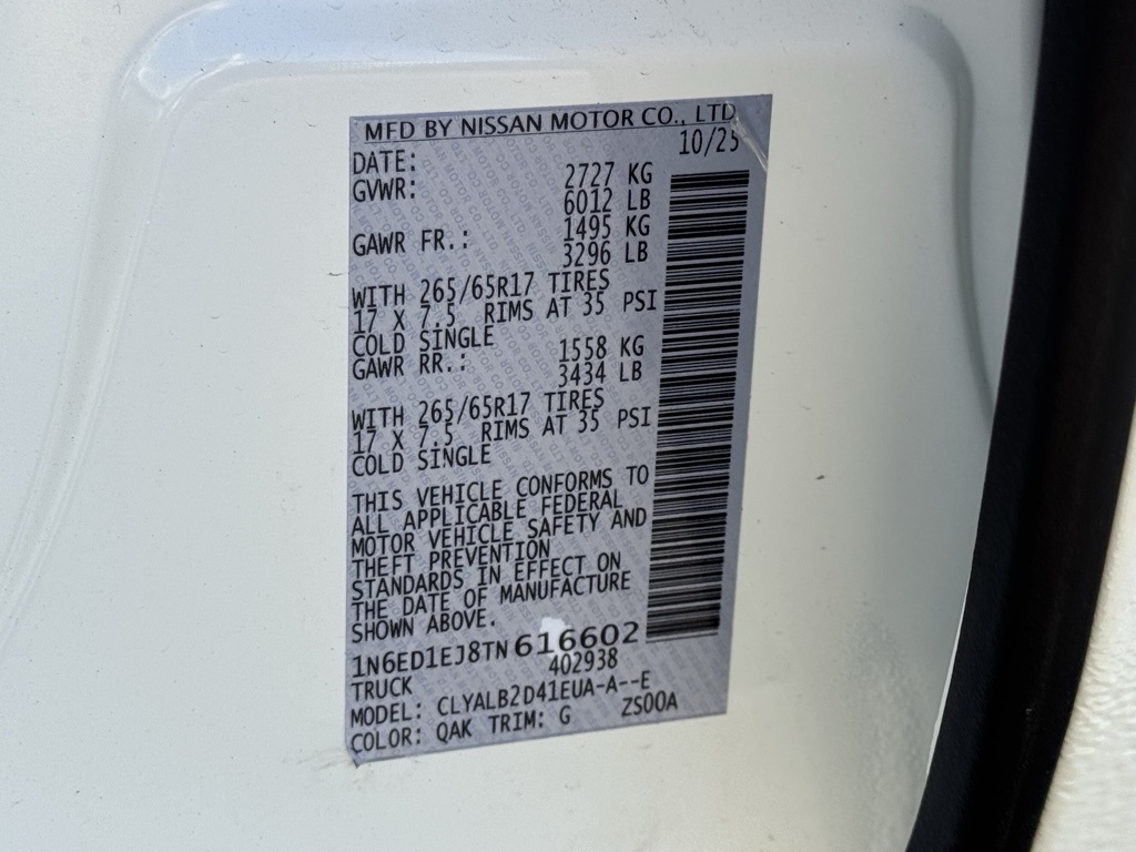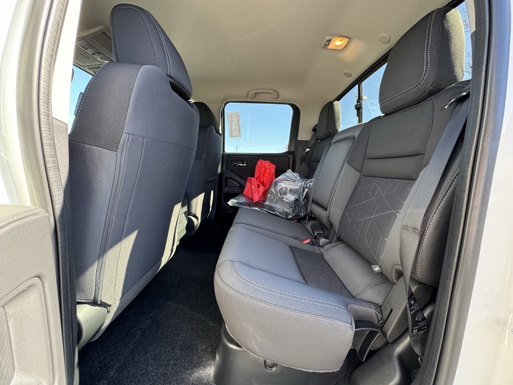 Tow Package, 17" Alloy Wheels, 3.692 Axle Ratio, 4-Wheel Disc Brakes, 6 Speakers, ABS brakes, Air Conditioning, Alloy wheels, AM/FM radio: SiriusXM, Anti-whiplash front head restraints, Auto High-beam Headlights, Blind Spot Warning, Brake assist, Bumpers: body-color, Carpeted Floor Mats, Delay-off headlights, Driver door bin, Driver vanity mirror, Drop-In Bed Liner & Bumper Step, Dual front impact airbags, Dual front side impact airbags, Electronic Stability Control, Emergency communication system, Front anti-roll bar, Front Bucket Seats, Front Center Armrest, Front reading lights, Front wheel independent suspension, Fully automatic headlights, Illuminated entry, Knee airbag, Low tire pressure warning, Occupant sensing airbag, Overhead airbag, Overhead console, Panic alarm, Passenger door bin, Passenger vanity mirror, Power door mirrors, Power driver seat, Power steering, Power windows, Premium Cloth Seat Trim, Radio data system, Radio: SXM/AM/FM/AUX/USB Audio System, Rear anti-roll bar, Rear seat center armrest, Rear side impact airbag, Rear step bumper, Remote keyless entry, Security system, Speed control, Speed-sensing steering, Splash Guards, Split folding rear seat, Steering wheel mounted audio controls, Tachometer, Telescoping steering wheel, Tilt steering wheel, Tow/Haul Mode Switch, Traction control, Trip computer, Variably intermittent wipers, Voltmeter, and Wireless Apple CarPlay/Wireless Android Auto. Price includes all rebates: $2000 - Nissan Customer Cash. Exp. 12/01/2025