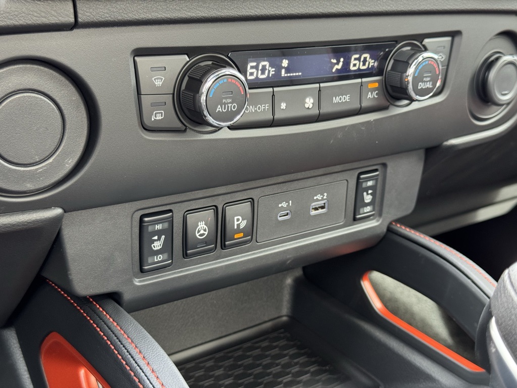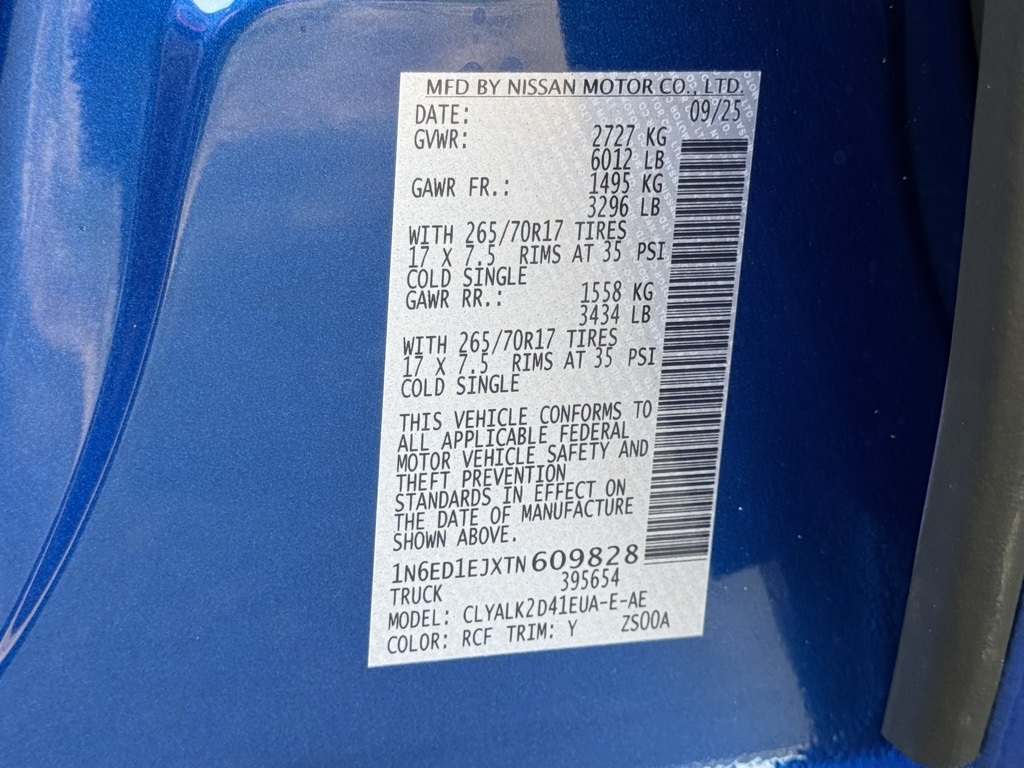 PRO Premium Package (Auto-Dimming Mirror, Auto-Tilt & Slide Sunroof w/Manual Shade, Fender Premium Audio System w/10 Speakers, HomeLink UGDO, Leather Seat Trim, Nissan Door-to-Door Navigation, Partial Under-Seat Storage Delete, and Traffic Sign Recognition (TSR)), PRO-X Convenience Package (Heated Steering Wheel, Intelligent Around View Monitor (I-AVM), and Wireless Charging for Personal Devices), Tow Package (T11), 17" Painted Alloy Wheels, 3.692 Axle Ratio, 4-Wheel Disc Brakes, 6 Speakers, ABS brakes, Air Conditioning, Alloy wheels, AM/FM radio: SiriusXM, Anti-whiplash front head restraints, Auto High-beam Headlights, Automatic temperature control, Blind Spot Warning, Brake assist, Bumpers: body-color, Carpeted Floor Mats, Delay-off headlights, Driver door bin, Driver vanity mirror, Dual front impact airbags, Dual front side impact airbags, Electronic Stability Control, Electronic Tailgate Lock, Emergency communication system, Front anti-roll bar, Front Bucket Seats, Front Center Armrest, Front dual zone A/C, Front fog lights, Front reading lights, Front wheel independent suspension, Fully automatic headlights, Heated Front Bucket Seats, Heated steering wheel, Illuminated entry, Knee airbag, Leather steering wheel, Low tire pressure warning, Mud Flaps, Occupant sensing airbag, Off-Road Style Step Rails, Overhead airbag, Overhead console, Panic alarm, Passenger door bin, Passenger vanity mirror, Power door mirrors, Power driver seat, Power passenger seat, Power steering, Power windows, Premium Paint, PRO Embroidered Premium Cloth Seat Trim, Radio data system, Radio: SXM/AM/FM/AUX/USB Audio System, Rear anti-roll bar, Rear seat center armrest, Rear side impact airbag, Rear step bumper, Remote keyless entry, Security system, Speed control, Speed-sensing steering, Split folding rear seat, Steering wheel mounted audio controls, Tachometer, Telescoping steering wheel, Tilt steering wheel, Traction control, Trip computer, Variably intermittent wipers, Voltmeter, and Wireless Apple CarPlay/Wireless Android Auto. Price includes all rebates: $2500 - Nissan Customer Cash. Exp. 01/05/2026