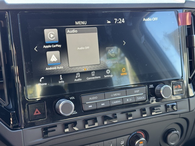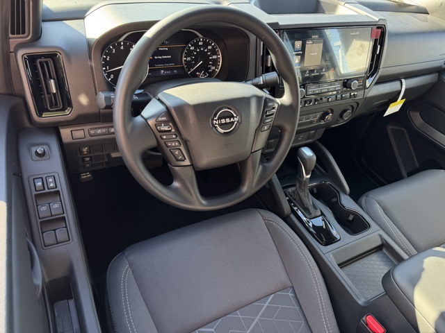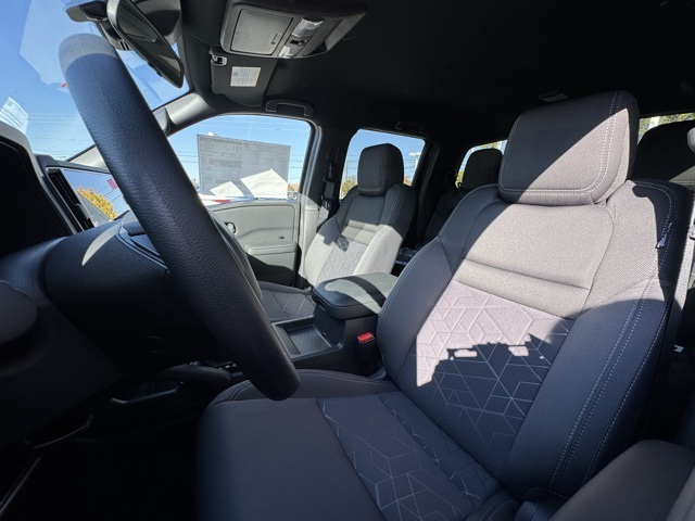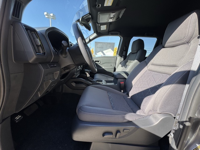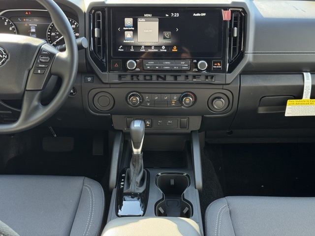 Dark Armor Package (Dark FRONTIER Tailgate Lettering, Dark Grill Surround/Mesh/Inner Fascia, Dark Mirror Caps, and Wheels: 17" Dark), Tow Package, 17" Alloy Wheels, 3.692 Axle Ratio, 4-Wheel Disc Brakes, 6 Speakers, ABS brakes, Air Conditioning, Alloy wheels, AM/FM radio: SiriusXM, Anti-whiplash front head restraints, Auto High-beam Headlights, Blind Spot Warning, Brake assist, Bumpers: body-color, Carpeted Floor Mats, Delay-off headlights, Driver door bin, Driver vanity mirror, Drop-In Bed Liner & Bumper Step, Dual front impact airbags, Dual front side impact airbags, Electronic Stability Control, Emergency communication system, Front anti-roll bar, Front Bucket Seats, Front Center Armrest, Front reading lights, Front wheel independent suspension, Fully automatic headlights, Illuminated entry, Knee airbag, Low tire pressure warning, Occupant sensing airbag, Overhead airbag, Overhead console, Panic alarm, Passenger door bin, Passenger vanity mirror, Power door mirrors, Power driver seat, Power steering, Power windows, Premium Cloth Seat Trim, Radio data system, Radio: SXM/AM/FM/AUX/USB Audio System, Rear anti-roll bar, Rear seat center armrest, Rear side impact airbag, Rear step bumper, Remote keyless entry, Security system, Speed control, Speed-sensing steering, Splash Guards, Split folding rear seat, Steering wheel mounted audio controls, Tachometer, Telescoping steering wheel, Tilt steering wheel, Tow/Haul Mode Switch, Traction control, Trip computer, Variably intermittent wipers, Voltmeter, and Wireless Apple CarPlay/Wireless Android Auto. Price includes dealer added accessories.