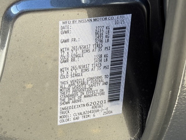 Gun Metallic 2026 Nissan Frontier SV RWD 9-Speed Automatic with Overdrive 3.8L DI DOHC 24V V6 This Vehicle qualifies for Complimentary 10 YEARS or 250,000 MILE LIMITED POWER TRAIN WARRANTY. HUGE VALUE! Visit dealer for complete details.