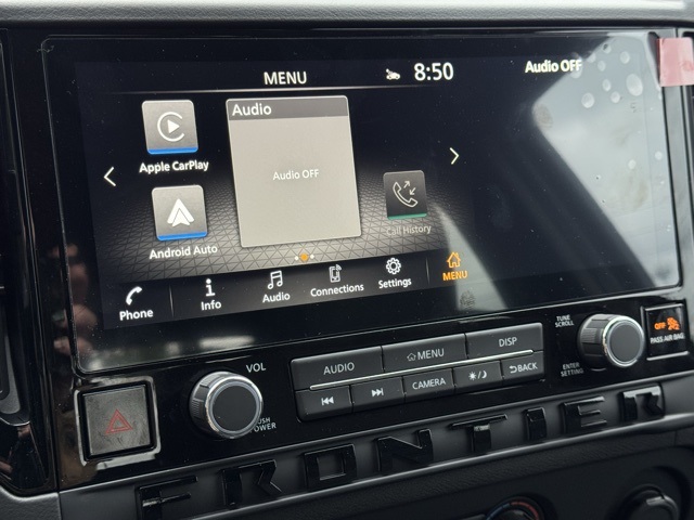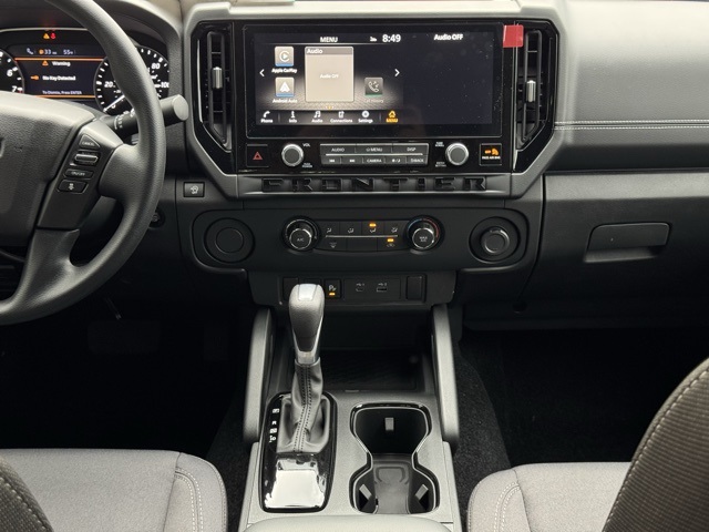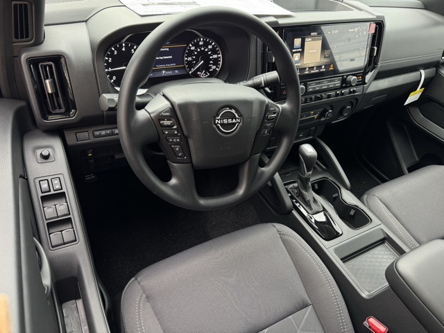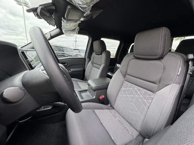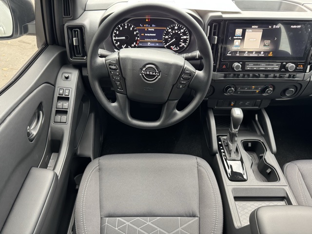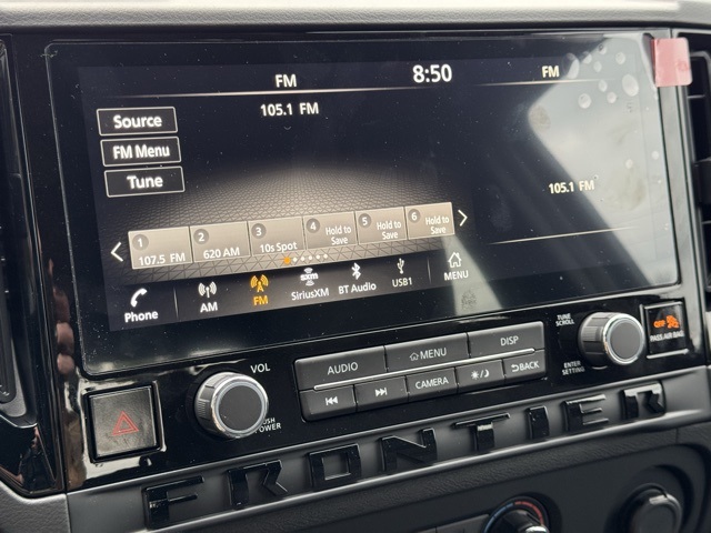 Dark Armor Package (Dark FRONTIER Tailgate Lettering, Dark Grill Surround/Mesh/Inner Fascia, Dark Mirror Caps, and Wheels: 17" Dark), Tow Package, 17" Alloy Wheels, 3.692 Axle Ratio, 4-Wheel Disc Brakes, 6 Speakers, ABS brakes, Air Conditioning, Alloy wheels, AM/FM radio: SiriusXM, Anti-whiplash front head restraints, Auto High-beam Headlights, Black Tailgate Logo Insert, Blind Spot Warning, Brake assist, Bumpers: body-color, Carpeted Floor Mats, Delay-off headlights, Driver door bin, Driver vanity mirror, Drop-In Bed Liner & Bumper Step, Dual front impact airbags, Dual front side impact airbags, Electronic Stability Control, Emergency communication system, Front anti-roll bar, Front Bucket Seats, Front Center Armrest, Front reading lights, Front wheel independent suspension, Fully automatic headlights, Illuminated entry, Knee airbag, Low tire pressure warning, Occupant sensing airbag, Overhead airbag, Overhead console, Panic alarm, Passenger door bin, Passenger vanity mirror, Power door mirrors, Power driver seat, Power steering, Power windows, Premium Cloth Seat Trim, Radio data system, Radio: SXM/AM/FM/AUX/USB Audio System, Rear anti-roll bar, Rear seat center armrest, Rear side impact airbag, Rear step bumper, Remote keyless entry, Security system, Speed control, Speed-sensing steering, Splash Guards, Split folding rear seat, Steering wheel mounted audio controls, Tachometer, Telescoping steering wheel, Tilt steering wheel, Tow/Haul Mode Switch, Traction control, Trip computer, Variably intermittent wipers, Voltmeter, and Wireless Apple CarPlay/Wireless Android Auto.