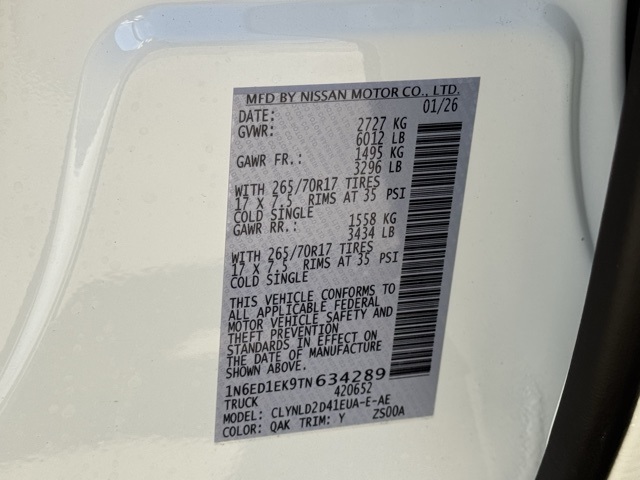 PRO Premium Package (Leather Seat Trim), PRO-4X Convenience Package, Tow Package (T11), 17" Painted Alloy Wheels, 3.692 Axle Ratio, 4-Wheel Disc Brakes, 6 Speakers, ABS brakes, Air Conditioning, Alloy wheels, AM/FM radio: SiriusXM, Anti-whiplash front head restraints, Auto High-beam Headlights, Automatic temperature control, Blind Spot Warning, Brake assist, Bumpers: body-color, Delay-off headlights, Driver door bin, Driver vanity mirror, Dual front impact airbags, Dual front side impact airbags, Electronic Stability Control, Electronic Tailgate Lock, Emergency communication system, Essentials Kit, Front anti-roll bar, Front Bucket Seats, Front Center Armrest, Front dual zone A/C, Front fog lights, Front reading lights, Front wheel independent suspension, Fully automatic headlights, Heated Front Bucket Seats, Heated front seats, Heated steering wheel, Illuminated entry, Knee airbag, Leather steering wheel, Low tire pressure warning, Mud Flaps, Occupant sensing airbag, Off-Road Style Step Rails, Overhead airbag, Overhead console, Panic alarm, Passenger door bin, Passenger vanity mirror, Power door mirrors, Power driver seat, Power passenger seat, Power steering, Power windows, PRO Embroidered Premium Cloth Seat Trim, PRO-4X Carpeted Floor Mats, Radio data system, Radio: SXM/AM/FM/AUX/USB Audio System, Rear anti-roll bar, Rear seat center armrest, Rear side impact airbag, Rear step bumper, Remote keyless entry, Security system, Speed control, Speed-sensing steering, Split folding rear seat, Steering wheel mounted audio controls, Tachometer, Telescoping steering wheel, Tilt steering wheel, Traction control, Trip computer, Variably intermittent wipers, Voltmeter, and Wireless Apple CarPlay/Wireless Android Auto. Price includes: $2500 - Nissan Customer Cash. Exp. 03/31/2026 Price includes dealer added accessories.