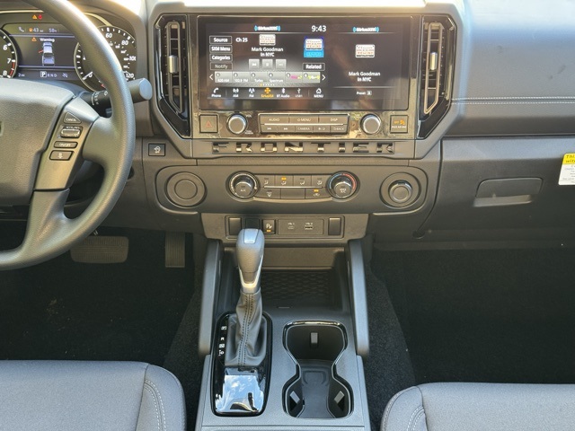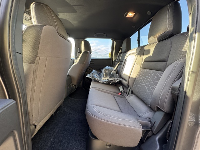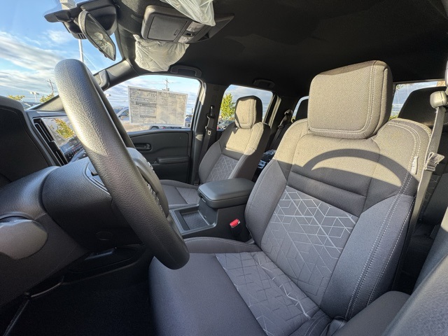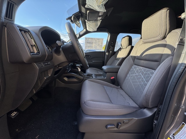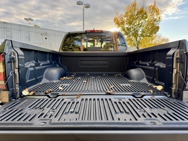 Dark Armor Package (Dark FRONTIER Tailgate Lettering, Dark Grill Surround/Mesh/Inner Fascia, Dark Mirror Caps, and Wheels: 17" Dark), Tow Package, 17" Alloy Wheels, 3.692 Axle Ratio, 4-Wheel Disc Brakes, 6 Speakers, ABS brakes, Air Conditioning, Alloy wheels, AM/FM radio: SiriusXM, Anti-whiplash front head restraints, Auto High-beam Headlights, Black Tailgate Logo Insert, Blind Spot Warning, Brake assist, Bumpers: body-color, Carpeted Floor Mats, Delay-off headlights, Driver door bin, Driver vanity mirror, Drop-In Bed Liner & Bumper Step, Dual front impact airbags, Dual front side impact airbags, Electronic Stability Control, Emergency communication system, Front anti-roll bar, Front Bucket Seats, Front Center Armrest, Front reading lights, Front wheel independent suspension, Fully automatic headlights, Heated door mirrors, Illuminated entry, Knee airbag, Low tire pressure warning, Occupant sensing airbag, Overhead airbag, Overhead console, Panic alarm, Passenger door bin, Passenger vanity mirror, Power door mirrors, Power driver seat, Power steering, Power windows, Premium Cloth Seat Trim, Radio data system, Radio: SXM/AM/FM/AUX/USB Audio System, Rear anti-roll bar, Rear seat center armrest, Rear side impact airbag, Rear step bumper, Remote keyless entry, Security system, Speed control, Speed-sensing steering, Splash Guards, Split folding rear seat, Steering wheel mounted audio controls, Tachometer, Telescoping steering wheel, Tilt steering wheel, Tow/Haul Mode Switch, Traction control, Trip computer, Variably intermittent wipers, Voltmeter, and Wireless Apple CarPlay/Wireless Android Auto.