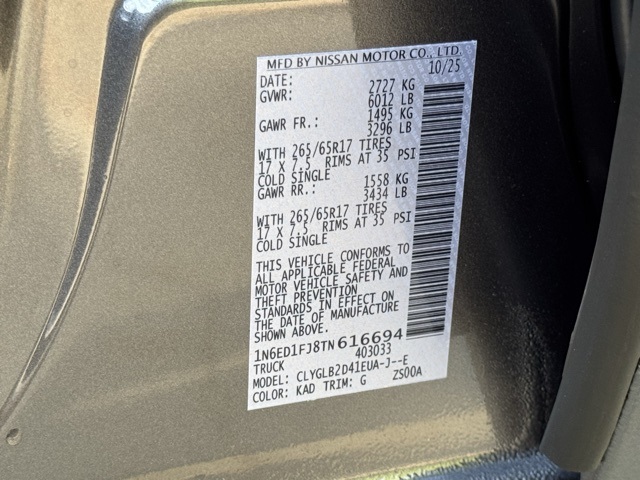 VIN 1N6ED1FJ8TN616694