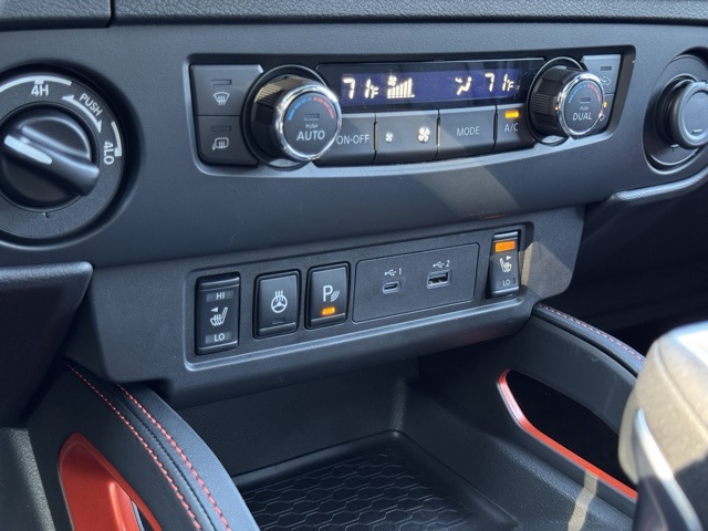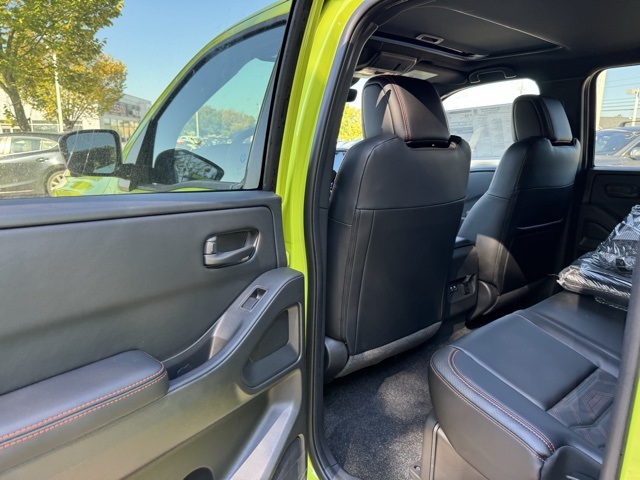 PRO Premium Package (Auto-Dimming Mirror, Auto-Tilt & Slide Sunroof w/Manual Shade, Fender Premium Audio System w/10 Speakers, HomeLink UGDO, Leather Seat Trim, Nissan Door-to-Door Navigation, Partial Under-Seat Storage Delete, and Traffic Sign Recognition (TSR)), PRO-4X Convenience Package (Heated Steering Wheel, Intelligent Around View Monitor (I-AVM), and Wireless Charging for Personal Devices), Tow Package (T11), 17" Painted Alloy Wheels, 3.692 Axle Ratio, 4-Wheel Disc Brakes, 6 Speakers, ABS brakes, Air Conditioning, Alloy wheels, AM/FM radio: SiriusXM, Anti-whiplash front head restraints, Auto High-beam Headlights, Automatic temperature control, Blind Spot Warning, Brake assist, Bumpers: body-color, Delay-off headlights, Driver door bin, Driver vanity mirror, Dual front impact airbags, Dual front side impact airbags, Electronic Stability Control, Electronic Tailgate Lock, Emergency communication system, Essentials Kit, Front anti-roll bar, Front Bucket Seats, Front Center Armrest, Front dual zone A/C, Front fog lights, Front reading lights, Front wheel independent suspension, Fully automatic headlights, Heated Front Bucket Seats, Heated front seats, Heated steering wheel, Illuminated entry, Knee airbag, Leather steering wheel, Low tire pressure warning, Mud Flaps, Occupant sensing airbag, Off-Road Style Step Rails, Overhead airbag, Overhead console, Panic alarm, Passenger door bin, Passenger vanity mirror, Power door mirrors, Power driver seat, Power passenger seat, Power steering, Power windows, Premium Paint, PRO Embroidered Premium Cloth Seat Trim, PRO-4X Carpeted Floor Mats, Radio data system, Radio: SXM/AM/FM/AUX/USB Audio System, Rear anti-roll bar, Rear seat center armrest, Rear side impact airbag, Rear step bumper, Remote keyless entry, Security system, Speed control, Speed-sensing steering, Split folding rear seat, Steering wheel mounted audio controls, Tachometer, Telescoping steering wheel, Tilt steering wheel, Traction control, Trip computer, Variably intermittent wipers, Voltmeter, and Wireless Apple CarPlay/Wireless Android Auto.