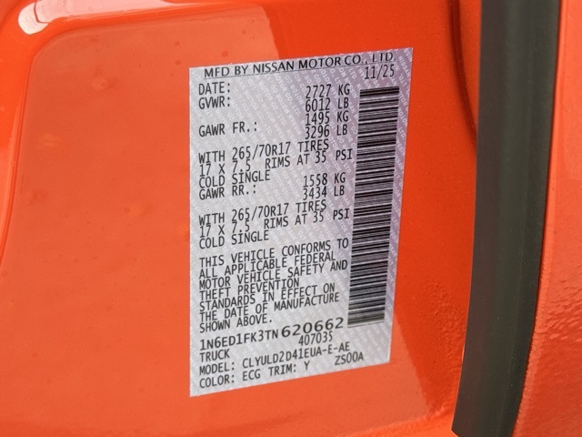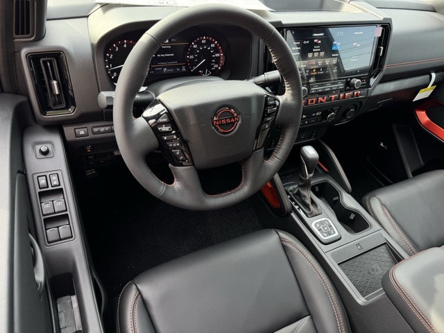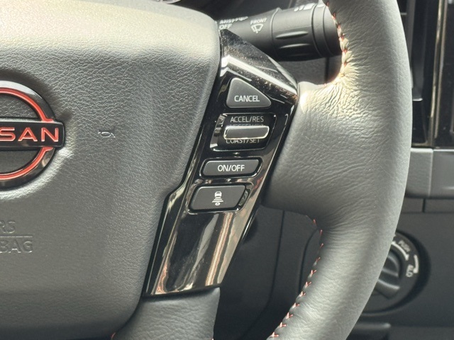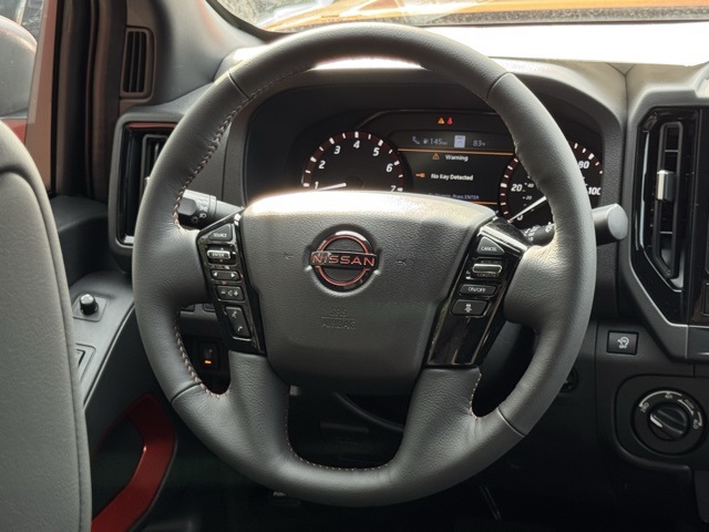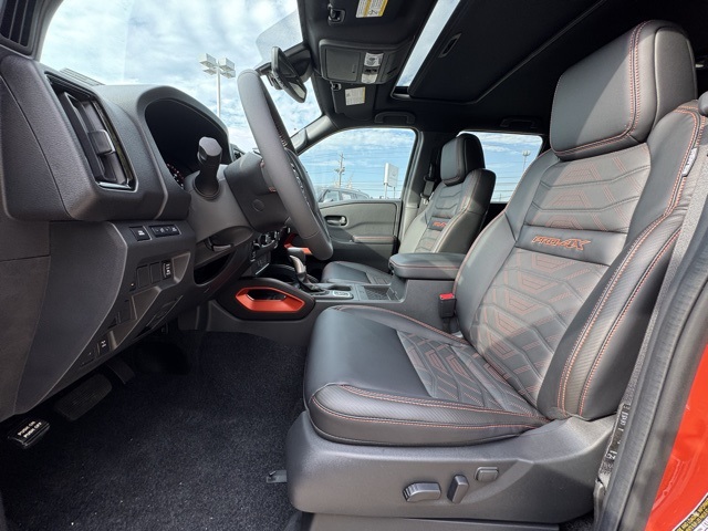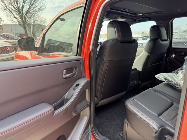 PRO Premium Package (Auto-Dimming Mirror, Auto-Tilt & Slide Sunroof w/Manual Shade, Fender Premium Audio System w/10 Speakers, HomeLink UGDO, Leather Seat Trim, Nissan Door-to-Door Navigation, Partial Under-Seat Storage Delete, and Traffic Sign Recognition (TSR)), PRO-4X Convenience Package (Heated Steering Wheel, Intelligent Around View Monitor (I-AVM), and Wireless Charging for Personal Devices), 17" Painted Alloy Wheels, 3.692 Axle Ratio, 4-Wheel Disc Brakes, 6 Speakers, ABS brakes, Air Conditioning, Alloy wheels, AM/FM radio: SiriusXM, Anti-whiplash front head restraints, Auto High-beam Headlights, Automatic temperature control, Blind Spot Warning, Brake assist, Bumpers: body-color, Delay-off headlights, Driver door bin, Driver vanity mirror, Dual front impact airbags, Dual front side impact airbags, Electronic Stability Control, Electronic Tailgate Lock, Emergency communication system, Essentials Kit, Front anti-roll bar, Front Bucket Seats, Front Center Armrest, Front dual zone A/C, Front fog lights, Front reading lights, Front wheel independent suspension, Fully automatic headlights, Heated Front Bucket Seats, Heated front seats, Heated steering wheel, Illuminated entry, Knee airbag, Leather steering wheel, Low tire pressure warning, Mud Flaps, Occupant sensing airbag, Off-Road Style Step Rails, Overhead airbag, Overhead console, Panic alarm, Passenger door bin, Passenger vanity mirror, Power door mirrors, Power driver seat, Power passenger seat, Power steering, Power windows, Premium Paint, PRO Embroidered Premium Cloth Seat Trim, Radio data system, Radio: SXM/AM/FM/AUX/USB Audio System, Rear anti-roll bar, Rear seat center armrest, Rear side impact airbag, Rear step bumper, Remote keyless entry, Security system, Speed control, Speed-sensing steering, Split folding rear seat, Steering wheel mounted audio controls, Tachometer, Telescoping steering wheel, Tilt steering wheel, Traction control, Trip computer, Variably intermittent wipers, Voltmeter, and Wireless Apple CarPlay/Wireless Android Auto.