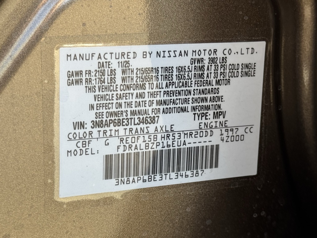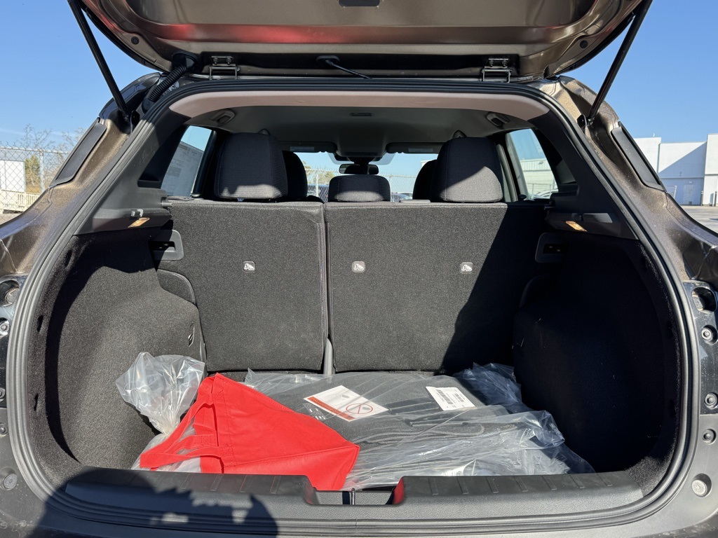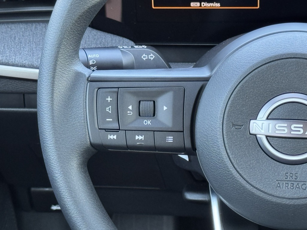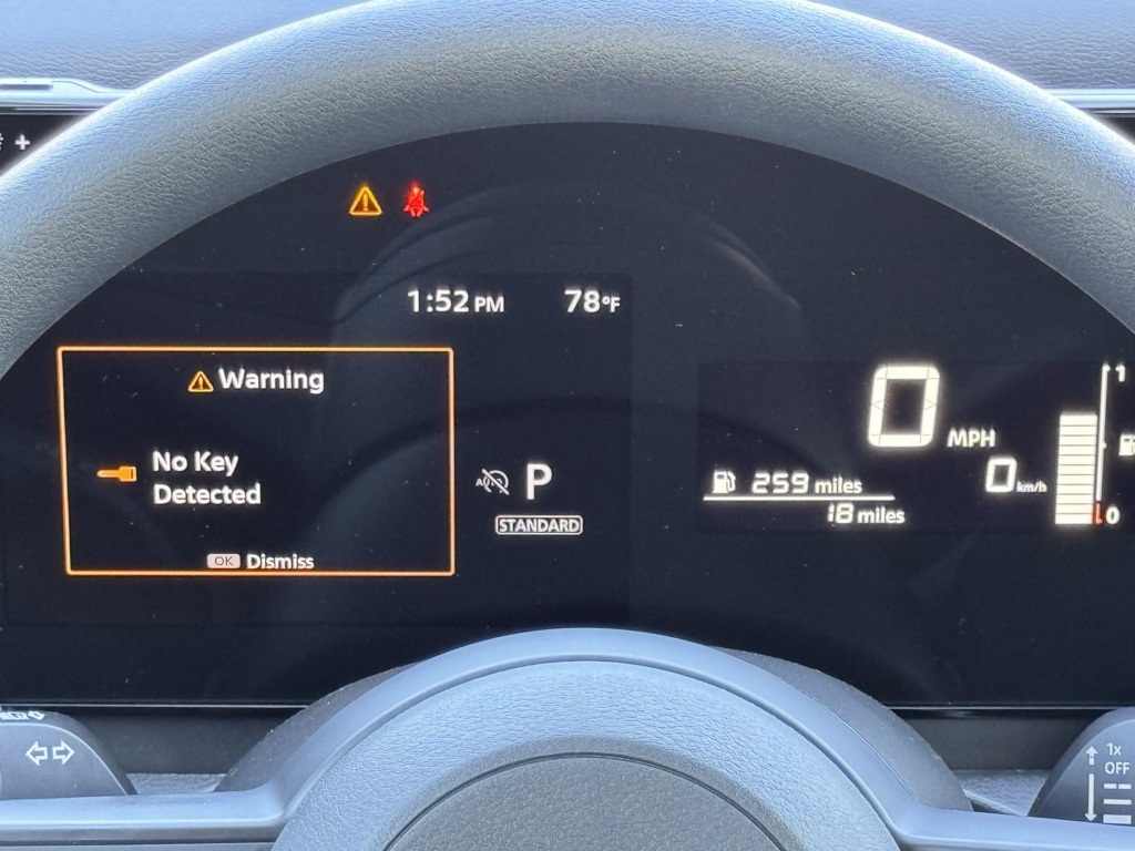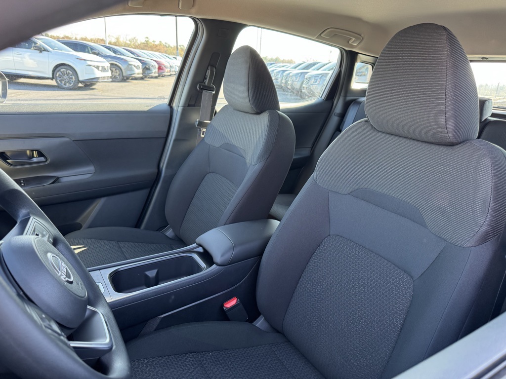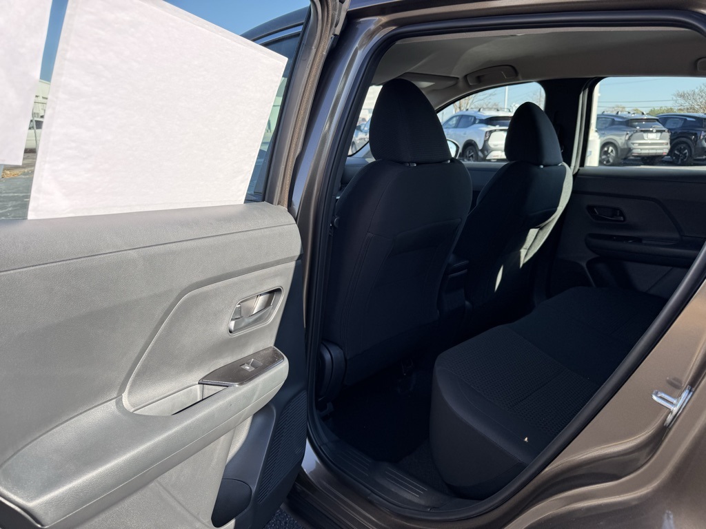 16" Steel Wheels w/Full Covers, 4 Speakers, 4-Wheel Disc Brakes, ABS brakes, Air Conditioning, AM/FM radio, Auto High-beam Headlights, Blind Spot Warning, Brake assist, Bumpers: body-color, Carpeted Floor Mats & Cargo Mat, Cloth Seat Trim, Driver door bin, Driver vanity mirror, Driver's Seat Mounted Armrest, Dual front impact airbags, Dual front side impact airbags, Electronic Stability Control, Emergency communication system, Exterior Parking Camera Rear, Front anti-roll bar, Front Bucket Seats, Front reading lights, Front wheel independent suspension, Fully automatic headlights, Illuminated entry, Knee airbag, Low tire pressure warning, NissanConnect featuring Apple CarPlay and Android Auto, Occupant sensing airbag, Outside temperature display, Overhead airbag, Panic alarm, Passenger door bin, Passenger vanity mirror, Power door mirrors, Power steering, Power windows, Radio data system, Radio: AM/FM/SiriusXM Audio System, Rear anti-roll bar, Rear reading lights, Rear side impact airbag, Rear window defroster, Rear window wiper, Remote keyless entry, Security system, Speed control, Speed-sensing steering, Splash Guards, Split folding rear seat, Spoiler, Sport steering wheel, Steering wheel mounted audio controls, Tachometer, Telescoping steering wheel, Tilt steering wheel, Traction control, Trip computer, and Variably intermittent wipers.