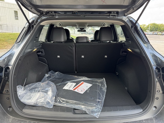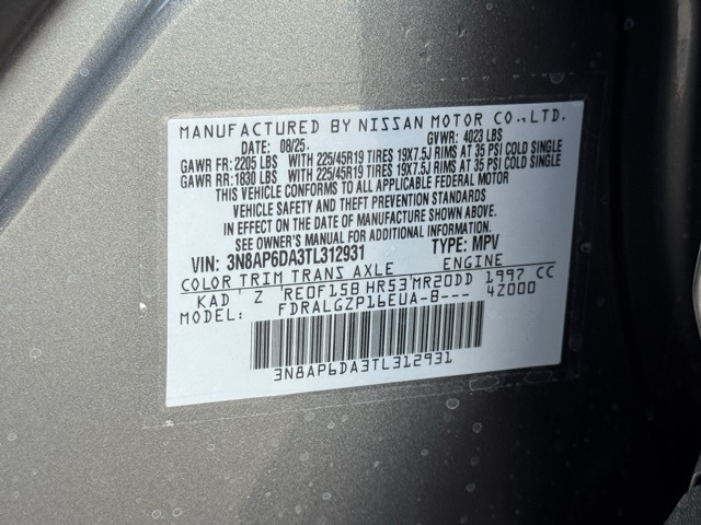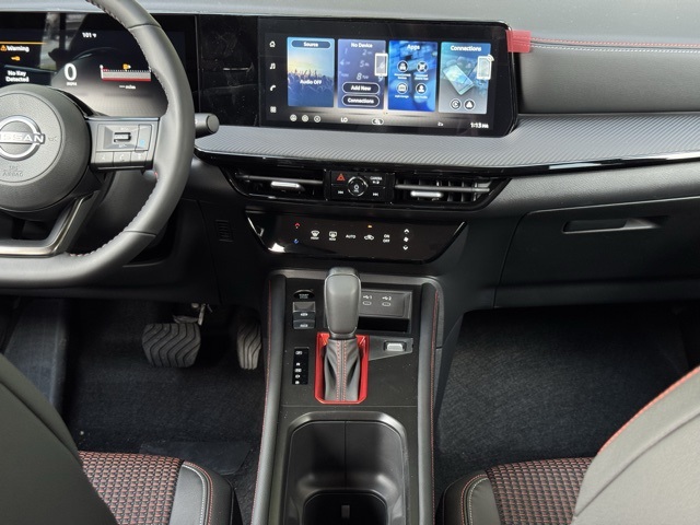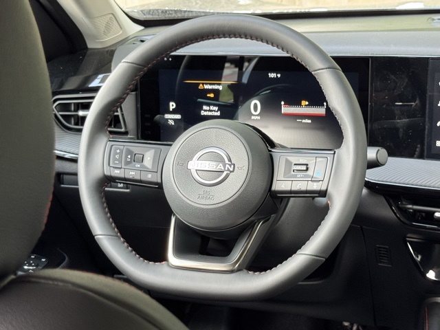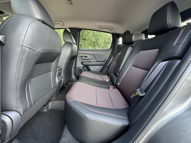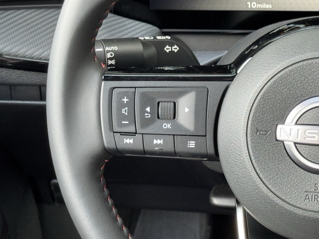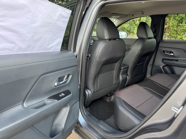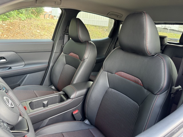 17" Alloy Wheels, 19" Alloy Wheels, 4-Wheel Disc Brakes, 6 Speakers, ABS brakes, Air Conditioning, Alloy wheels, AM/FM radio, Auto High-beam Headlights, Automatic temperature control, Brake assist, Bumpers: body-color, Carpeted Floor Mats & Underfloor Protector, Crossbars, Delay-off headlights, Driver door bin, Driver vanity mirror, Dual front impact airbags, Dual front side impact airbags, Electronic Stability Control, Emergency communication system: NissanConnect Services, Exterior Parking Camera Rear, Front anti-roll bar, Front Bucket Seats, Front Center Armrest, Front reading lights, Front wheel independent suspension, Fully automatic headlights, Garage door transmitter: myQ Connected Garage, Illuminated entry, Knee airbag, Leather Shift Knob, Leather steering wheel, Low tire pressure warning, NissanConnect featuring Apple CarPlay and Android Auto, Occupant sensing airbag, Outside temperature display, Overhead airbag, Overhead console, Panic alarm, Passenger door bin, Passenger vanity mirror, Power door mirrors, Power steering, Power windows, Radio data system, Radio: AM/FM/SiriusXM Audio System, Rear anti-roll bar, Rear reading lights, Rear seat center armrest, Rear side impact airbag, Rear window defroster, Rear window wiper, Remote keyless entry, Security system, Speed control, Speed-sensing steering, Splash Guards, Split folding rear seat, Spoiler, Sport Leatherette w/Cloth Insert Seat Trim, Sport steering wheel, Steering wheel mounted audio controls, Tachometer, Telescoping steering wheel, Tilt steering wheel, Traction control, Trip computer, Turn signal indicator mirrors, and Variably intermittent wipers.