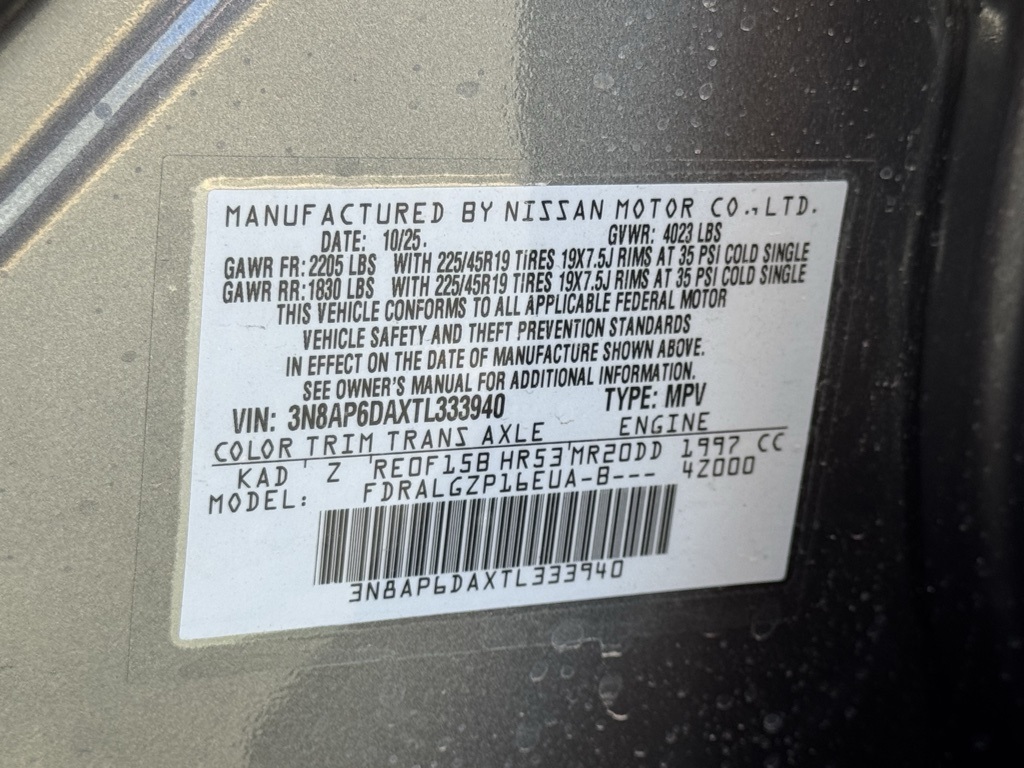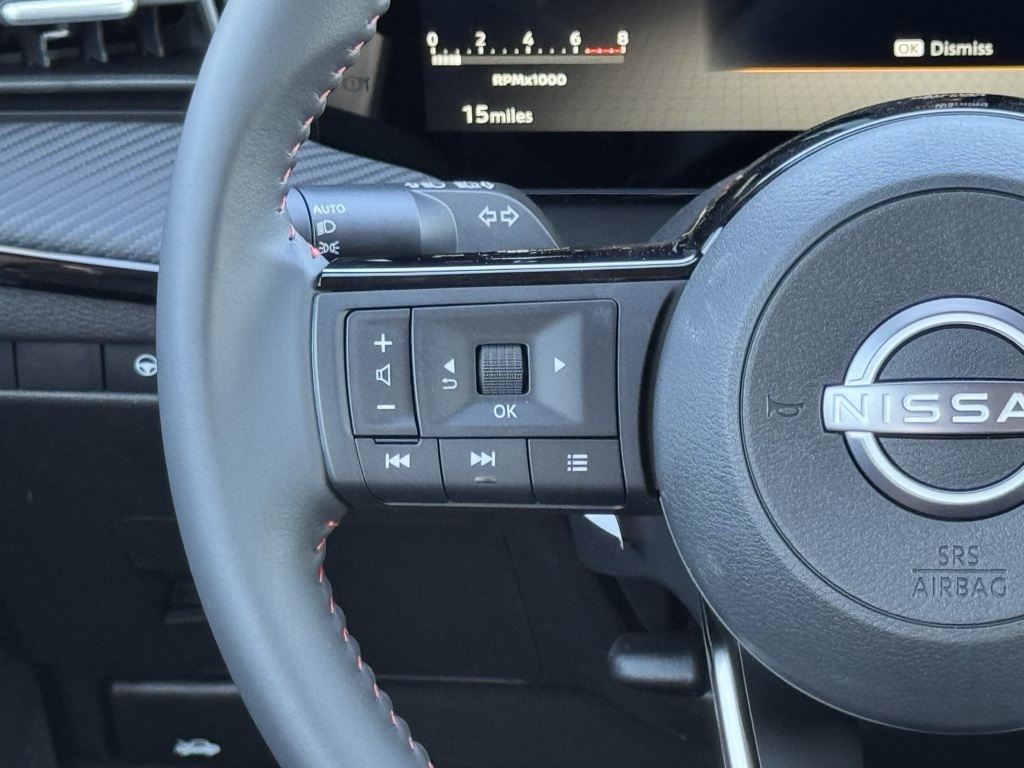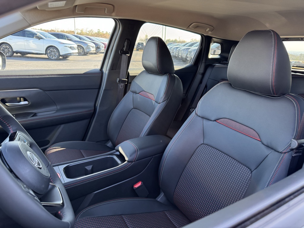 17" Alloy Wheels, 19" Alloy Wheels, 4-Wheel Disc Brakes, 6 Speakers, ABS brakes, Air Conditioning, Alloy wheels, AM/FM radio, Auto High-beam Headlights, Automatic temperature control, Brake assist, Bumpers: body-color, Carpeted Floor Mats & Underfloor Protector, Delay-off headlights, Driver door bin, Driver vanity mirror, Dual front impact airbags, Dual front side impact airbags, Electronic Stability Control, Emergency communication system: NissanConnect Services, Exterior Parking Camera Rear, Front anti-roll bar, Front Bucket Seats, Front Center Armrest, Front reading lights, Front wheel independent suspension, Fully automatic headlights, Garage door transmitter: myQ Connected Garage, Illuminated entry, Knee airbag, Leather Shift Knob, Leather steering wheel, Low tire pressure warning, NissanConnect featuring Apple CarPlay and Android Auto, Occupant sensing airbag, Outside temperature display, Overhead airbag, Overhead console, Panic alarm, Passenger door bin, Passenger vanity mirror, Power door mirrors, Power steering, Power windows, Radio data system, Radio: AM/FM/SiriusXM Audio System, Rear anti-roll bar, Rear reading lights, Rear seat center armrest, Rear side impact airbag, Rear window defroster, Rear window wiper, Remote keyless entry, Security system, Speed control, Speed-sensing steering, Splash Guards, Split folding rear seat, Spoiler, Sport Leatherette w/Cloth Insert Seat Trim, Sport steering wheel, Steering wheel mounted audio controls, Tachometer, Telescoping steering wheel, Tilt steering wheel, Traction control, Trip computer, Turn signal indicator mirrors, and Variably intermittent wipers.