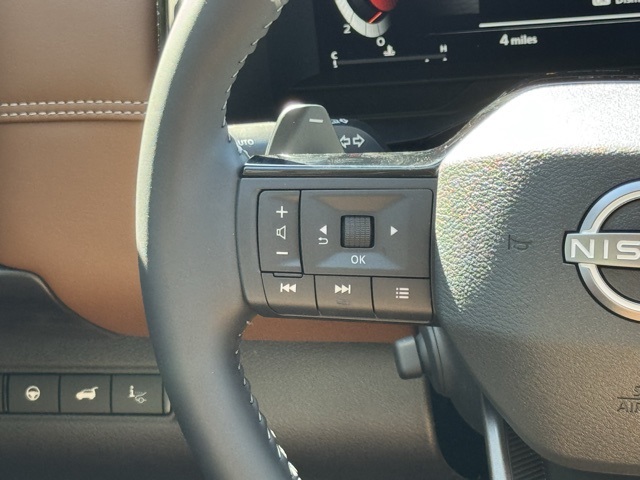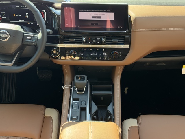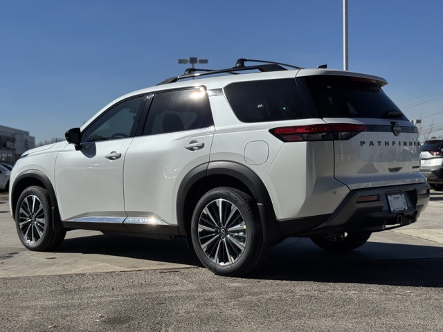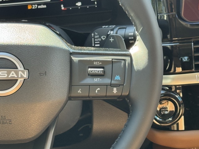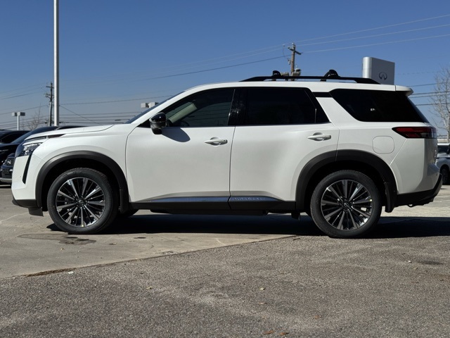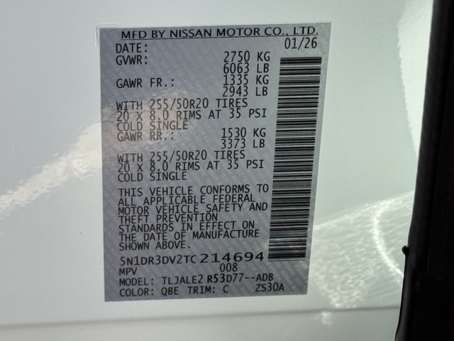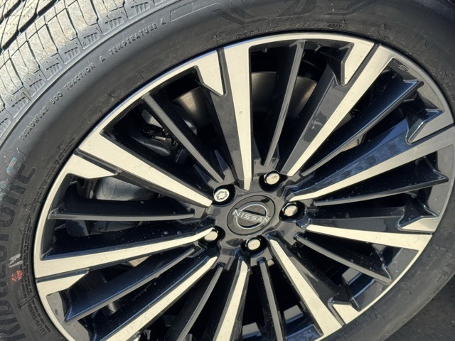 Cargo Package (Cargo Area Protector, Cargo Net, and First Aid), Platinum Captain Chairs Package (2nd-Row Captain Chairs and 2nd-Row Removable Centre Console), 13 Speakers, 3rd row seats: bench, 4-Piece Black Splash Guards, 4-Wheel Disc Brakes, ABS brakes, Air Conditioning, Alloy wheels, AM/FM radio: SiriusXM w/360L, Auto High-beam Headlights, Auto tilt-away steering wheel, Auto-dimming Rear-View mirror, Automatic temperature control, Bodyside moldings, Bose Premium Audio System, Brake assist, Bumpers: body-color, Captain's Chairs Carpeted Floor Mats, Climate Controlled Front Bucket Seats, Cross Bars, Delay-off headlights, Driver door bin, Driver vanity mirror, Dual front impact airbags, Dual front side impact airbags, Electronic Stability Control, Emergency communication system: NissanConnect Services, Four wheel independent suspension, Front anti-roll bar, Front Bucket Seats, Front Center Armrest, Front dual zone A/C, Front reading lights, Fully automatic headlights, Garage door transmitter: HomeLink, Heads-Up Display, Heated door mirrors, Heated front seats, Heated rear seats, Heated steering wheel, Illuminated entry, Knee airbag, Low tire pressure warning, Memory seat, NissanConnect featuring Apple CarPlay and Android Auto, Occupant sensing airbag, Outside temperature display, Overhead airbag, Overhead console, Panic alarm, Passenger door bin, Passenger vanity mirror, Power door mirrors, Power driver seat, Power Liftgate, Power moonroof, Power passenger seat, Power steering, Power windows, Premium Paint, Radio data system, Radio: AM/FM Audio System with NissanConnect, Rain sensing wipers, Rear air conditioning, Rear anti-roll bar, Rear reading lights, Rear seat center armrest, Rear side impact airbag, Rear window defroster, Rear window wiper, Reclining 3rd row seat, Remote keyless entry, Security system, Semi-Aniline Leather-Appointed Seating Surfaces, Speed control, Speed-sensing steering, Speed-Sensitive Wipers, Split folding rear seat, Spoiler, Steering wheel memory, Steering wheel mounted audio controls, Tachometer, Telescoping steering wheel, Tilt steering wheel, Traction control, Trip computer, Turn signal indicator mirrors, Variably intermittent wipers, Ventilated front seats, and Wheels: 20" Machined Alloy. Price includes: $2000 - Nissan Customer Cash. Exp. 03/31/2026 Price includes dealer added accessories.