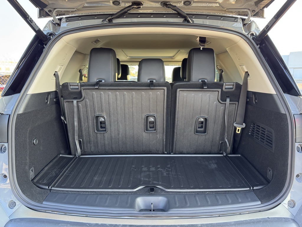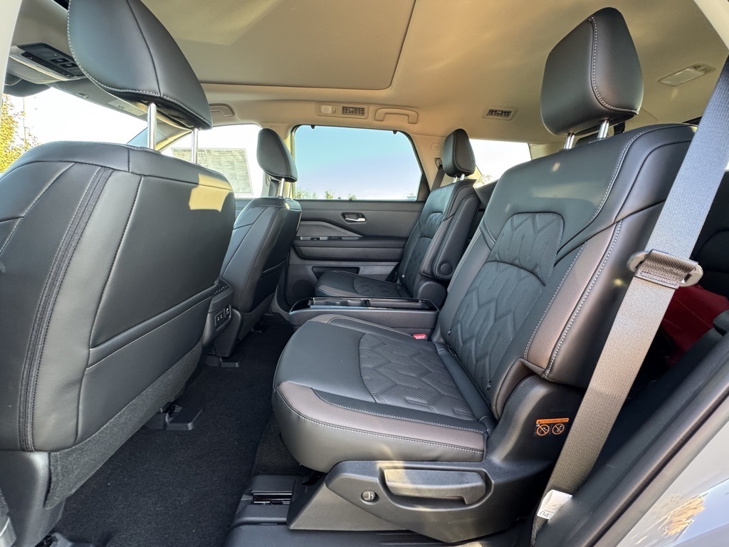 Cargo Package (Cargo Area Protector, Cargo Net, and First Aid), Platinum Captain Chairs Package (2nd-Row Captain Chairs and 2nd-Row Removable Centre Console), 13 Speakers, 3rd row seats: bench, 4-Piece Black Splash Guards, 4-Wheel Disc Brakes, ABS brakes, Air Conditioning, Alloy wheels, AM/FM radio: SiriusXM w/360L, Auto High-beam Headlights, Auto tilt-away steering wheel, Auto-dimming Rear-View mirror, Automatic temperature control, Bodyside moldings, Bose Premium Audio System, Brake assist, Bumpers: body-color, Captain's Chairs Carpeted Floor Mats, Climate Controlled Front Bucket Seats, Cross Bars, Delay-off headlights, Driver door bin, Driver vanity mirror, Dual front impact airbags, Dual front side impact airbags, Electronic Stability Control, Emergency communication system: NissanConnect Services, Four wheel independent suspension, Front anti-roll bar, Front Bucket Seats, Front Center Armrest, Front dual zone A/C, Front reading lights, Fully automatic headlights, Garage door transmitter: HomeLink, Heads-Up Display, Heated door mirrors, Heated front seats, Heated rear seats, Heated steering wheel, Illuminated entry, Knee airbag, Low tire pressure warning, Memory seat, Navigation System, NissanConnect featuring Apple CarPlay and Android Auto, Occupant sensing airbag, Outside temperature display, Overhead airbag, Overhead console, Panic alarm, Passenger door bin, Passenger vanity mirror, Power door mirrors, Power driver seat, Power Liftgate, Power moonroof, Power passenger seat, Power steering, Power windows, Premium Paint and 2-Tone Roof, Radio data system, Radio: AM/FM Audio System with NissanConnect, Rain sensing wipers, Rear air conditioning, Rear anti-roll bar, Rear reading lights, Rear seat center armrest, Rear side impact airbag, Rear window defroster, Rear window wiper, Reclining 3rd row seat, Remote keyless entry, Security system, Semi-Aniline Leather-Appointed Seating Surfaces, Speed control, Speed-sensing steering, Speed-Sensitive Wipers, Split folding rear seat, Spoiler, Steering wheel memory, Steering wheel mounted audio controls, Tachometer, Telescoping steering wheel, Tilt steering wheel, Traction control, Trip computer, Turn signal indicator mirrors, Variably intermittent wipers, Ventilated front seats, and Wheels: 20" Machined Alloy. Price includes all rebates: $2000 - Nissan Customer Cash. Exp. 03/31/2026