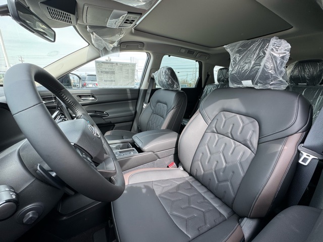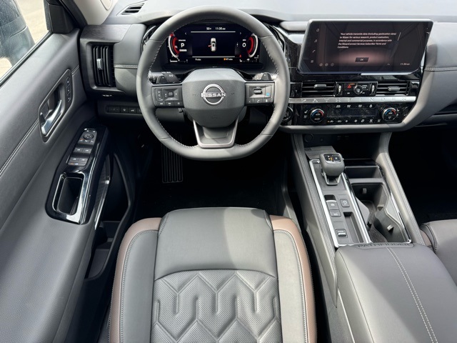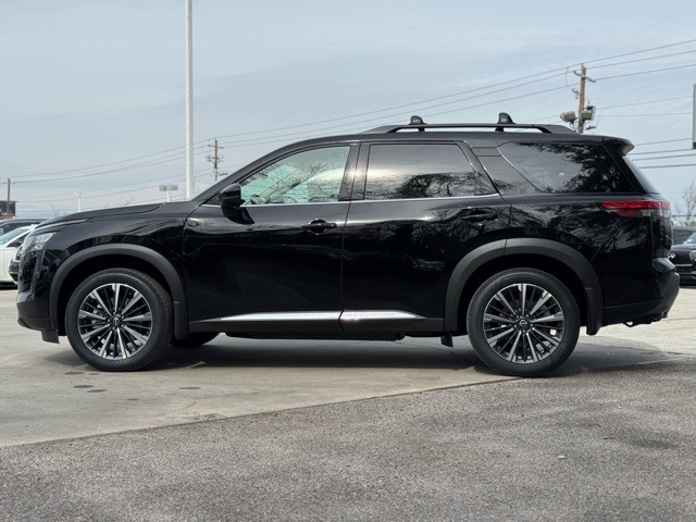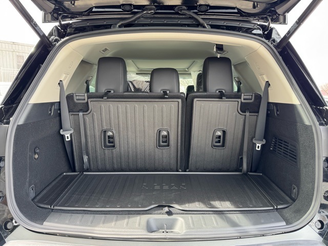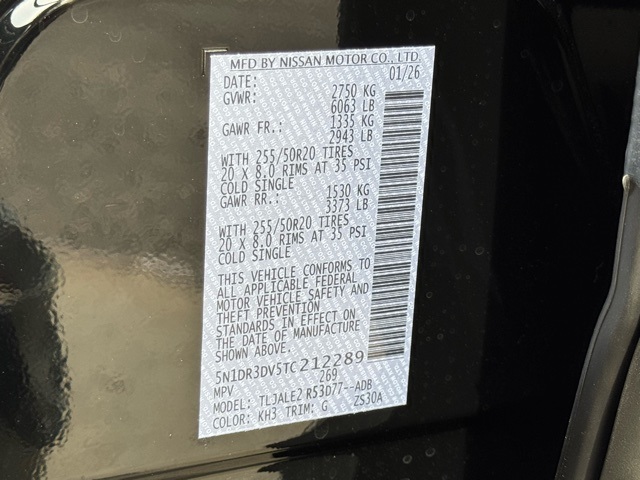 Cargo Package (Cargo Area Protector, Cargo Net, and First Aid), Platinum Captain Chairs Package (2nd-Row Captain Chairs and 2nd-Row Removable Centre Console), 13 Speakers, 3rd row seats: bench, 4-Piece Black Splash Guards, 4-Wheel Disc Brakes, ABS brakes, Air Conditioning, Alloy wheels, AM/FM radio: SiriusXM w/360L, Auto High-beam Headlights, Auto tilt-away steering wheel, Auto-dimming Rear-View mirror, Automatic temperature control, Bodyside moldings, Bose Premium Audio System, Brake assist, Bumpers: body-color, Captain's Chairs Carpeted Floor Mats, Climate Controlled Front Bucket Seats, Cross Bars, Delay-off headlights, Driver door bin, Driver vanity mirror, Dual front impact airbags, Dual front side impact airbags, Electronic Stability Control, Emergency communication system: NissanConnect Services, Four wheel independent suspension, Front anti-roll bar, Front Bucket Seats, Front Center Armrest, Front dual zone A/C, Front reading lights, Fully automatic headlights, Garage door transmitter: HomeLink, Heads-Up Display, Heated door mirrors, Heated front seats, Heated rear seats, Heated steering wheel, Illuminated entry, Knee airbag, Low tire pressure warning, Memory seat, NissanConnect featuring Apple CarPlay and Android Auto, Occupant sensing airbag, Outside temperature display, Overhead airbag, Overhead console, Panic alarm, Passenger door bin, Passenger vanity mirror, Power door mirrors, Power driver seat, Power Liftgate, Power moonroof, Power passenger seat, Power steering, Power windows, Radio data system, Radio: AM/FM Audio System with NissanConnect, Rain sensing wipers, Rear air conditioning, Rear anti-roll bar, Rear reading lights, Rear seat center armrest, Rear side impact airbag, Rear window defroster, Rear window wiper, Reclining 3rd row seat, Remote keyless entry, Security system, Semi-Aniline Leather-Appointed Seating Surfaces, Speed control, Speed-sensing steering, Speed-Sensitive Wipers, Split folding rear seat, Spoiler, Steering wheel memory, Steering wheel mounted audio controls, Tachometer, Telescoping steering wheel, Tilt steering wheel, Traction control, Trip computer, Turn signal indicator mirrors, Variably intermittent wipers, Ventilated front seats, and Wheels: 20" Machined Alloy. Price includes: $2000 - Nissan Customer Cash. Exp. 03/31/2026 Price includes dealer added accessories.