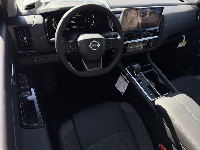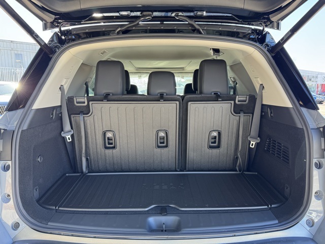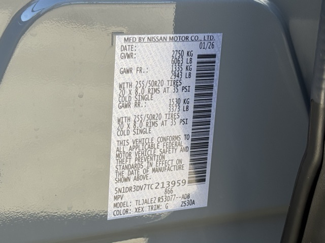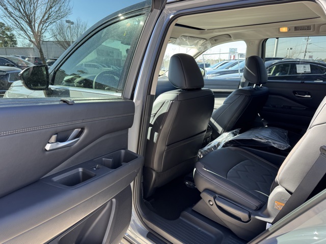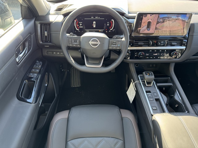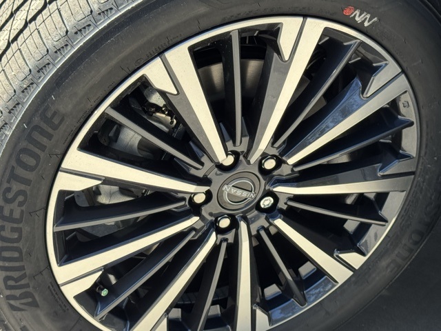 Cargo Package (Cargo Area Protector, Cargo Net, and First Aid), Platinum Captain Chairs Package (2nd-Row Captain Chairs and 2nd-Row Removable Centre Console), 13 Speakers, 3rd row seats: bench, 4-Piece Black Splash Guards, 4-Wheel Disc Brakes, ABS brakes, Air Conditioning, Alloy wheels, AM/FM radio: SiriusXM w/360L, Auto High-beam Headlights, Auto tilt-away steering wheel, Auto-dimming Rear-View mirror, Automatic temperature control, Bodyside moldings, Bose Premium Audio System, Brake assist, Bumpers: body-color, Captain's Chairs Carpeted Floor Mats, Climate Controlled Front Bucket Seats, Cross Bars, Delay-off headlights, Driver door bin, Driver vanity mirror, Dual front impact airbags, Dual front side impact airbags, Electronic Stability Control, Emergency communication system: NissanConnect Services, Four wheel independent suspension, Front anti-roll bar, Front Bucket Seats, Front Center Armrest, Front dual zone A/C, Front reading lights, Fully automatic headlights, Garage door transmitter: HomeLink, Heads-Up Display, Heated door mirrors, Heated front seats, Heated rear seats, Heated steering wheel, Illuminated entry, Knee airbag, Low tire pressure warning, Memory seat, NissanConnect featuring Apple CarPlay and Android Auto, Occupant sensing airbag, Outside temperature display, Overhead airbag, Overhead console, Panic alarm, Passenger door bin, Passenger vanity mirror, Power door mirrors, Power driver seat, Power Liftgate, Power moonroof, Power passenger seat, Power steering, Power windows, Premium Paint and 2-Tone Roof, Radio data system, Radio: AM/FM Audio System with NissanConnect, Rain sensing wipers, Rear air conditioning, Rear anti-roll bar, Rear reading lights, Rear seat center armrest, Rear side impact airbag, Rear window defroster, Rear window wiper, Reclining 3rd row seat, Remote keyless entry, Security system, Semi-Aniline Leather-Appointed Seating Surfaces, Speed control, Speed-sensing steering, Speed-Sensitive Wipers, Split folding rear seat, Spoiler, Steering wheel memory, Steering wheel mounted audio controls, Tachometer, Telescoping steering wheel, Tilt steering wheel, Traction control, Trip computer, Turn signal indicator mirrors, Variably intermittent wipers, Ventilated front seats, and Wheels: 20" Machined Alloy. Price includes: $2000 - Nissan Customer Cash. Exp. 03/31/2026 Price includes dealer added accessories.