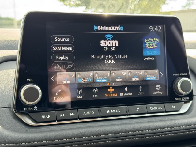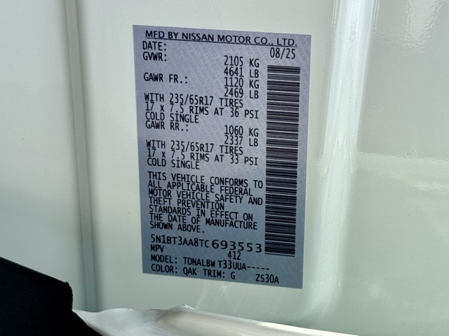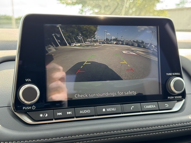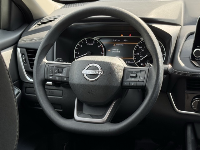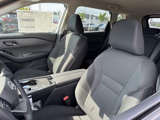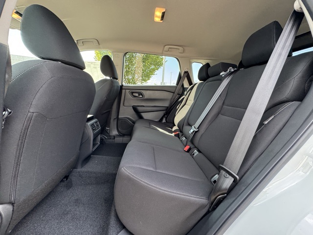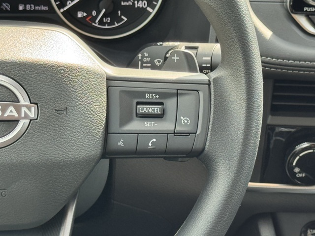 17" Alloy Wheels, 4 Speakers, 4-Wheel Disc Brakes, ABS brakes, Air Conditioning, Alloy wheels, AM/FM radio: Sirius, Apple CarPlay/Android Auto, Auto High-beam Headlights, Black Splash Guards (Set of 4) (B92), Blind Spot Warning, Brake assist, Bumpers: body-color, Cloth Seat Trim, Delay-off headlights, Driver door bin, Driver vanity mirror, Dual front impact airbags, Dual front side impact airbags, Electronic Stability Control, First Aid Kit, Floor Mats w/1-Piece Cargo Area Protector, Four wheel independent suspension, Front anti-roll bar, Front Bucket Seats, Front Center Armrest, Front reading lights, Fully automatic headlights, Illuminated entry, Knee airbag, Low tire pressure warning, Occupant sensing airbag, Outside temperature display, Overhead airbag, Overhead console, Panic alarm, Passenger door bin, Passenger vanity mirror, Power door mirrors, Power steering, Power windows, Radio data system, Radio: AM/FM NissanConnect, Rear anti-roll bar, Rear seat center armrest, Rear side impact airbag, Rear window defroster, Rear window wiper, Remote keyless entry, Speed control, Speed-sensing steering, Speed-Sensitive Wipers, Split folding rear seat, Spoiler, Steering wheel mounted audio controls, Tachometer, Telescoping steering wheel, Tilt steering wheel, Traction control, Trip computer, and Variably intermittent wipers.