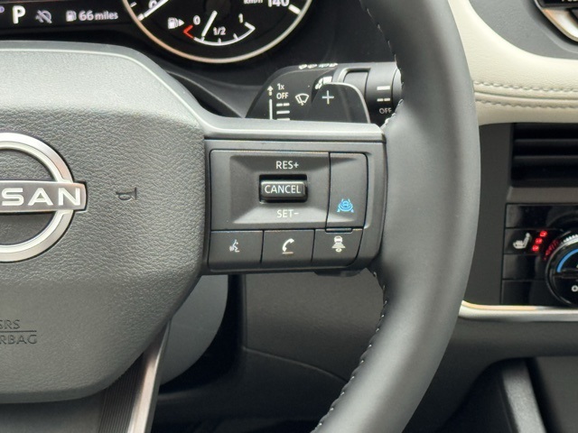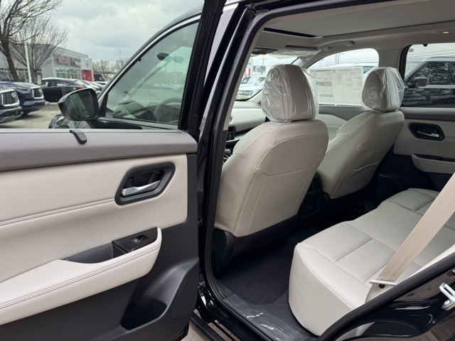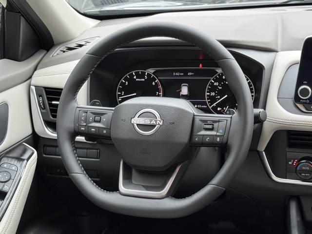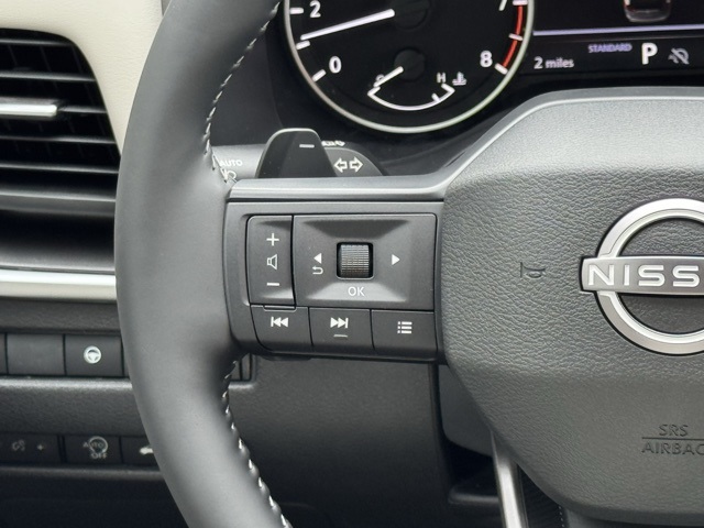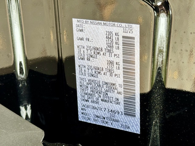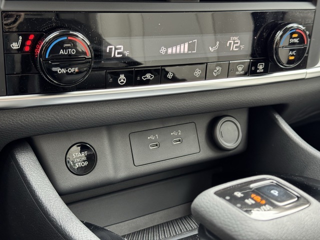 Cold Weather Package (Heated Front Seats and Heated Steering Wheel), SV Premium Package (Leatherette Door Trim Inserts w/Stitch, Panoramic Moonroof, Prima-Tex Leatherette Seat Trim, Rear Door Sunshades, Rear Personal Lights, and Silver Painted Roof Rails), 4-Wheel Disc Brakes, 6 Speakers, ABS brakes, Air Conditioning, Alloy wheels, AM/FM radio: Sirius, Apple CarPlay/Android Auto, Auto High-beam Headlights, Automatic temperature control, Black Splash Guards (Set of 4) (B92), Brake assist, Bumpers: body-color, Chrome Rear Bumper Protector, Cloth Seat Trim w/Patterned Inserts, Delay-off headlights, Driver door bin, Driver vanity mirror, Dual front impact airbags, Dual front side impact airbags, Electronic Stability Control, Emergency communication system: NissanConnect Services, First Aid Kit, Floor Mats w/1-Piece Cargo Area Protector, Four wheel independent suspension, Front anti-roll bar, Front Bucket Seats, Front Center Armrest, Front dual zone A/C, Front reading lights, Fully automatic headlights, Heated door mirrors, Illuminated entry, Knee airbag, Low tire pressure warning, Occupant sensing airbag, Outside temperature display, Overhead airbag, Overhead console, Panic alarm, Passenger door bin, Passenger vanity mirror, Power door mirrors, Power driver seat, Power Liftgate, Power steering, Power windows, Radio data system, Radio: AM/FM NissanConnect, Rear anti-roll bar, Rear seat center armrest, Rear side impact airbag, Rear window defroster, Rear window wiper, Remote keyless entry, Speed control, Speed-sensing steering, Speed-Sensitive Wipers, Split folding rear seat, Spoiler, Steering wheel mounted audio controls, Tachometer, Telescoping steering wheel, Tilt steering wheel, Traction control, Trip computer, Variably intermittent wipers, and Wheels: 18" Dark Painted Machine Finished Alloy.