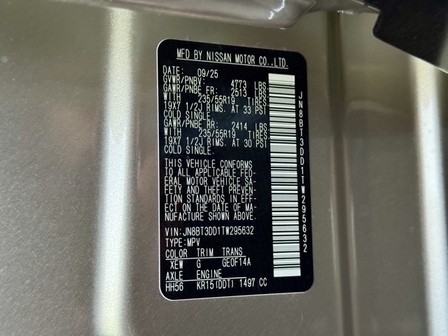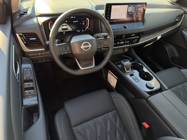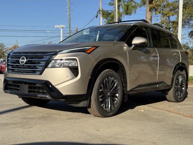 Platinum Premium Package (Head-Up Display, Heated Rear Seats, Motion-Activated Power Liftgate, and Tri-Zone Automatic Temperature Control), 10 Speakers, 4-Wheel Disc Brakes, ABS brakes, Air Conditioning, Alloy wheels, AM/FM radio: SiriusXM w/360L, Auto High-beam Headlights, Auto-dimming Rear-View mirror, Automatic temperature control, Black Splash Guards (set of 4), Bose Premium Audio System, Brake assist, Bumpers: body-color, Chrome Rear Bumper Protector, Delay-off headlights, Driver door bin, Driver vanity mirror, Dual front impact airbags, Dual front side impact airbags, Electronic Stability Control, Emergency communication system: NissanConnect Services, First Aid Kit, Floor Mats with 2-Piece Cargo Area Protector, Four wheel independent suspension, Front anti-roll bar, Front Bucket Seats, Front Center Armrest, Front dual zone A/C, Front reading lights, Fully automatic headlights, Garage door transmitter: myQ Connected Garage, Heads-Up Display, Heated door mirrors, Heated Front Bucket Seats, Heated front seats, Heated steering wheel, Illuminated entry, Knee airbag, Low tire pressure warning, Memory seat, Navigation system: Google Maps, Occupant sensing airbag, Outside temperature display, Overhead airbag, Overhead console, Panic alarm, Passenger door bin, Passenger vanity mirror, Power door mirrors, Power driver seat, Power Liftgate, Power moonroof, Power passenger seat, Power steering, Power windows, Quilted Semi-Aniline Leather-Appointed Seat Trim, Radio data system, Radio: AM/FM NissanConnect with Navigation, Rear anti-roll bar, Rear reading lights, Rear seat center armrest, Rear side impact airbag, Rear window defroster, Rear window wiper, Remote keyless entry, Roof Rail Cross Bars, Security system, Speed control, Speed-sensing steering, Speed-Sensitive Wipers, Split folding rear seat, Spoiler, Steering wheel mounted audio controls, Tachometer, Telescoping steering wheel, Tilt steering wheel, Traction control, Trip computer, Turn signal indicator mirrors, Variably intermittent wipers, Wheels: 19" Unique Dark Painted Aluminum Alloy, and Wireless Apple CarPlay/Wireless Android Auto.