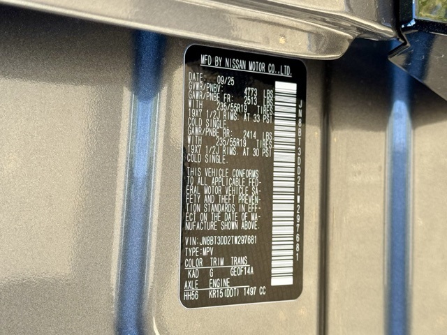 Platinum Premium Package (Head-Up Display, Heated Rear Seats, Motion-Activated Power Liftgate, and Tri-Zone Automatic Temperature Control), 10 Speakers, 4-Wheel Disc Brakes, ABS brakes, Air Conditioning, Alloy wheels, AM/FM radio: SiriusXM w/360L, Auto High-beam Headlights, Auto-dimming Rear-View mirror, Automatic temperature control, Black Splash Guards (set of 4), Bose Premium Audio System, Brake assist, Bumpers: body-color, Chrome Rear Bumper Protector, Delay-off headlights, Driver door bin, Driver vanity mirror, Dual front impact airbags, Dual front side impact airbags, Electronic Stability Control, Emergency communication system: NissanConnect Services, First Aid Kit, Floor Mats with 2-Piece Cargo Area Protector, Four wheel independent suspension, Front anti-roll bar, Front Bucket Seats, Front Center Armrest, Front dual zone A/C, Front reading lights, Fully automatic headlights, Garage door transmitter: myQ Connected Garage, Heads-Up Display, Heated door mirrors, Heated Front Bucket Seats, Heated front seats, Heated steering wheel, Illuminated entry, Knee airbag, Low tire pressure warning, Memory seat, Navigation system: Google Maps, Occupant sensing airbag, Outside temperature display, Overhead airbag, Overhead console, Panic alarm, Passenger door bin, Passenger vanity mirror, Power door mirrors, Power driver seat, Power Liftgate, Power moonroof, Power passenger seat, Power steering, Power windows, Quilted Semi-Aniline Leather-Appointed Seat Trim, Radio data system, Radio: AM/FM NissanConnect with Navigation, Rear anti-roll bar, Rear reading lights, Rear seat center armrest, Rear side impact airbag, Rear window defroster, Rear window wiper, Remote keyless entry, Roof Rail Cross Bars, Security system, Speed control, Speed-sensing steering, Speed-Sensitive Wipers, Split folding rear seat, Spoiler, Steering wheel mounted audio controls, Tachometer, Telescoping steering wheel, Tilt steering wheel, Traction control, Trip computer, Turn signal indicator mirrors, Variably intermittent wipers, Wheels: 19" Unique Dark Painted Aluminum Alloy, and Wireless Apple CarPlay/Wireless Android Auto.