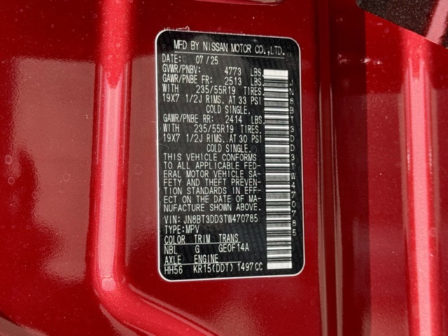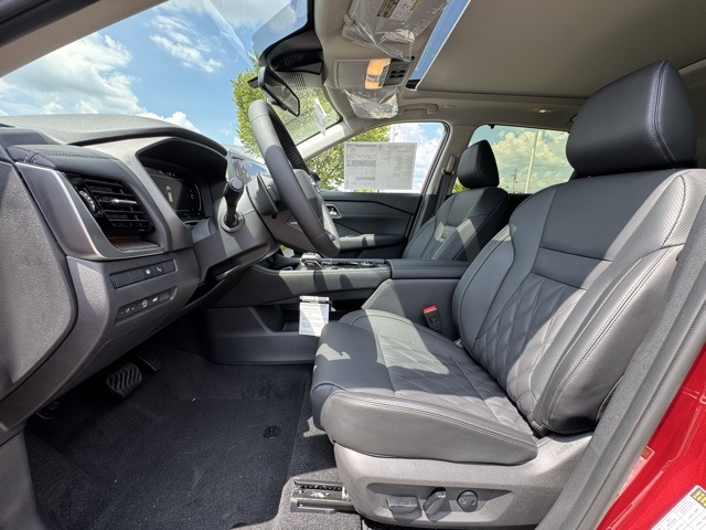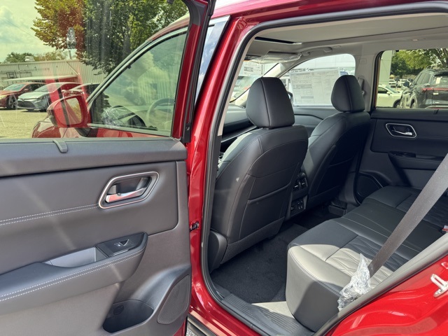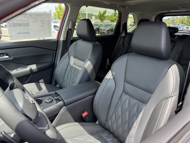 Platinum Premium Package (Head-Up Display, Heated Rear Seats, Motion-Activated Power Liftgate, and Tri-Zone Automatic Temperature Control), 10 Speakers, 4-Wheel Disc Brakes, ABS brakes, Air Conditioning, Alloy wheels, AM/FM radio: SiriusXM w/360L, Auto High-beam Headlights, Auto-dimming Rear-View mirror, Automatic temperature control, Black Splash Guards (set of 4), Bose Premium Audio System, Brake assist, Bumpers: body-color, Chrome Rear Bumper Protector, Delay-off headlights, Driver door bin, Driver vanity mirror, Dual front impact airbags, Dual front side impact airbags, Electronic Stability Control, Emergency communication system: NissanConnect Services, First Aid Kit, Floor Mats with 2-Piece Cargo Area Protector, Four wheel independent suspension, Front anti-roll bar, Front Bucket Seats, Front Center Armrest, Front dual zone A/C, Front reading lights, Fully automatic headlights, Garage door transmitter: myQ Connected Garage, Heads-Up Display, Heated door mirrors, Heated Front Bucket Seats, Heated front seats, Heated steering wheel, Illuminated entry, Knee airbag, Low tire pressure warning, Memory seat, Navigation system: Google Maps, Occupant sensing airbag, Outside temperature display, Overhead airbag, Overhead console, Panic alarm, Passenger door bin, Passenger vanity mirror, Power door mirrors, Power driver seat, Power Liftgate, Power moonroof, Power passenger seat, Power steering, Power windows, Premium Paint, Quilted Semi-Aniline Leather-Appointed Seat Trim, Radio data system, Radio: AM/FM NissanConnect with Navigation, Rear anti-roll bar, Rear reading lights, Rear seat center armrest, Rear side impact airbag, Rear window defroster, Rear window wiper, Remote keyless entry, Roof Rail Cross Bars, Security system, Speed control, Speed-sensing steering, Speed-Sensitive Wipers, Split folding rear seat, Spoiler, Steering wheel mounted audio controls, Tachometer, Telescoping steering wheel, Tilt steering wheel, Traction control, Trip computer, Turn signal indicator mirrors, Variably intermittent wipers, Wheels: 19" Unique Dark Painted Aluminum Alloy, and Wireless Apple CarPlay/Wireless Android Auto.
