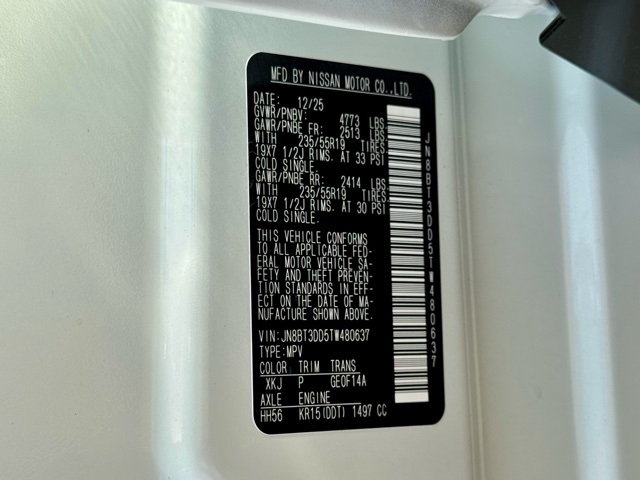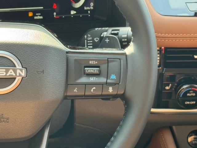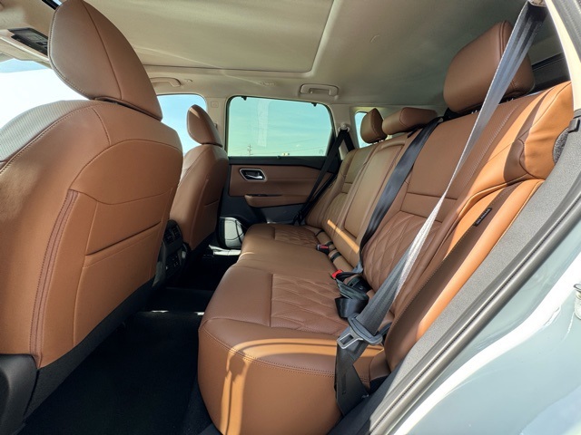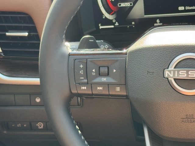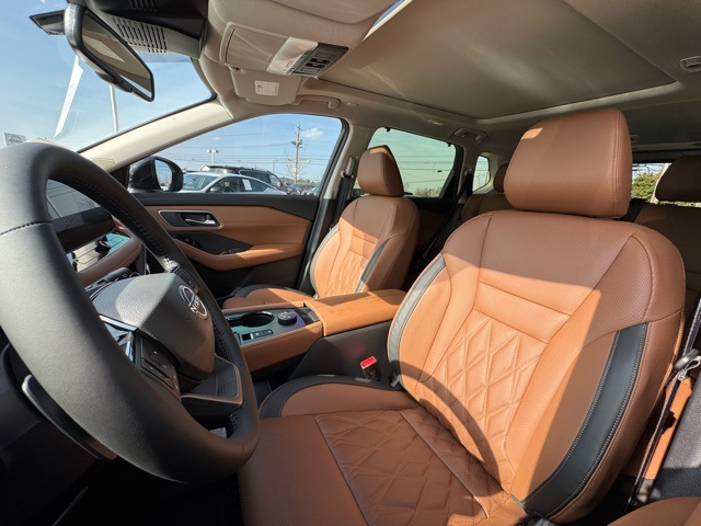 Platinum Premium Package (Head-Up Display, Heated Rear Seats, Motion-Activated Power Liftgate, and Tri-Zone Automatic Temperature Control), 10 Speakers, 4-Wheel Disc Brakes, ABS brakes, Air Conditioning, Alloy wheels, AM/FM radio: SiriusXM w/360L, Auto High-beam Headlights, Auto-dimming Rear-View mirror, Automatic temperature control, Black Splash Guards (set of 4), Bose Premium Audio System, Brake assist, Bumpers: body-color, Chrome Rear Bumper Protector, Delay-off headlights, Driver door bin, Driver vanity mirror, Dual front impact airbags, Dual front side impact airbags, Electronic Stability Control, Emergency communication system: NissanConnect Services, First Aid Kit, Floor Mats with 2-Piece Cargo Area Protector, Four wheel independent suspension, Front anti-roll bar, Front Bucket Seats, Front Center Armrest, Front dual zone A/C, Front reading lights, Fully automatic headlights, Garage door transmitter: myQ Connected Garage, Heads-Up Display, Heated door mirrors, Heated Front Bucket Seats, Heated front seats, Heated steering wheel, Illuminated entry, Knee airbag, Low tire pressure warning, Memory seat, Navigation system: Google Maps, Occupant sensing airbag, Outside temperature display, Overhead airbag, Overhead console, Panic alarm, Passenger door bin, Passenger vanity mirror, Power door mirrors, Power driver seat, Power Liftgate, Power moonroof, Power passenger seat, Power steering, Power windows, Premium Paint with Two-Tone, Quilted Semi-Aniline Leather-Appointed Seat Trim, Radio data system, Radio: AM/FM NissanConnect with Navigation, Rear anti-roll bar, Rear reading lights, Rear seat center armrest, Rear side impact airbag, Rear window defroster, Rear window wiper, Remote keyless entry, Roof Rail Cross Bars, Security system, Speed control, Speed-sensing steering, Speed-Sensitive Wipers, Split folding rear seat, Spoiler, Steering wheel mounted audio controls, Tachometer, Telescoping steering wheel, Tilt steering wheel, Traction control, Trip computer, Turn signal indicator mirrors, USB Charging Cable Set, Variably intermittent wipers, Wheels: 19" Unique Dark Painted Aluminum Alloy, and Wireless Apple CarPlay/Wireless Android Auto. Price includes: $3500 - Nissan Customer Cash. Exp. 03/31/2026 Price includes dealer added accessories.