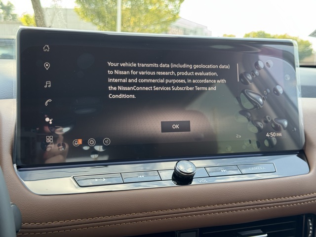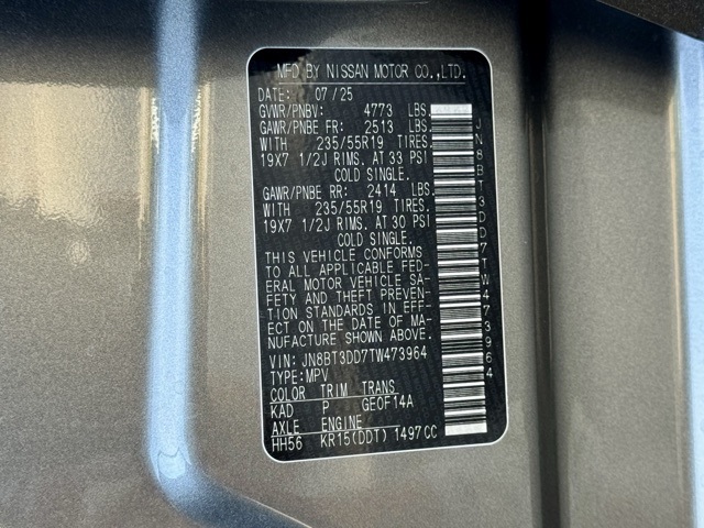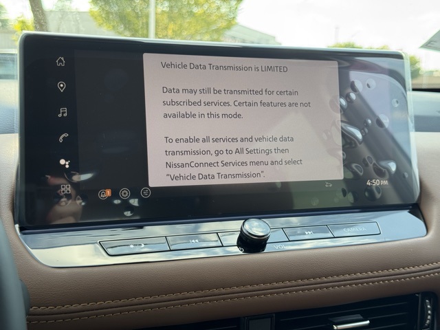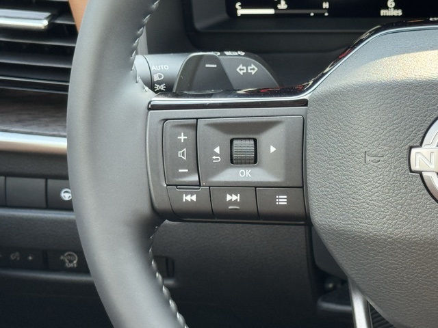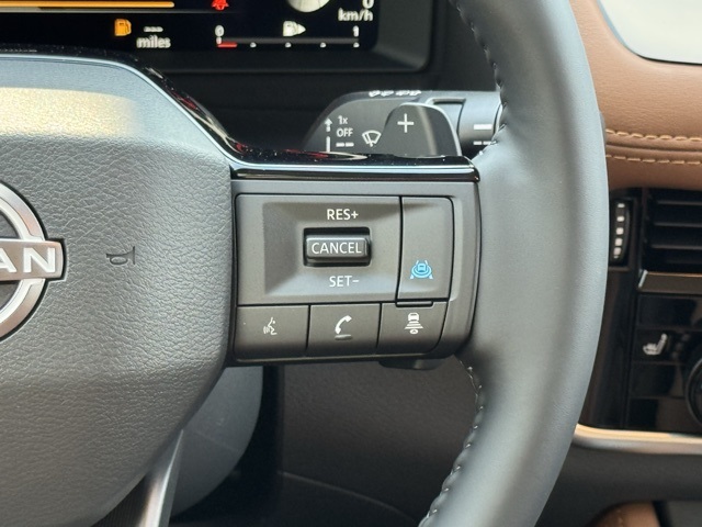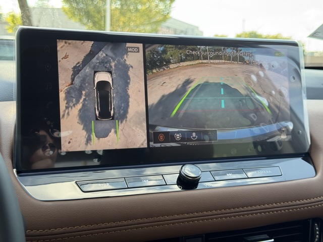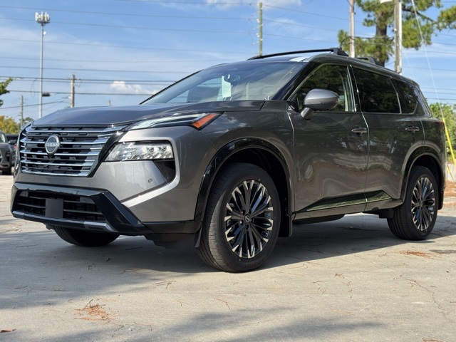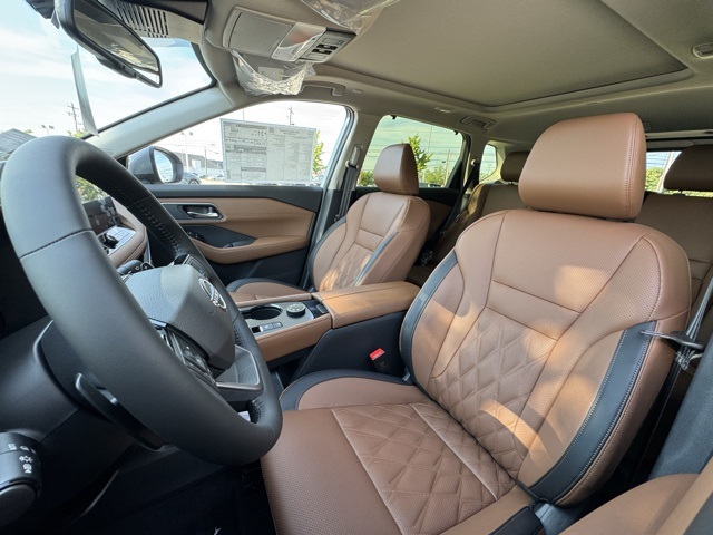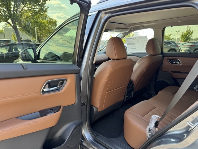 Platinum Premium Package (Head-Up Display, Heated Rear Seats, Motion-Activated Power Liftgate, and Tri-Zone Automatic Temperature Control), 10 Speakers, 4-Wheel Disc Brakes, ABS brakes, Air Conditioning, Alloy wheels, AM/FM radio: SiriusXM w/360L, Auto High-beam Headlights, Auto-dimming Rear-View mirror, Automatic temperature control, Black Splash Guards (set of 4), Bose Premium Audio System, Brake assist, Bumpers: body-color, Chrome Rear Bumper Protector, Delay-off headlights, Driver door bin, Driver vanity mirror, Dual front impact airbags, Dual front side impact airbags, Electronic Stability Control, Emergency communication system: NissanConnect Services, First Aid Kit, Floor Mats with 2-Piece Cargo Area Protector, Four wheel independent suspension, Front anti-roll bar, Front Bucket Seats, Front Center Armrest, Front dual zone A/C, Front reading lights, Fully automatic headlights, Garage door transmitter: myQ Connected Garage, Heads-Up Display, Heated door mirrors, Heated Front Bucket Seats, Heated front seats, Heated steering wheel, Illuminated entry, Knee airbag, Low tire pressure warning, Memory seat, Navigation system: Google Maps, Occupant sensing airbag, Outside temperature display, Overhead airbag, Overhead console, Panic alarm, Passenger door bin, Passenger vanity mirror, Power door mirrors, Power driver seat, Power Liftgate, Power moonroof, Power passenger seat, Power steering, Power windows, Quilted Semi-Aniline Leather-Appointed Seat Trim, Radio data system, Radio: AM/FM NissanConnect with Navigation, Rear anti-roll bar, Rear reading lights, Rear seat center armrest, Rear side impact airbag, Rear window defroster, Rear window wiper, Remote keyless entry, Roof Rail Cross Bars, Security system, Speed control, Speed-sensing steering, Speed-Sensitive Wipers, Split folding rear seat, Spoiler, Steering wheel mounted audio controls, Tachometer, Telescoping steering wheel, Tilt steering wheel, Traction control, Trip computer, Turn signal indicator mirrors, Variably intermittent wipers, Wheels: 19" Unique Dark Painted Aluminum Alloy, and Wireless Apple CarPlay/Wireless Android Auto.