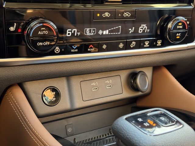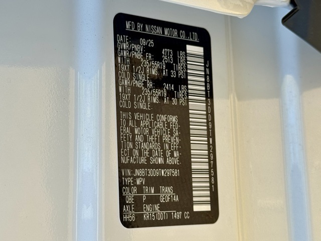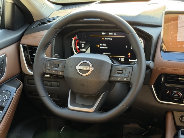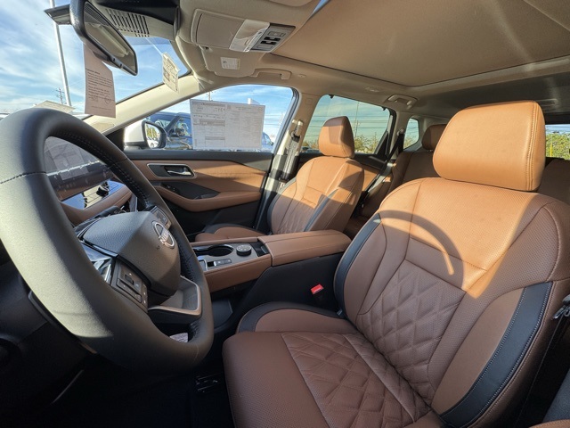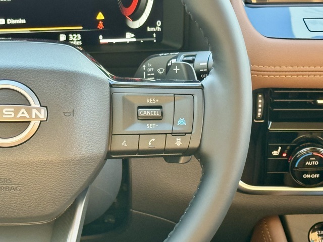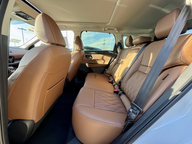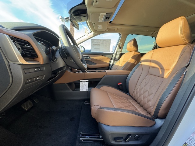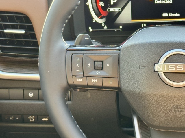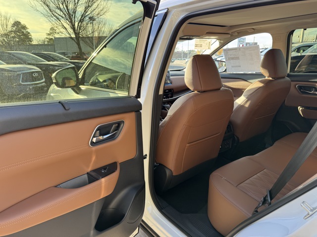 Platinum Premium Package (Head-Up Display, Heated Rear Seats, Motion-Activated Power Liftgate, and Tri-Zone Automatic Temperature Control), 10 Speakers, 4-Wheel Disc Brakes, ABS brakes, Air Conditioning, Alloy wheels, AM/FM radio: SiriusXM w/360L, Auto High-beam Headlights, Auto-dimming Rear-View mirror, Automatic temperature control, Black Splash Guards (set of 4), Bose Premium Audio System, Brake assist, Bumpers: body-color, Chrome Rear Bumper Protector, Delay-off headlights, Driver door bin, Driver vanity mirror, Dual front impact airbags, Dual front side impact airbags, Electronic Stability Control, Emergency communication system: NissanConnect Services, First Aid Kit, Floor Mats with 2-Piece Cargo Area Protector, Four wheel independent suspension, Front anti-roll bar, Front Bucket Seats, Front Center Armrest, Front dual zone A/C, Front reading lights, Fully automatic headlights, Garage door transmitter: myQ Connected Garage, Heads-Up Display, Heated door mirrors, Heated Front Bucket Seats, Heated front seats, Heated steering wheel, Illuminated entry, Knee airbag, Low tire pressure warning, Memory seat, Navigation system: Google Maps, Occupant sensing airbag, Outside temperature display, Overhead airbag, Overhead console, Panic alarm, Passenger door bin, Passenger vanity mirror, Power door mirrors, Power driver seat, Power Liftgate, Power moonroof, Power passenger seat, Power steering, Power windows, Premium Paint, Quilted Semi-Aniline Leather-Appointed Seat Trim, Radio data system, Radio: AM/FM NissanConnect with Navigation, Rear anti-roll bar, Rear reading lights, Rear seat center armrest, Rear side impact airbag, Rear window defroster, Rear window wiper, Remote keyless entry, Roof Rail Cross Bars, Security system, Speed control, Speed-sensing steering, Speed-Sensitive Wipers, Split folding rear seat, Spoiler, Steering wheel mounted audio controls, Tachometer, Telescoping steering wheel, Tilt steering wheel, Traction control, Trip computer, Turn signal indicator mirrors, Variably intermittent wipers, Wheels: 19" Unique Dark Painted Aluminum Alloy, and Wireless Apple CarPlay/Wireless Android Auto.