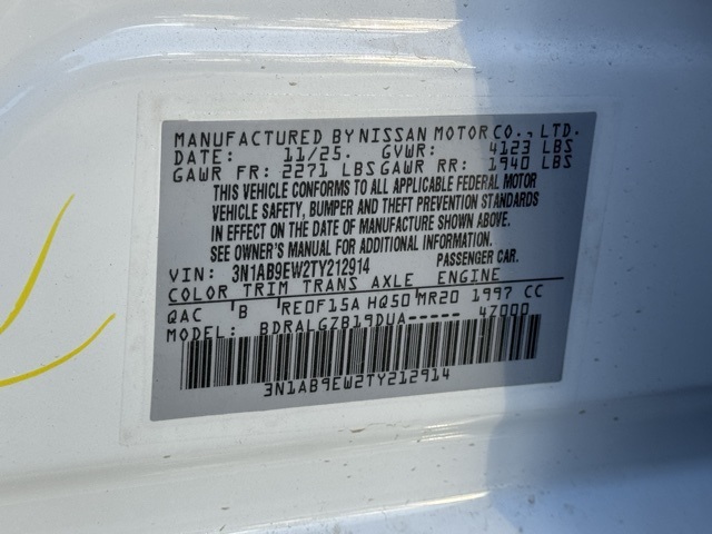 Floor Mat Package, 17" Machined Alloy Wheels, 4-Wheel Disc Brakes, 8 Speakers, ABS brakes, Air Conditioning, Alloy wheels, AM/FM radio: Sirius, Auto High-beam Headlights, Auto-dimming Rear-View mirror, Automatic temperature control, Body Colored Splash Guards (4-Piece), Brake assist, Bumpers: body-color, Delay-off headlights, Driver door bin, Driver vanity mirror, Dual front impact airbags, Dual front side impact airbags, Electronic Stability Control, Emergency communication system: NissanConnect(R) Services powered by SiriusXM(R), Four wheel independent suspension, Front anti-roll bar, Front Bucket Seats, Front Center Armrest, Front dual zone A/C, Front reading lights, Fully automatic headlights, Garage door transmitter, Heated door mirrors, Heated Front Bucket Seats, Heated front seats, Heated steering wheel, Illuminated entry, Knee airbag, Leather steering wheel, Low tire pressure warning, Occupant sensing airbag, Outside temperature display, Overhead airbag, Overhead console, Panic alarm, Passenger door bin, Passenger vanity mirror, Power Delivery Charging Ports, Power door mirrors, Power driver seat, Power moonroof, Power steering, Power windows, Premium Paint, Quilted TailorFit Synthetic Leather Seat Trim, Radio data system, Radio: AM/FM with RDS/MP3, Rear anti-roll bar, Rear seat center armrest, Rear side impact airbag, Rear window defroster, Remote keyless entry, Security system, Speed control, Speed-sensing steering, Split folding rear seat, Steering wheel mounted audio controls, Tachometer, Telescoping steering wheel, Tilt steering wheel, Traction control, Trip computer, Turn signal indicator mirrors, Variably intermittent wipers, and Wireless Apple CarPlay/Wireless Android Auto. Price includes: $500 - Nissan MY26 Sentra Customer Cash (All Markets) - February. Exp. 03/02/2026 Price includes dealer added accessories.