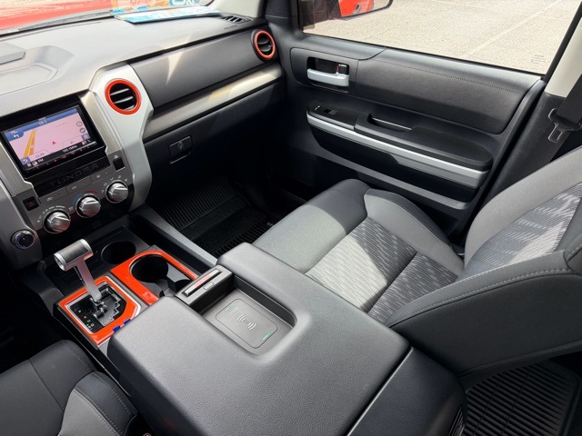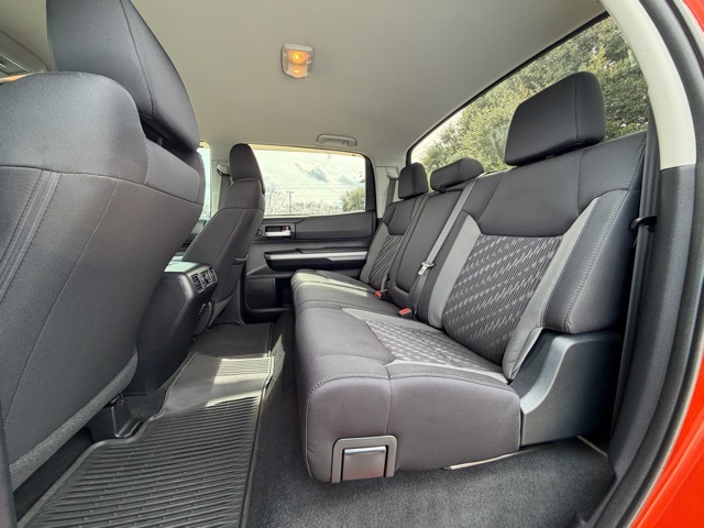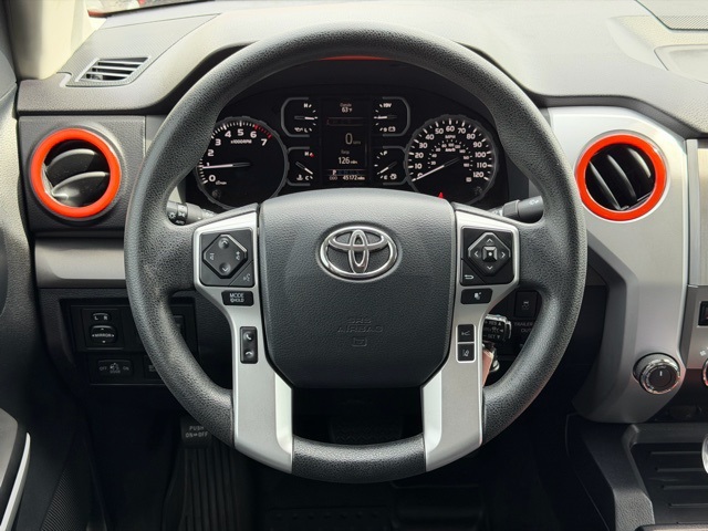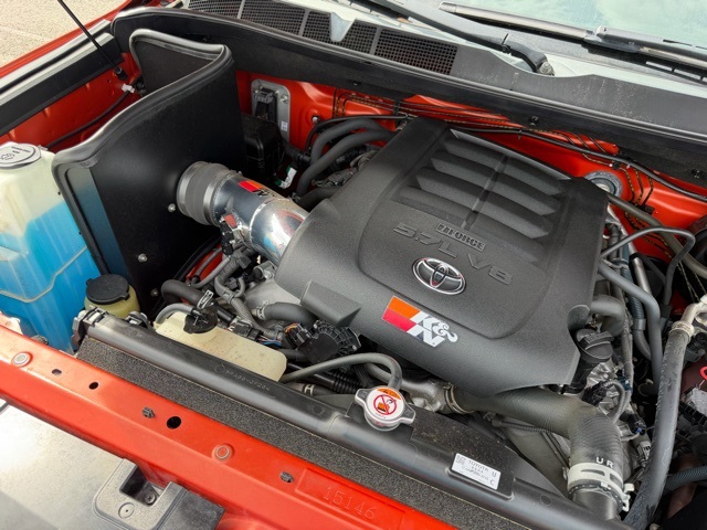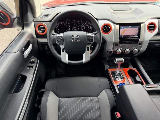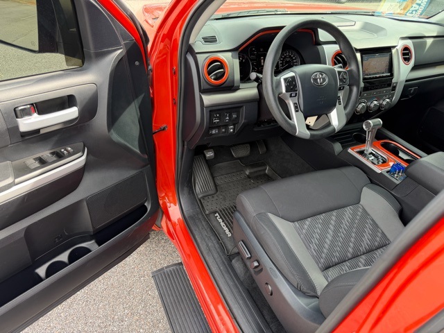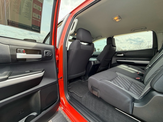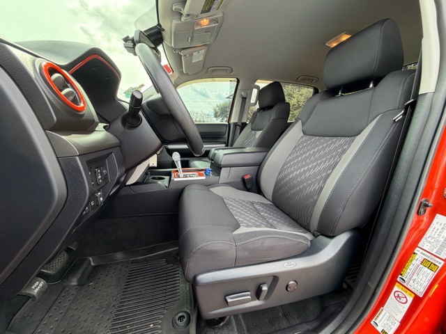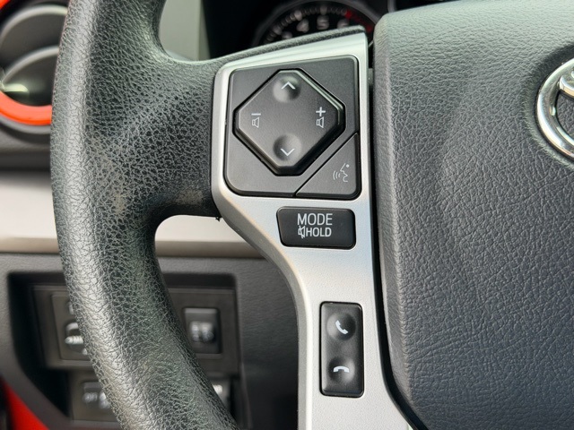 XP Rockstar, 18" x 8J Styled Steel Wheels, 3-Passenger Front Bench Seat, 38 Gallon Fuel Tank Capacity, 4-Wheel Disc Brakes, 6 Speakers, ABS brakes, Active Cruise Control, Air Conditioning, AM/FM radio: SiriusXM, Anti-Theft Immobilizer w/Alarm, Auto High-beam Headlights, Auto-Dimming Rear-View Mirror, Black Tundra Tailgate Insert Badge, CD player, Compass, Delay-off headlights, Driver door bin, Driver vanity mirror, Dual front impact airbags, Dual front side impact airbags, Electronic Stability Control, Exterior Parking Camera Rear, Fabric Seat Trim, Front anti-roll bar, Front Bucket Seats, Front Center Armrest w/Storage, Front fog lights, Front reading lights, Front wheel independent suspension, Fully automatic headlights, Heated door mirrors, HomeLink Universal Transceiver, Illuminated entry, Knee airbag, Low tire pressure warning, Occupant sensing airbag, Outside temperature display, Overhead airbag, Overhead console, Panic alarm, Passenger door bin, Passenger vanity mirror, Power door mirrors, Power steering, Power windows, Radio: Entune Audio Display AM/FM/HD w/CD Player, Rear reading lights, Rear seat center armrest, Rear step bumper, Rear window defroster, Remote keyless entry, SIRIUSXM Satellite Radio, Speed control, Speed-sensing steering, Split folding rear seat, Spray-On Bedliner, SR5 Upgrade Package, Tachometer, Tilt steering wheel, Traction control, TRD Shift Knob, Tri-Fold Tonneau Cover, Urethane Tilt/Telescopic Steering Wheel.
