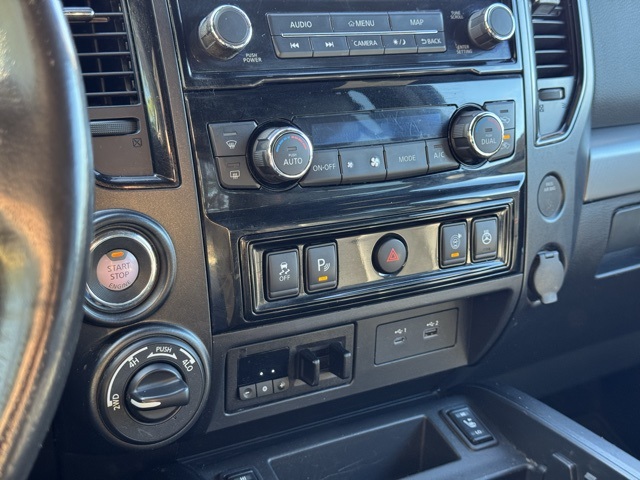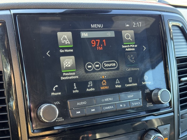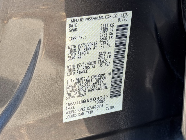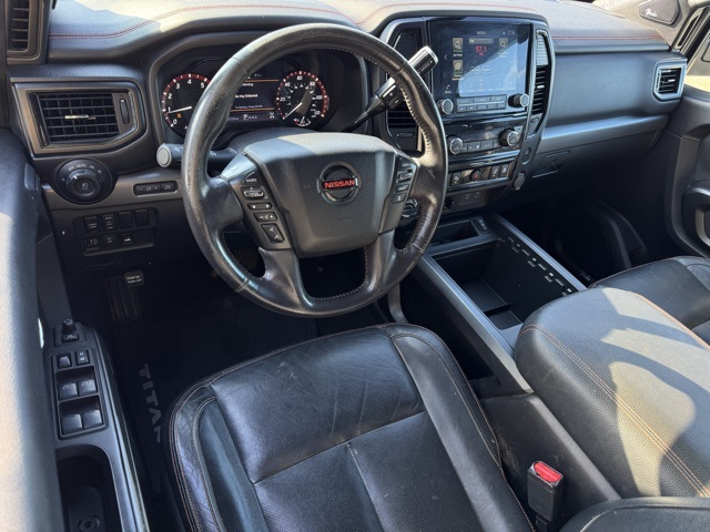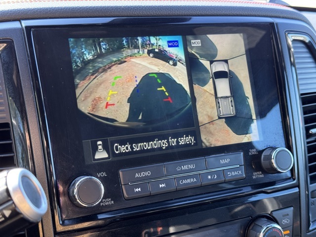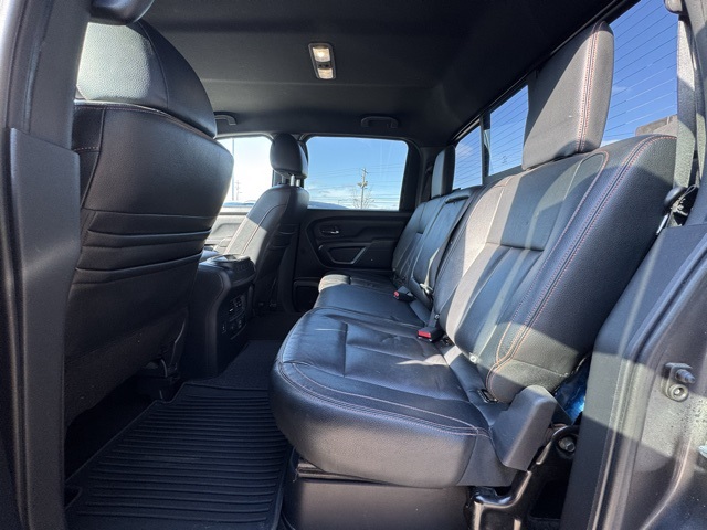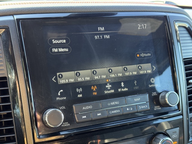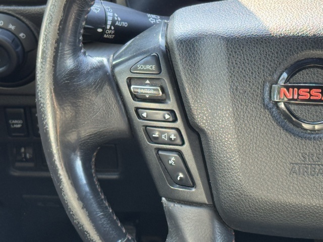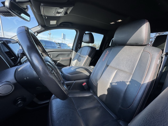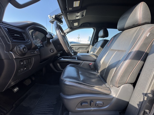 PRO-4X Convenience Package (4-Way Power Assist Seat, Heated Driver & Passenger Seat, Heated Power Tilt/Telescopic Steering Wheel, Heated Rear Seats, Intelligent Around View Monitor (I-AVM), Leather Seat Trim, Memory Driver Seat w/Auto Entry/Exit Feature, and Power Folding Auto Dimming Outside Mirrors), PRO-4X Utility Package (Fender Premium Audio System w/12 Speakers and Proximity Activation), Protection Package 2, 3.692 Axle Ratio, 4-Wheel Disc Brakes, 6 Speakers, ABS brakes, Air Conditioning, Alloy wheels, AM/FM radio: SiriusXM, Auto High-beam Headlights, Auto-dimming Rear-View mirror, Auto-leveling suspension, Automatic temperature control, Blind Spot Warning, Brake assist, Cloth Seat Trim w/Vinyl Bolsters, Compass, Delay-off headlights, Driver door bin, Driver vanity mirror, Dual front impact airbags, Dual front side impact airbags, Electronic Stability Control, Emergency communication system: NissanConnect Services, Front anti-roll bar, Front Bucket Seats, Front Captain's Seats, Front Center Armrest, Front dual zone A/C, Front fog lights, Front reading lights, Front wheel independent suspension, Fully automatic headlights, Garage door transmitter: HomeLink, Heated door mirrors, Illuminated entry, Knee airbag, Leather steering wheel, Low tire pressure warning, Navigation system: NissanConnect Navigation, NissanConnect featuring Apple CarPlay and Android Auto, Occupant sensing airbag, Outside temperature display, Overhead airbag, Overhead console, Panic alarm, Passenger door bin, Passenger vanity mirror, Power door mirrors, Power driver seat, Power steering, Power windows, PRO-4X Badged Floor Mats, Pro4X Mud Flaps, Radio data system, Radio: NissanConnect w/Navigation, Rain sensing wipers, Rear anti-roll bar, Rear Bumper Step w/Electronic Tailgate Lock, Rear Parking Sensors, Rear seat center armrest, Rear step bumper, Rear Under Seat Storage, Rear window defroster, Remote keyless entry, Rugged Step Boards w/PRO-X4 Insert, Security system, Speed control, Speed-sensing steering, Speed-Sensitive Wipers, Split folding rear seat, Steering wheel mounted audio controls, Tachometer, Telescoping steering wheel, Tilt steering wheel, Traction control, Trip computer, Turn signal indicator mirrors, Variably intermittent wipers, Voltmeter, and Wheels: 18" x 8" Painted Dark Finish Alloy.