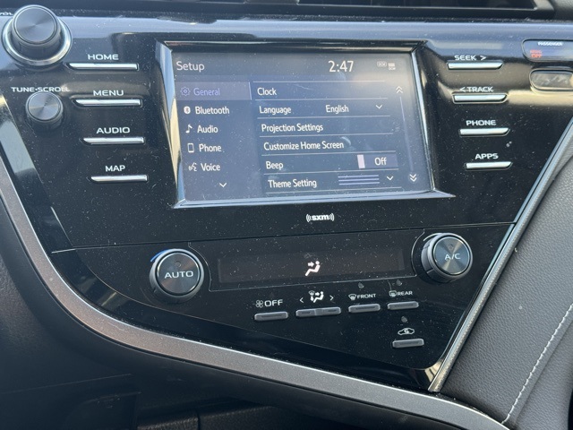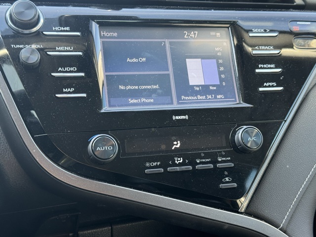 28/39 City/Highway MPG Clean CARFAX. Miracle Toyota of North Augusta is very proud to offer this superb-looking 2020 Toyota Camry in Midnight Black Metallic This vehicle has passed our comprehensive inspection and comes with the following ABS brakes, Active Cruise Control, Alloy wheels, Electronic Stability Control, Illuminated entry, Low tire pressure warning, Remote keyless entry, Traction control, 4-Wheel Disc Brakes, 6 Speakers, Air Conditioning, AM/FM radio: SiriusXM, Apple CarPlay/Android Auto, Auto High-beam Headlights, Automatic temperature control, Brake assist, Bumpers: body-color, Delay-off headlights, Driver door bin, Driver vanity mirror, Dual front impact airbags, Dual front side impact airbags, Emergency communication system: Safety Connect with 1-year trial, Exterior Parking Camera Rear, Fabric Seat Trim w/SofTex, Four wheel independent suspension, Front anti-roll bar, Front Bucket Seats, Front Center Armrest, Front reading lights, Front Sport Bucket Seats, Fully automatic headlights, Knee airbag, Leather Shift Knob, Occupant sensing airbag, Outside temperature display, Overhead airbag, Overhead console, Panic alarm, Passenger door bin, Passenger vanity mirror, Power door mirrors, Power driver seat, Power steering, Power windows, Radio data system, Radio: AM/FM Audio System, Rear anti-roll bar, Rear reading lights, Rear seat center armrest, Rear side impact airbag, Rear window defroster, Security system, Speed control, Speed-sensing steering, Split folding rear seat, Spoiler, Sport steering wheel, Steering wheel mounted audio controls, Tachometer, Telescoping steering wheel, Tilt steering wheel, Trip computer, Variably intermittent wipers, and Wheels: 8.0J x 18" Black Machined-Finish Alloy;