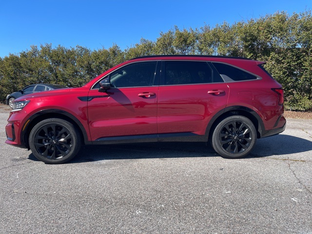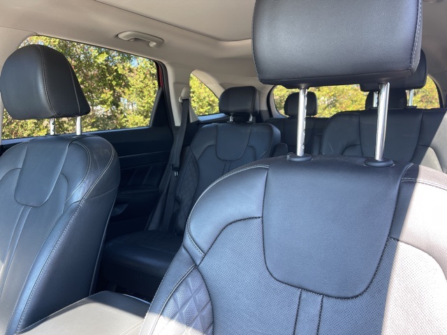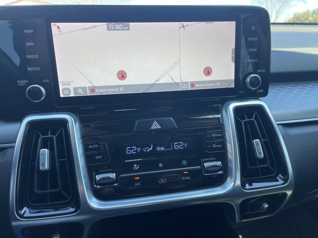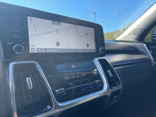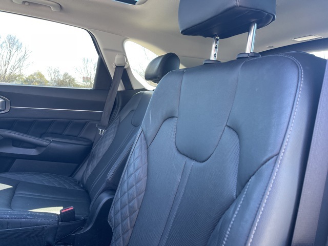 Backup Camera, Navigation, Tow Hitch, 3rd Row Seats, 12 Speakers, 3rd row seats: split-bench, 4-Wheel Disc Brakes, ABS brakes, Air Conditioning, AM/FM radio: SiriusXM, Apple CarPlay & Android Auto, Auto High-beam Headlights, Auto-dimming Rear-View mirror, Automatic temperature control, Brake assist, Bumpers: body-color, Carpeted Floor Mats, Delay-off headlights, Driver door bin, Driver vanity mirror, Dual front impact airbags, Dual front side impact airbags, Electronic Stability Control, Emergency communication system: UVO link, Four wheel independent suspension, Front anti-roll bar, Front Bucket Seats, Front Center Armrest, Front dual zone A/C, Front fog lights, Front reading lights, Fully automatic headlights, Heated & Ventilated Front Bucket Seats, Heated door mirrors, Heated front seats, Heated steering wheel, Illuminated entry, Knee airbag, Leather steering wheel, Low tire pressure warning, Navigation System, Occupant sensing airbag, Outside temperature display, Overhead airbag, Overhead console, Panic alarm, Passenger vanity mirror, Perforated Genuine Leather Seat Trim, Power door mirrors, Power driver seat, Power Liftgate, Power moonroof, Power passenger seat, Power steering, Power windows, Radio data system, Radio: AM/FM Bose Audio System w/Navigation, Rear air conditioning, Rear anti-roll bar, Rear reading lights, Rear window defroster, Remote keyless entry, Roof rack: rails only, Security system, Smart Key w/ Push Button and Remote Start, Speed control, Speed-sensing steering, Split folding rear seat, Spoiler, Steering wheel mounted audio controls, Tachometer, Telescoping steering wheel, Tilt steering wheel, Traction control, Turn signal indicator mirrors, Ventilated front seats, Wheels: 20" Gloss Black Alloy.