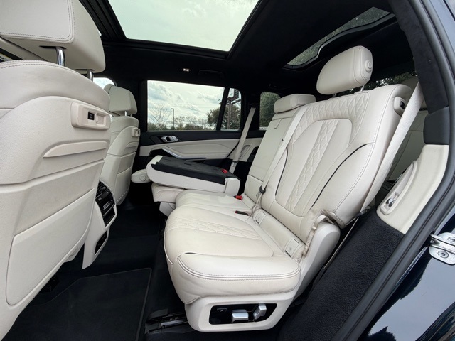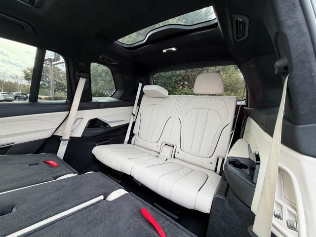 16 Speakers, 3rd row seats: split-bench, 4-Wheel Disc Brakes, ABS brakes, Active Comfort Drive w/Road Preview, Active Driving Assistant Pro, Air Conditioning, Alloy wheels, AM/FM radio: SiriusXM with 360L, AM/FM Stereo, Apple CarPlay & Android Auto Compatibility, Apple CarPlay Compatibility, Auto High-beam Headlights, Auto tilt-away steering wheel, Auto-dimming door mirrors, Auto-dimming Rear-View mirror, Auto-leveling suspension, Automatic temperature control, BMW Assist eCall, BMW TeleServices, Brake assist, Bumpers: body-color, Compass, Connected Package Pro, ConnectedDrive Services, Delay-off headlights, Door auto-latch, Drive Recorder, Driver door bin, Driver vanity mirror, Driving Assistance Professional Package, Dual front impact airbags, Dual front side impact airbags, Dynamic Handling Package, Electronic Stability Control, Emergency communication system: BMW Assist eCall, Executive Package, Extended Merino Leather Upholstery, Extended Shadowline Trim, Extended Traffic Jam Assistant, Four wheel independent suspension, Front anti-roll bar, Front Bucket Seats, Front Center Armrest, Front dual zone A/C, Front fog lights, Front Massaging Seats, Front reading lights, Front Ventilated Seats, Fully automatic headlights, Garage door transmitter, Genuine wood console insert, Genuine wood dashboard insert, Genuine wood door panel insert, Gesture Control, Glass Controls, harman/kardon Surround Sound System, harman/kardon® Speakers, Head restraints memory, Head-Up Display, Heads-Up Display, Heated & Cooled Cup Holders, Heated door mirrors, Heated front seats, Heated Multi-Contour Seats, Heated steering wheel, Illuminated entry, Increased Top Speed Limiter, Integral Active Steering, Knee airbag, Leather Dashboard, Leather Shift Knob, Live Cockpit Pro w/Navi, Low tire pressure warning, Luxury Seating Package, Memory seat, Navigation System, Occupant sensing airbag, Outside temperature display, Overhead airbag, Panic alarm, Panoramic Sky Lounge LED Roof, Passenger door bin, Passenger vanity mirror, Power adjustable front head restraints, Power door mirrors, Power driver seat, Power Front Seats, Power moonroof: Panorama, Power passenger seat, Power steering, Power windows, Radio data system, Rain sensing wipers, Rear air conditioning, Rear anti-roll bar, Rear dual zone A/C, Rear reading lights, Rear seat center armrest, Rear window defroster, Rear window wiper, Reclining 3rd row seat, Remote keyless entry, Roof rack: rails only, Security system, SiriusXM w/360L, Speed control, Speed-sensing steering, Speed-Sensitive Wipers, Split folding rear seat, Spoiler, Sport steering wheel, Steering wheel memory, Steering wheel mounted audio controls, Tachometer, Telescoping steering wheel, Tilt steering wheel, Traction control, Trailer Hitch, Trip computer, Turn signal indicator mirrors, Variably intermittent wipers, Vernasca Leather Upholstery, WiFi Hotspot, Wireless Charging.