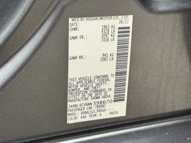 27/37 City/Highway MPG CARFAX One-Owner. Clean CARFAX. Gun Metallic 2022 Nissan Altima 2.5 SR FWD The Miracle Advantage: This Vehicle qualifies for Complimentary 7 YEAR 250,000 MILE LIMITED POWER TRAIN WARRANTY. HUGE VALUE!