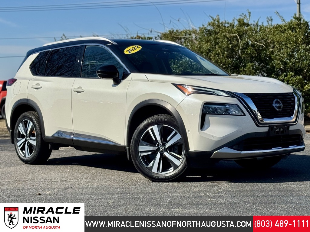AWD. 28/34 City/Highway MPG CARFAX One-Owner. Pearl White Tricoat/Super Black 2022 Nissan Rogue Platinum AWD This Vehicle qualifies for Complimentary 7 Year 250,000 Mile Limited Power Train. Huge Value! See Dealer for Details.
