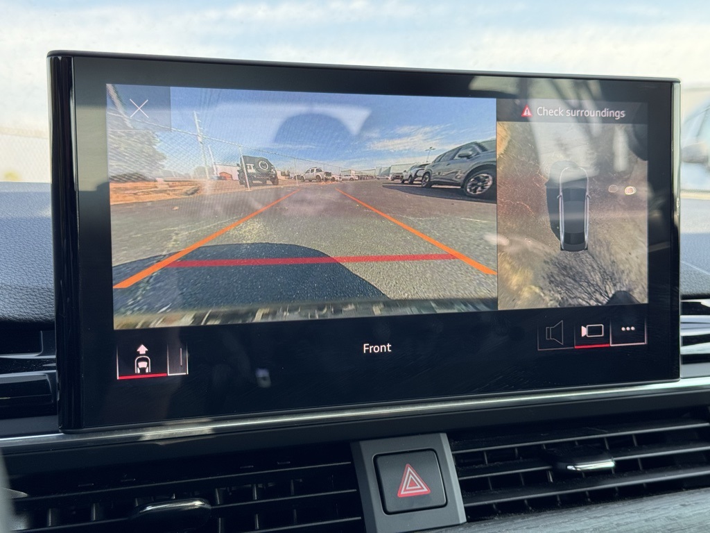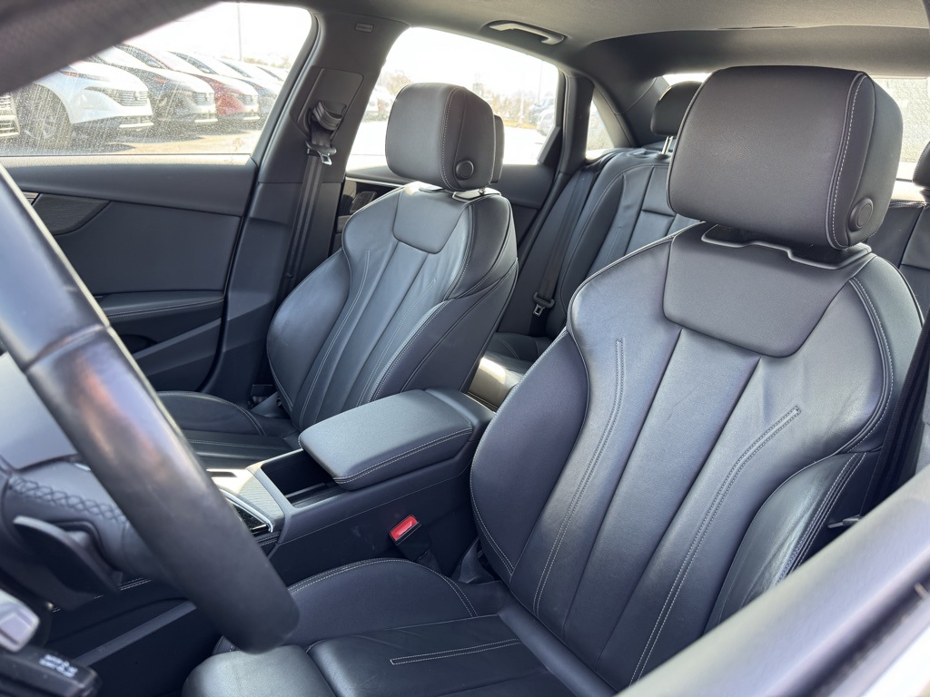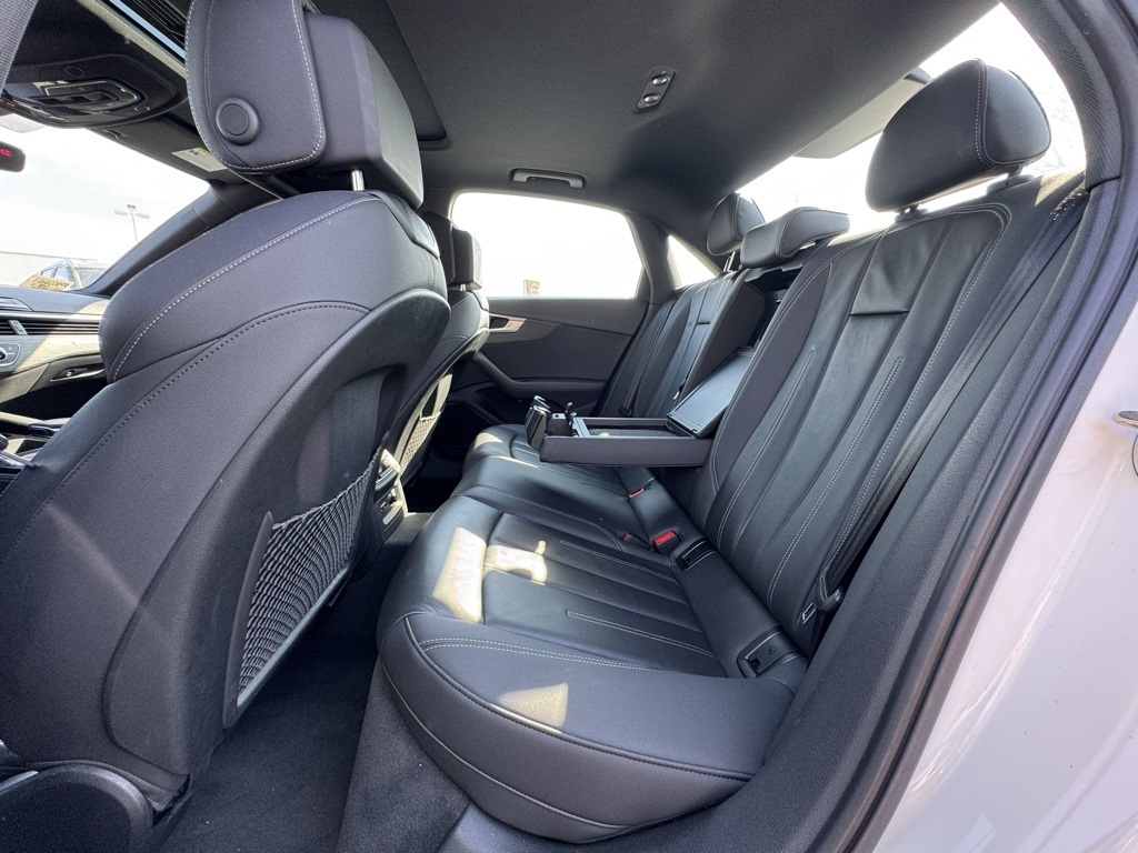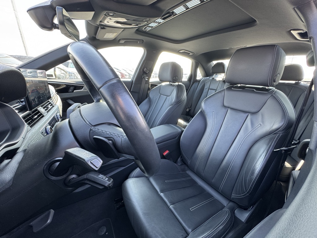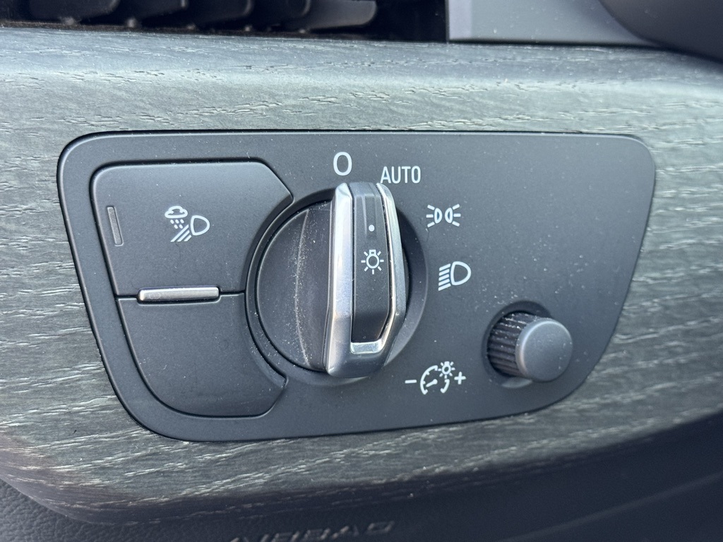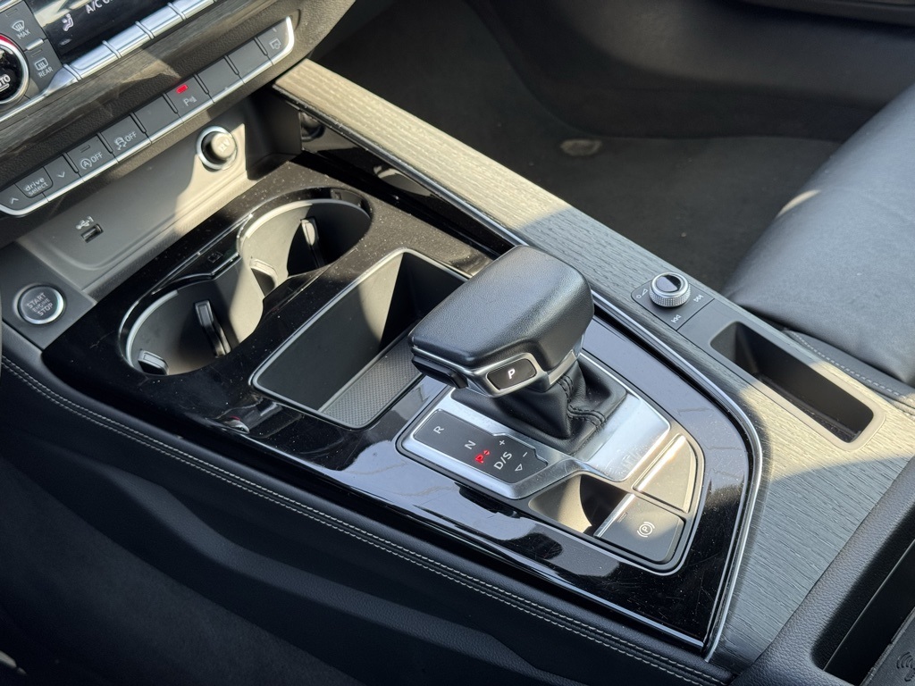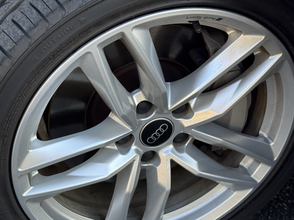 7-Speed Automatic S tronic, quattro, Black Leather, 10 Speakers, 4-Wheel Disc Brakes, ABS brakes, Air Conditioning, Alloy wheels, AM/FM radio, Anti-whiplash front head restraints, Audi smartphone interface (Apple CarPlay/Android Auto), Auto High-beam Headlights, Auto-dimming Rear-View mirror, Automatic temperature control, Brake assist, Bumpers: body-color, Compass, Delay-off headlights, Driver door bin, Driver vanity mirror, Dual front impact airbags, Dual front side impact airbags, Electronic Stability Control, Emergency communication system: Audi connect CARE, Exterior Parking Camera Rear, Four wheel independent suspension, Front anti-roll bar, Front Bucket Seats, Front Center Armrest, Front dual zone A/C, Front fog lights, Front reading lights, Garage door transmitter: HomeLink, Genuine wood dashboard insert, Genuine wood door panel insert, Heated door mirrors, Heated front seats, Heated Front Sport Bucket Seats, Illuminated entry, Knee airbag, Leather Seating Surfaces, Leather Shift Knob, Leather steering wheel, Low tire pressure warning, Occupant sensing airbag, Outside temperature display, Overhead airbag, Overhead console, Panic alarm, Passenger door bin, Passenger vanity mirror, Power door mirrors, Power driver seat, Power moonroof, Power passenger seat, Power steering, Power windows, Radio data system, Radio: Audi Sound System, Rain sensing wipers, Rear air conditioning, Rear anti-roll bar, Rear reading lights, Rear seat center armrest, Rear window defroster, Remote keyless entry, Speed control, Speed-sensing steering, Speed-Sensitive Wipers, Split folding rear seat, Steering wheel mounted audio controls, Tachometer, Telescoping steering wheel, Tilt steering wheel, Traction control, Trip computer, Turn signal indicator mirrors, Variably intermittent wipers, and Wheels: 18" 5-Double-Spoke Design.